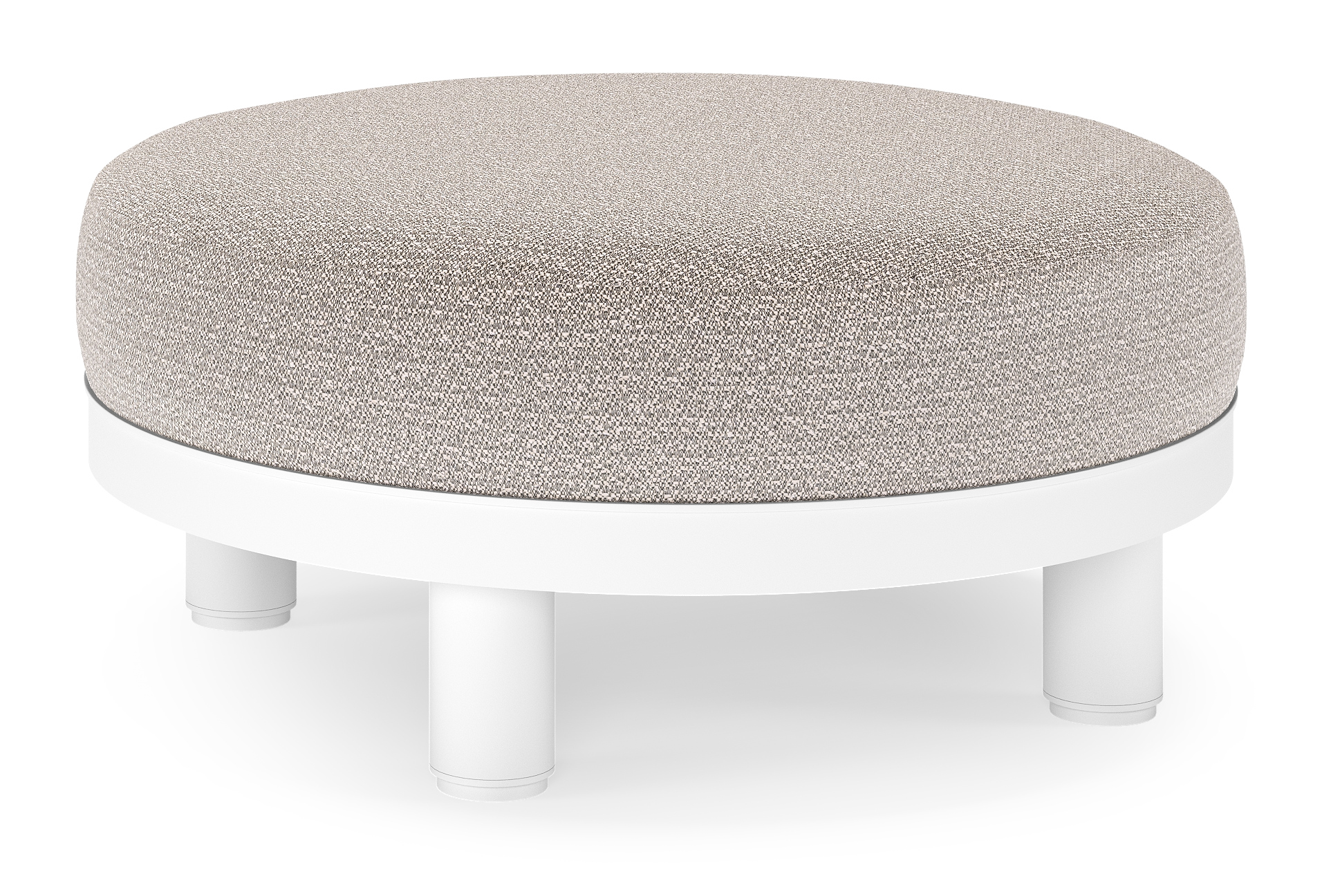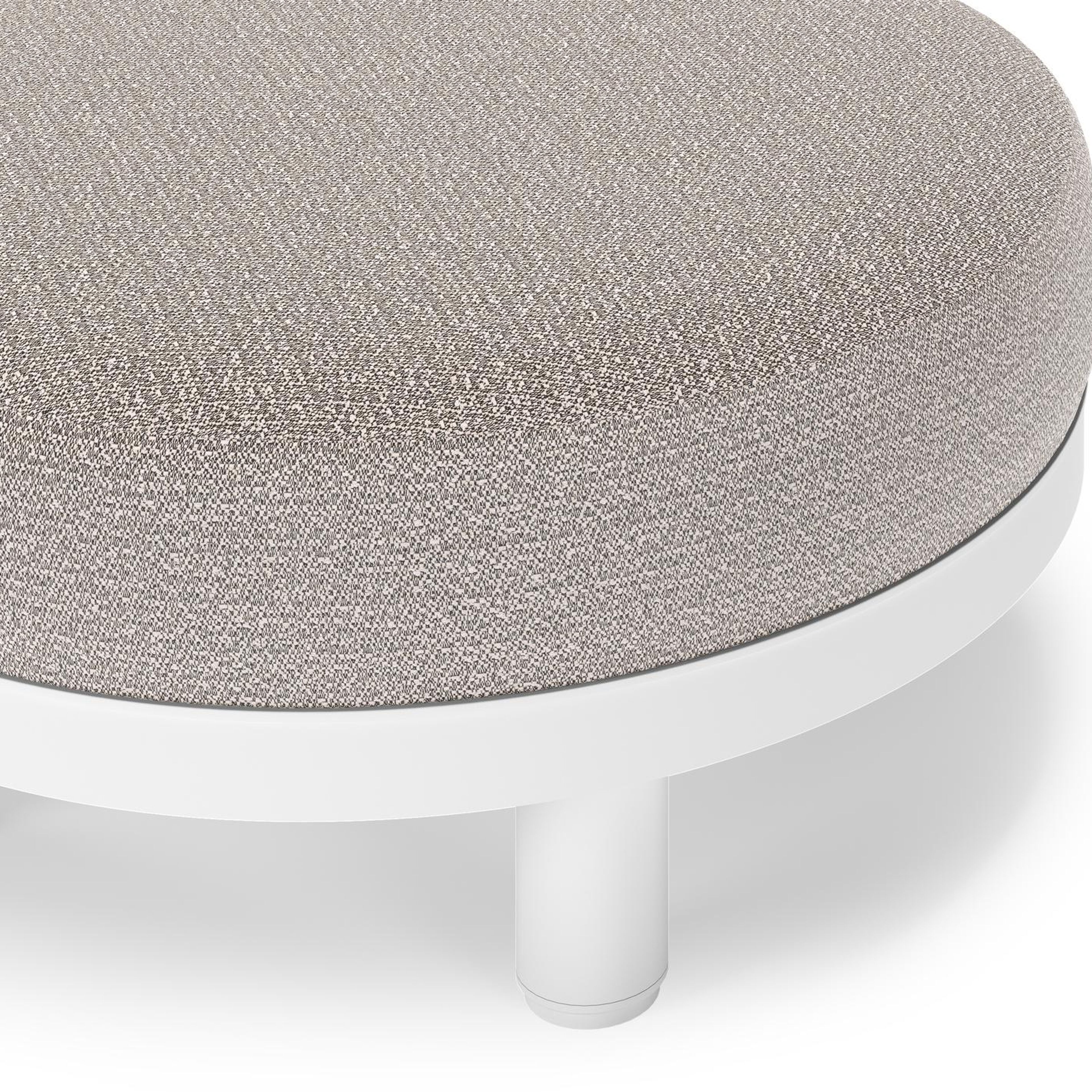 Salon de jardin pouf Donato en aluminium blanc et coussins en all Weather Sunbrella® Luxe Wander Granite | Exterioo mobilier de jardin