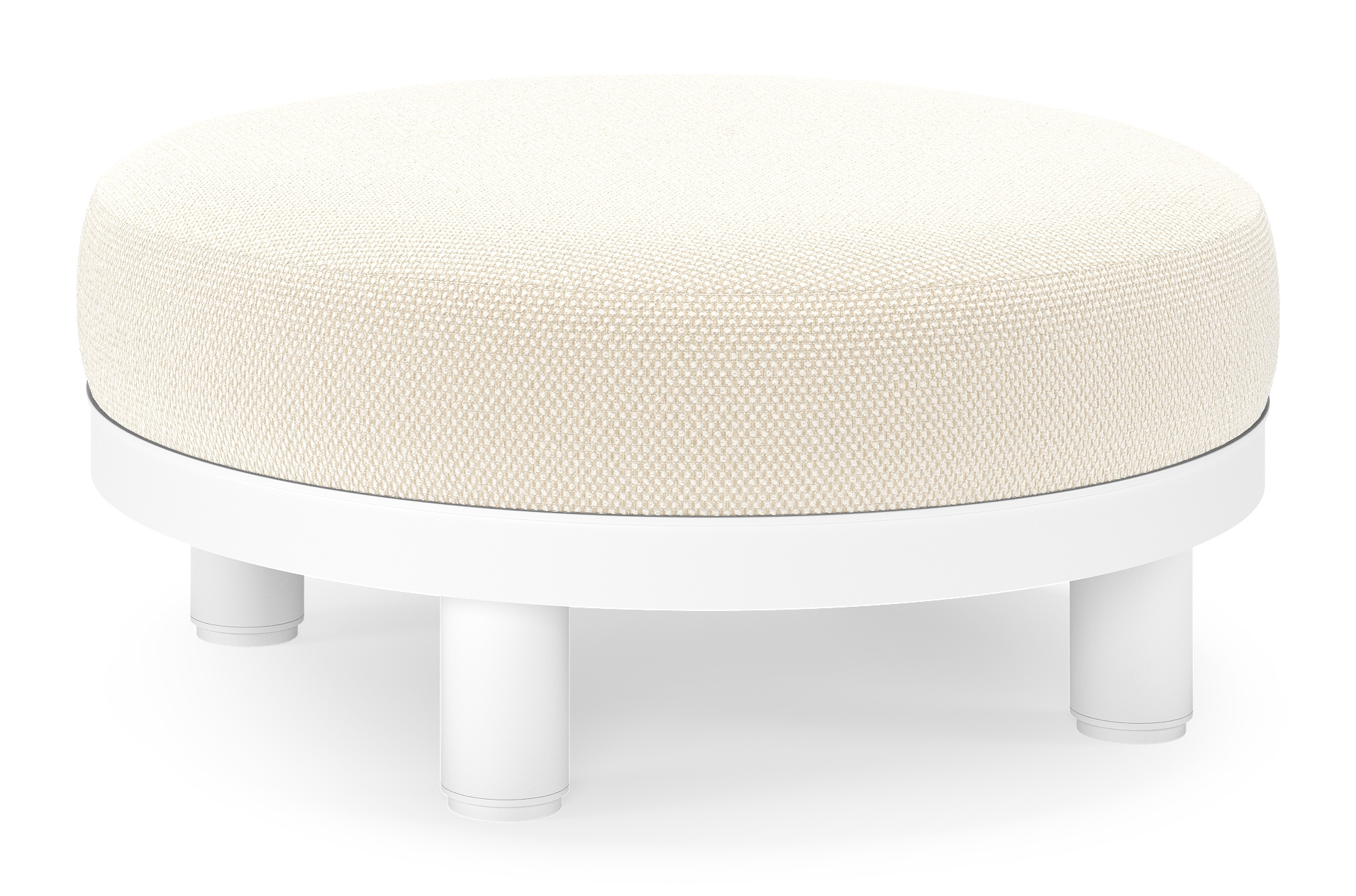 Salon de jardin pouf Donato en aluminium blanc et coussins en all Weather cosytica Althea Off White | Exterioo mobilier de jardin