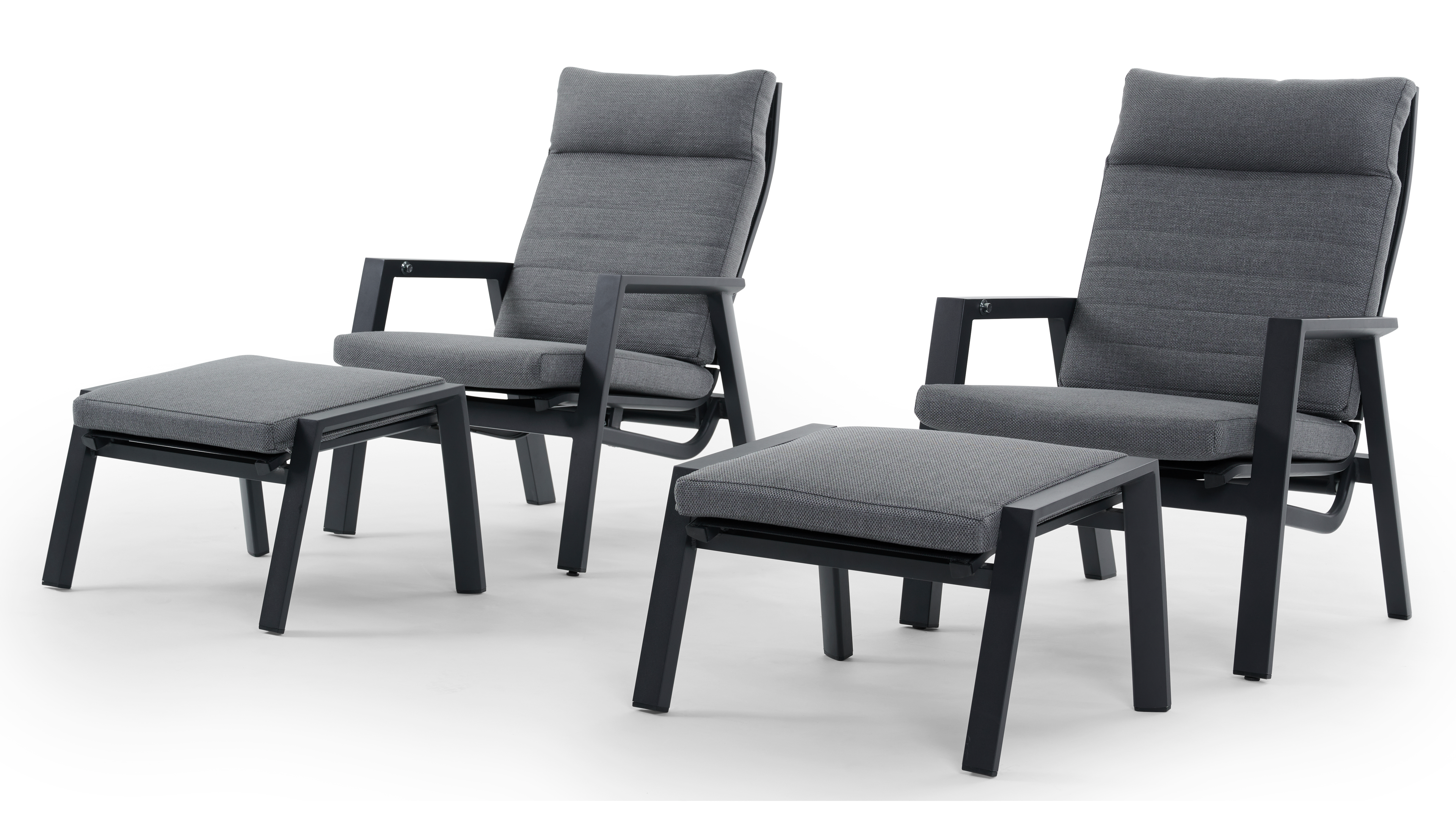Le salon de jardin Prato est un salon de jardin robuste avec un haut dossier dans lequel vous profiterez d'un grand confort d'assise. Les sièges des extrémités sont réglables à L'aide du système de bouton pour une position parfaite.