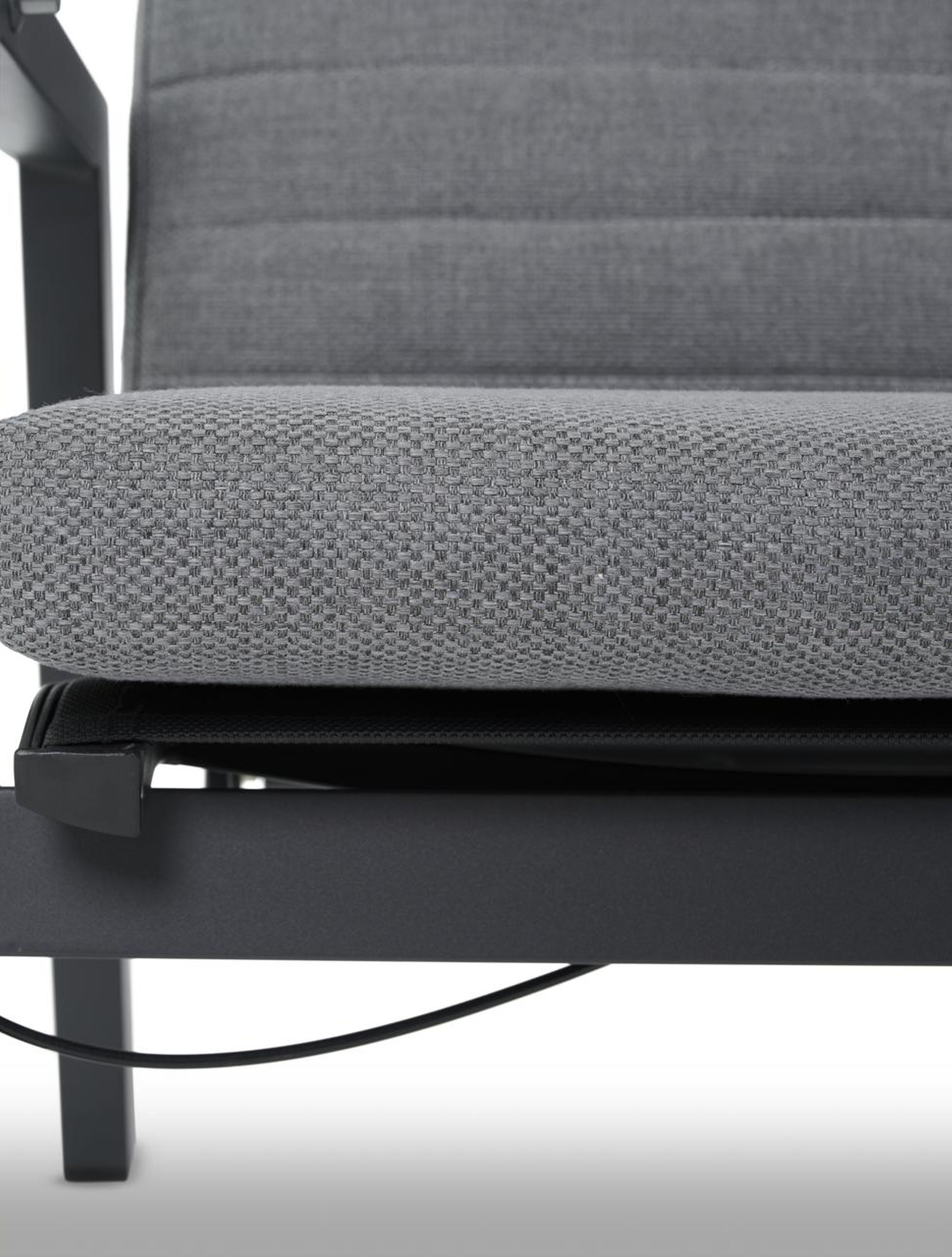 Les coussins sont compris et sont en Weather+ Textilène. Ce type de coussins combine le confort d'assise d'un coussin en mousse de qualité aux propriétés de soutien uniques du textilène, comme la facilité d'entretien et la structure respirante. Les coussins sont hydrofuges et anti-salissures. En hiver ou en cas de longue période de pluie, il est préférable de ranger les coussins à L'intérieur.