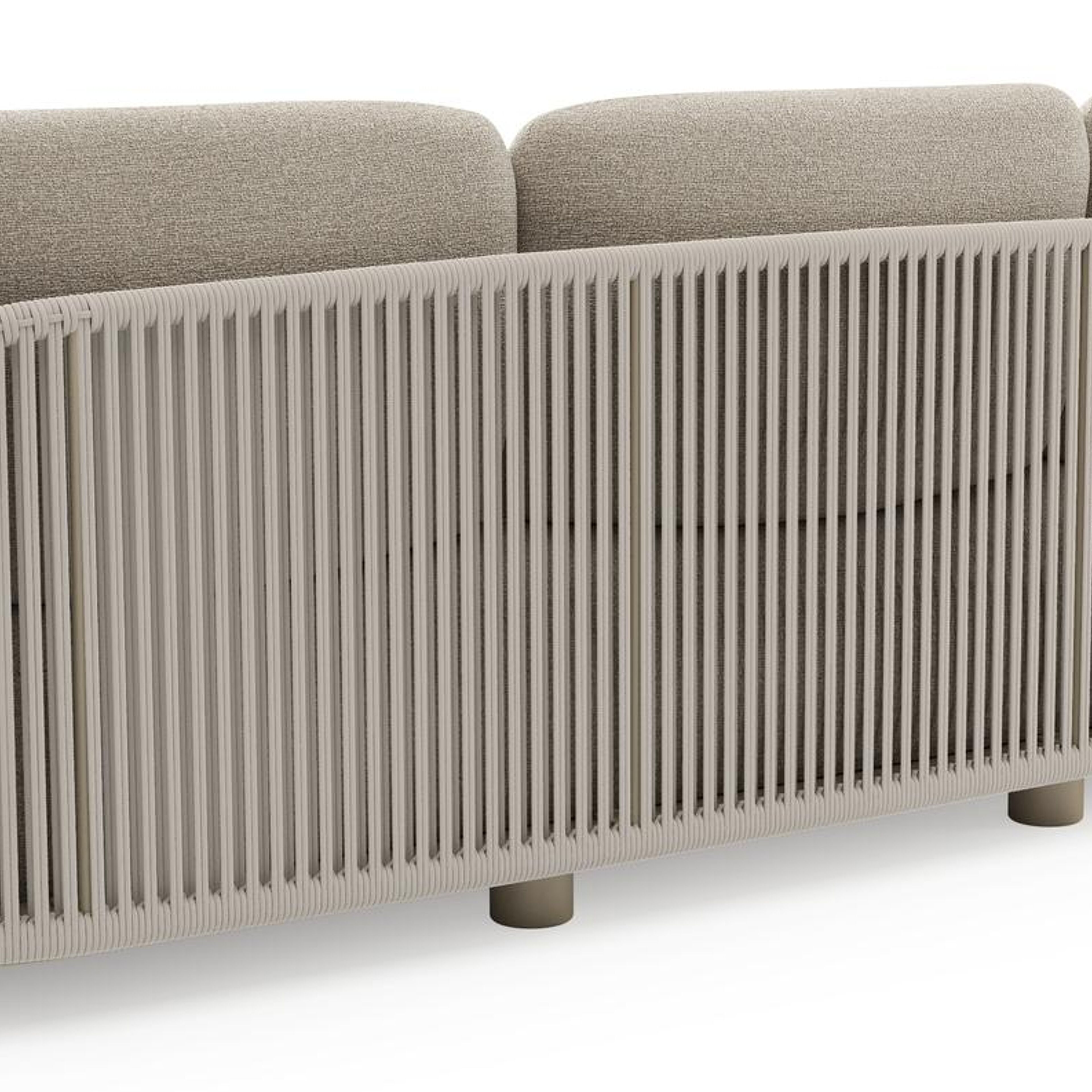 Salon de jardin Vadelo en aluminium beige et corde ronde tissée verticalement beige et coussins en all weather cosytica catania greige | Exterioo mobilier de jardin