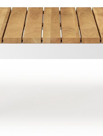 La table basse Verato se combine facilement avec chaque salon de jardin. La table basse a un piètement en U unique, caractéristique. L'armature est en aluminium inoxydable et présente une finition avec une touche naturelle en teck.