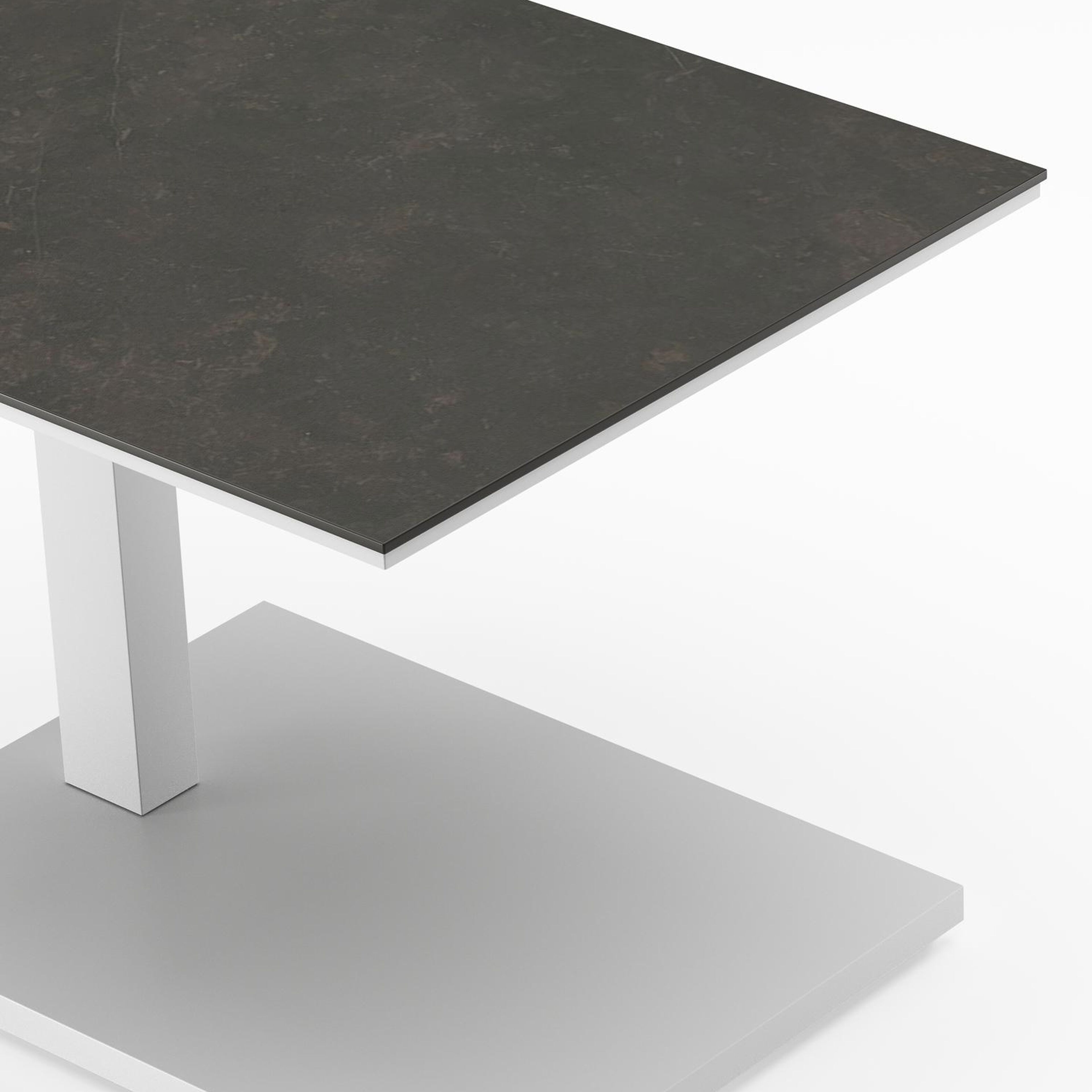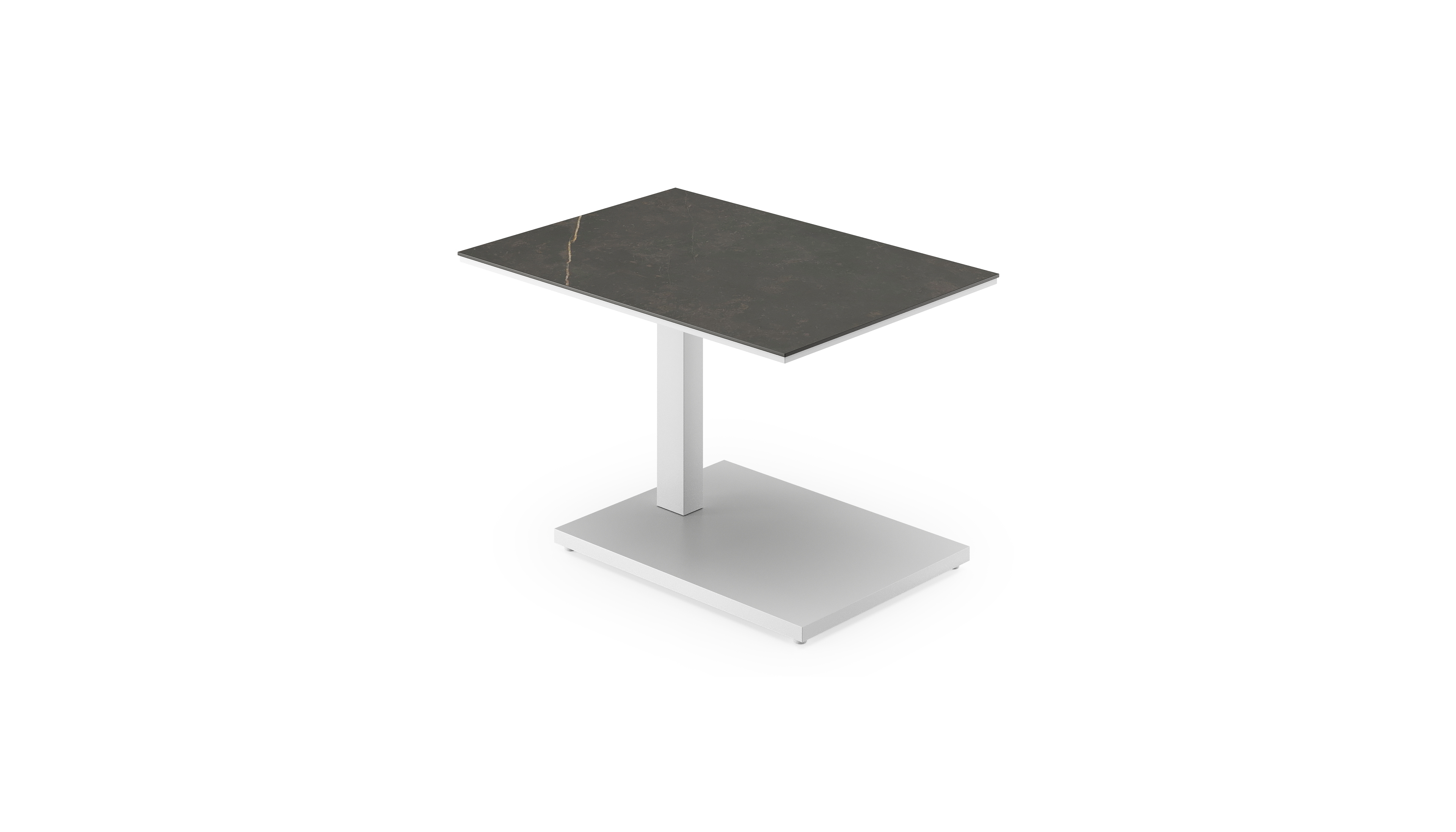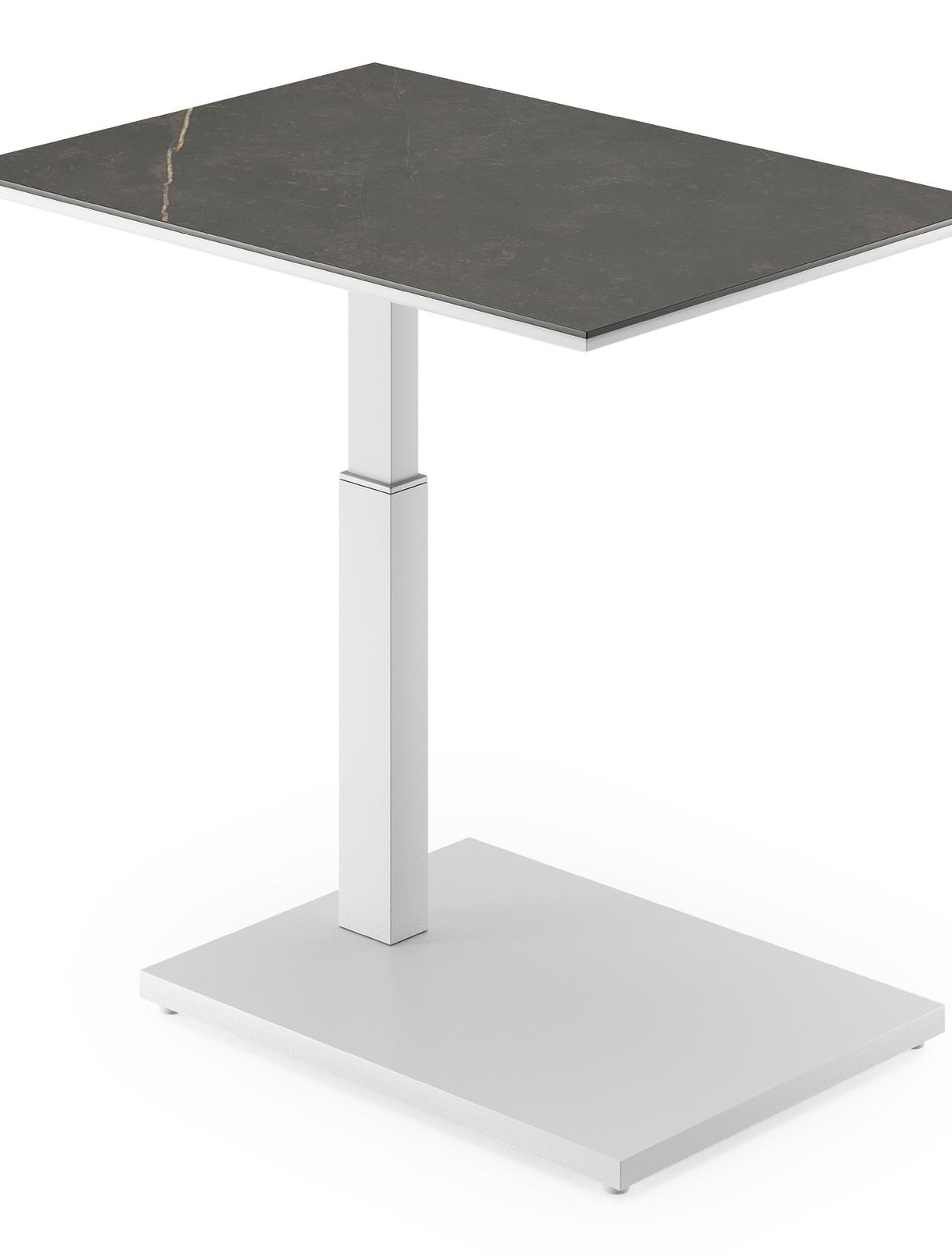 Table d'appoint pop-up Cirello rectangulaire en aluminium blanc et céramique pleine Calatorao - Lg. 70 x Lrg. 50 x Haut. 44 cm | Exterioo mobilier de jardin