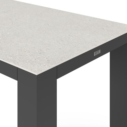 Le principe Less is more décrit la table de bar Nano. Cette table de bar a un style simple et intemporel. Elle offre la possibilité d’ajouter deux personnes supplémentaires à table. Cette table est dotée d’un plateau Shilin. Il s’agit d’une nouveauté dans notre assortiment. Les nuances terreuses s’accordent parfaitement avec nos nouvelles tendances d’extérieur. Le plateau Shilin a un léger relief, de sorte qu’il ressemble à une véritable pierre naturelle à la vue et au toucher. Il présente un fin scintillement. L’avantage des plateaux de table en céramique pleine est qu’ils résistent aux rayures ainsi qu’à toutes les conditions météorologiques.