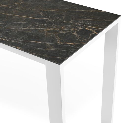 Table de bar Verato en aluminium blanc et céramique pleine Black Obsession - Lg. 220 x Lrg. 70 x Haut. 105 cm | Exterioo
