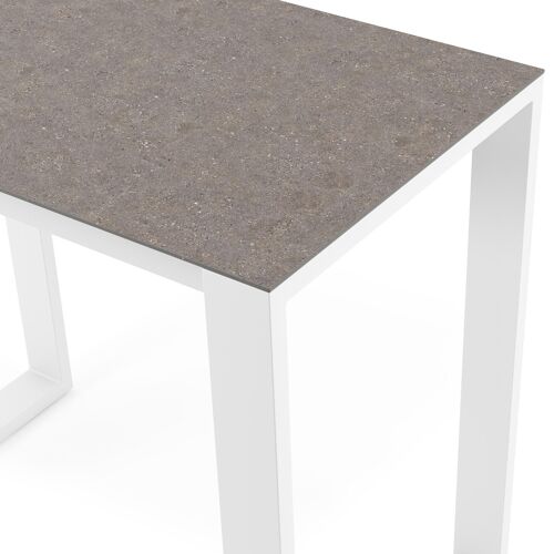 Table de bar Verato en aluminium blanc et céramique pleine Wulong - Lg. 120 x Lrg. 70 x Haut. 105 cm | Exterioo