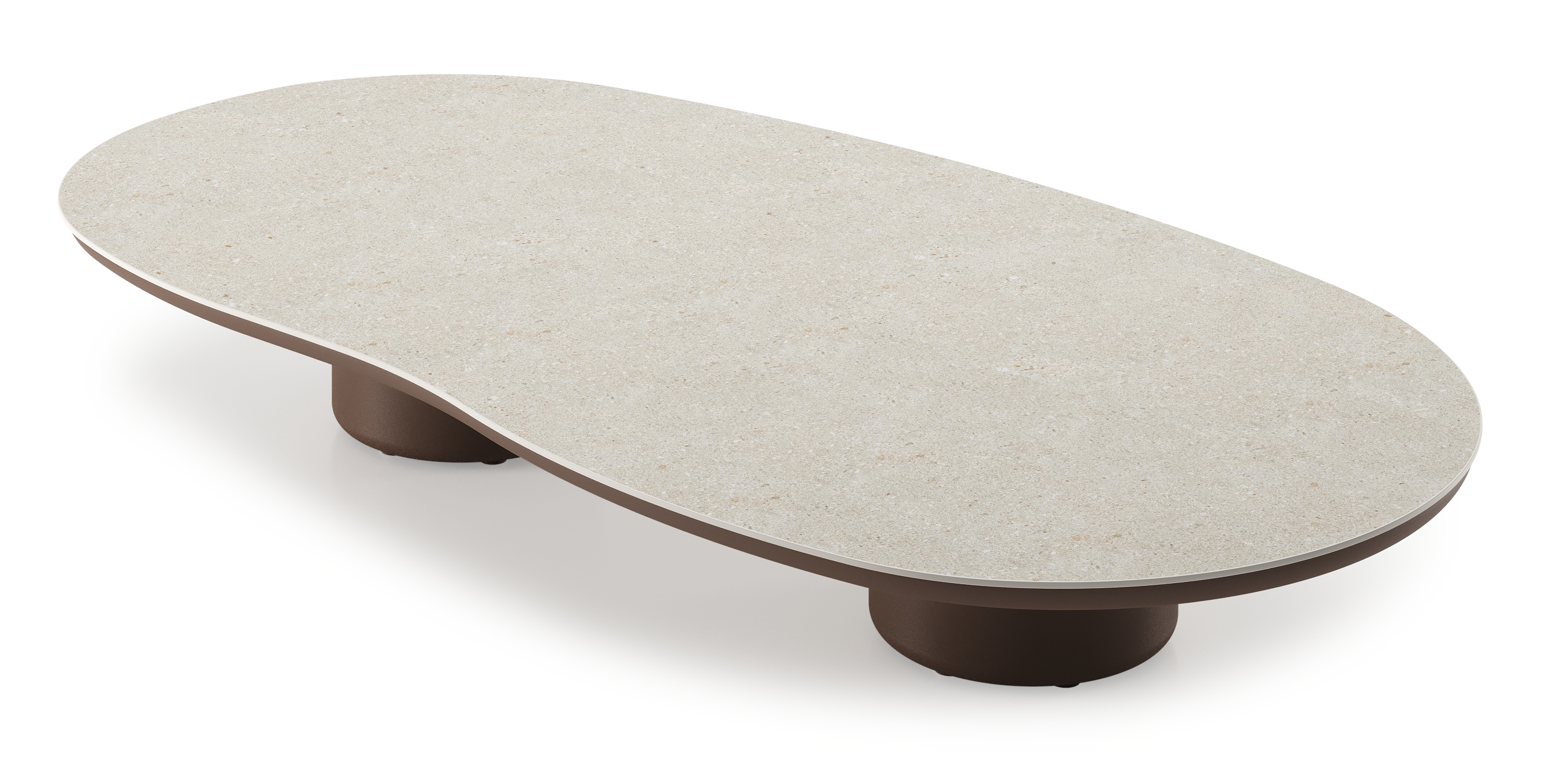 Table de basse Amico organique en taupe aluminium et céramique pleine Shilin - Lg. 170 x Lrg. 91 x Haut. 25 cm | Exterioo mobilier de jardin