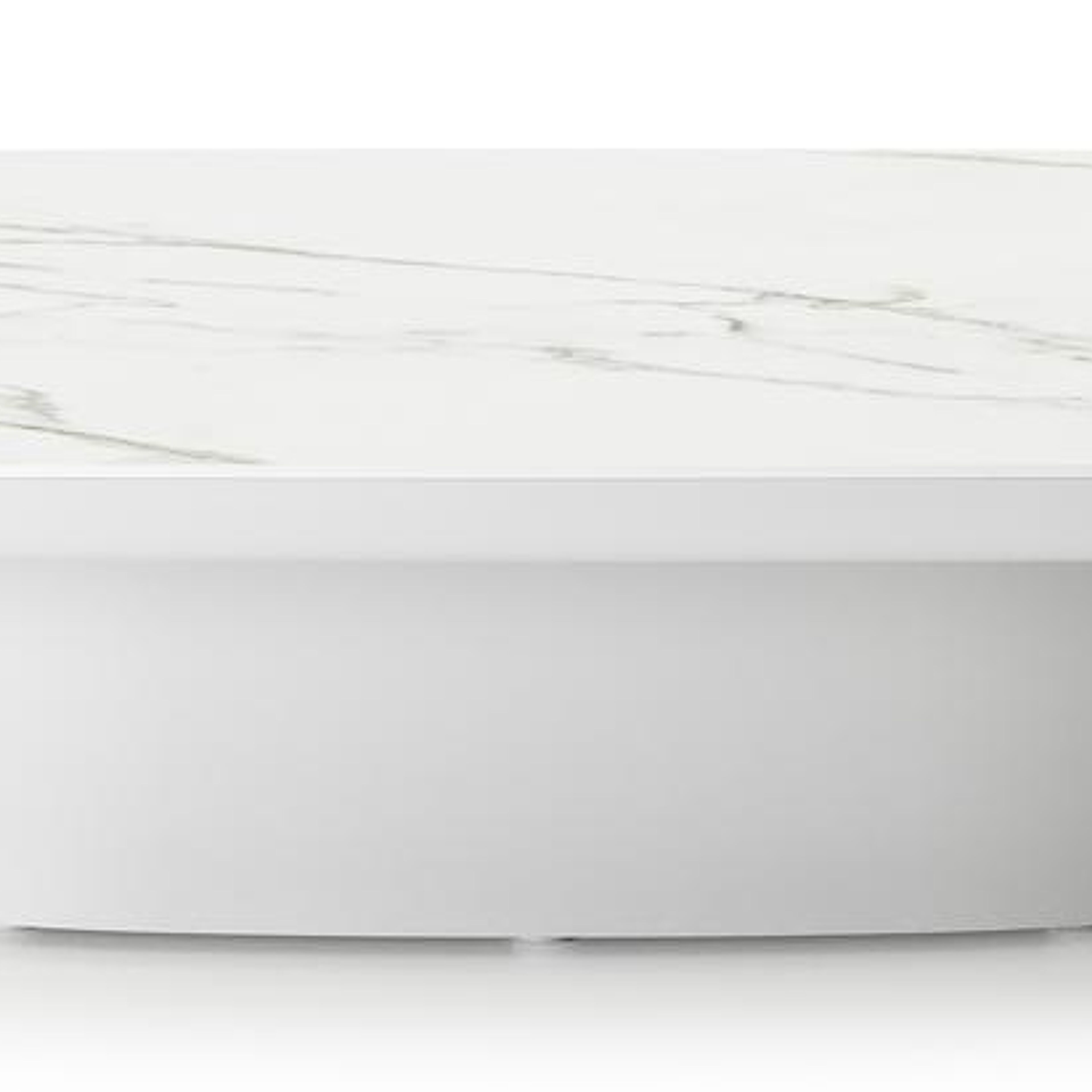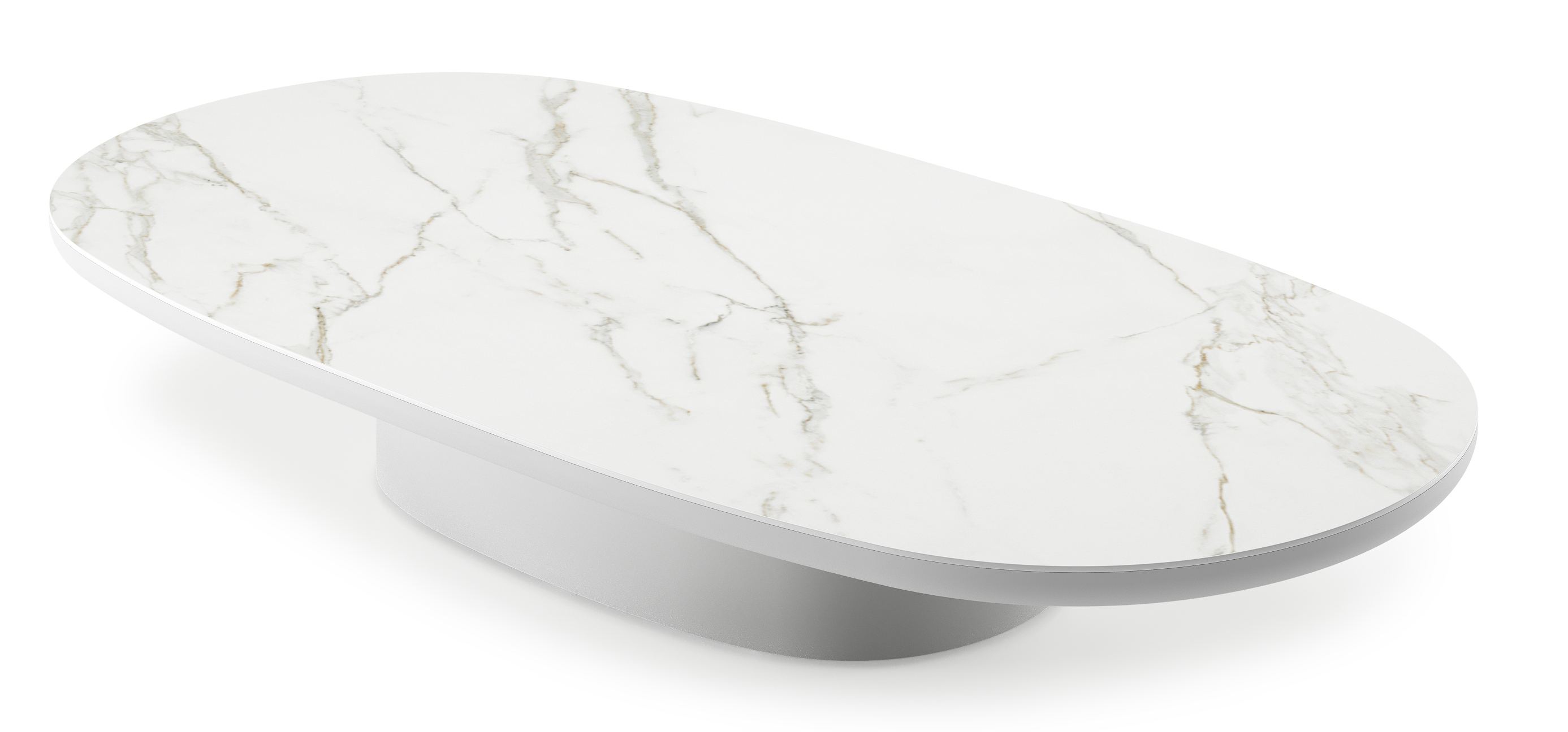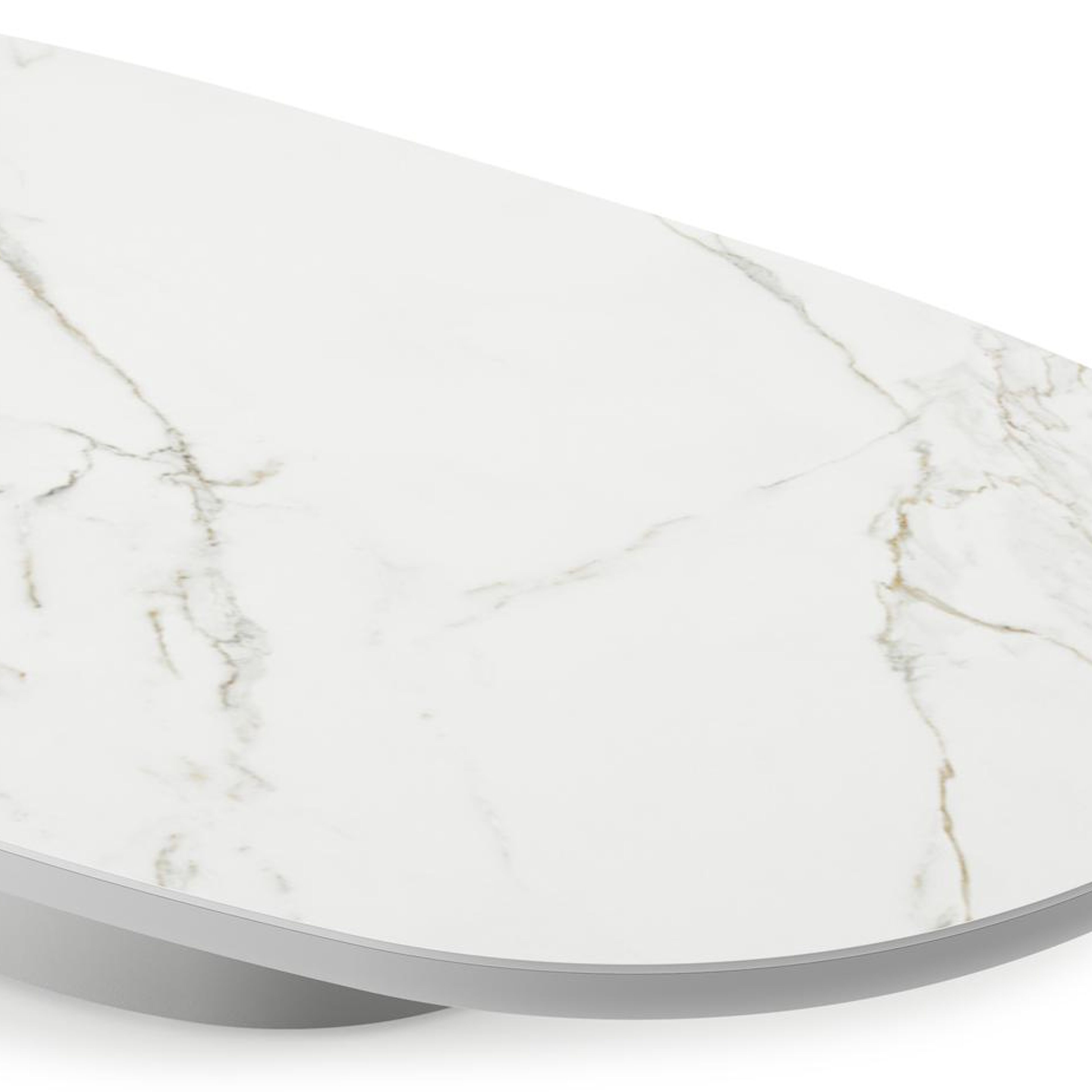 Table de basse Amico bombo en aluminium blanc et céramique pleine Calacatta - Lg. 171 x Lrg. 89 x Haut. 24 cm | Exterioo mobilier de jardin
