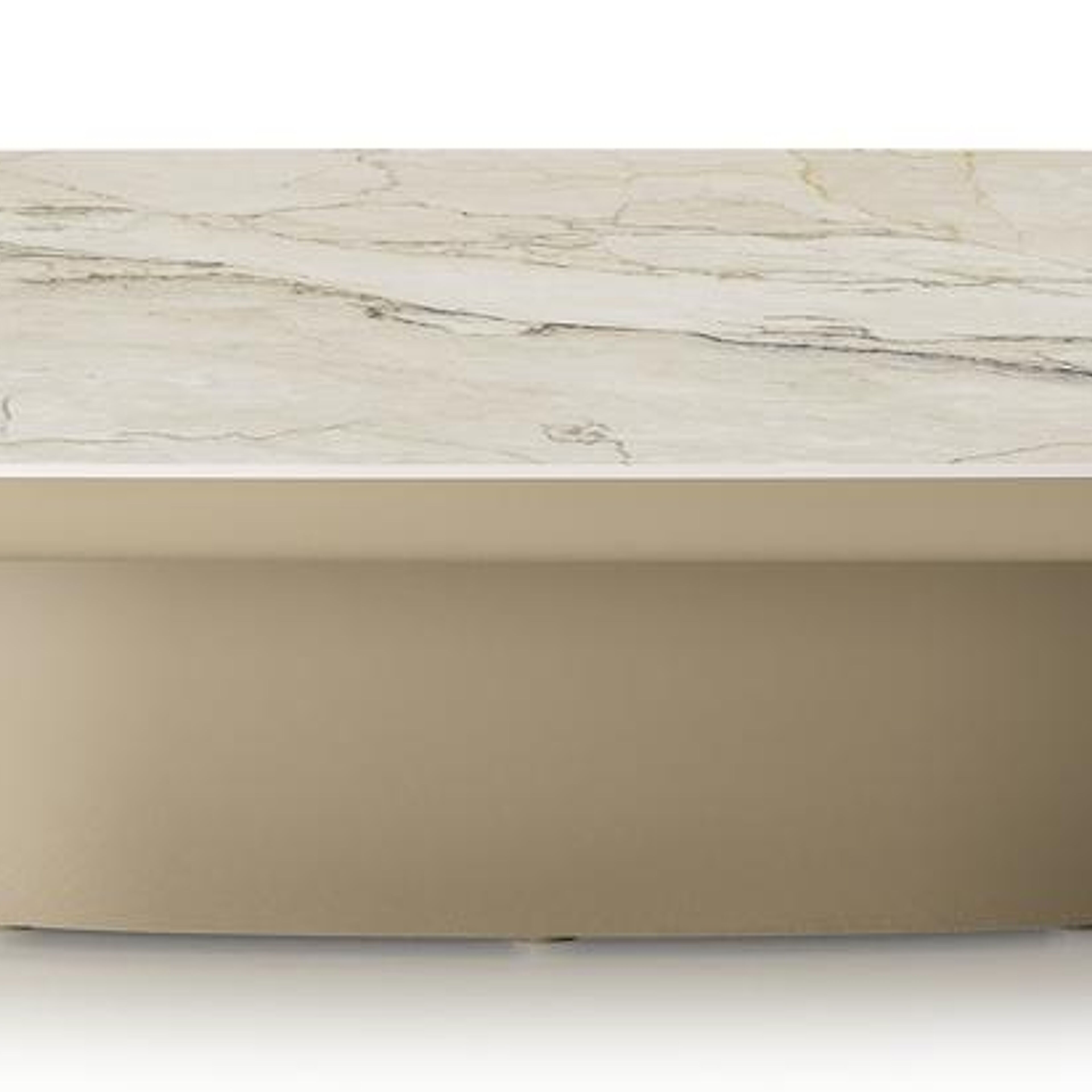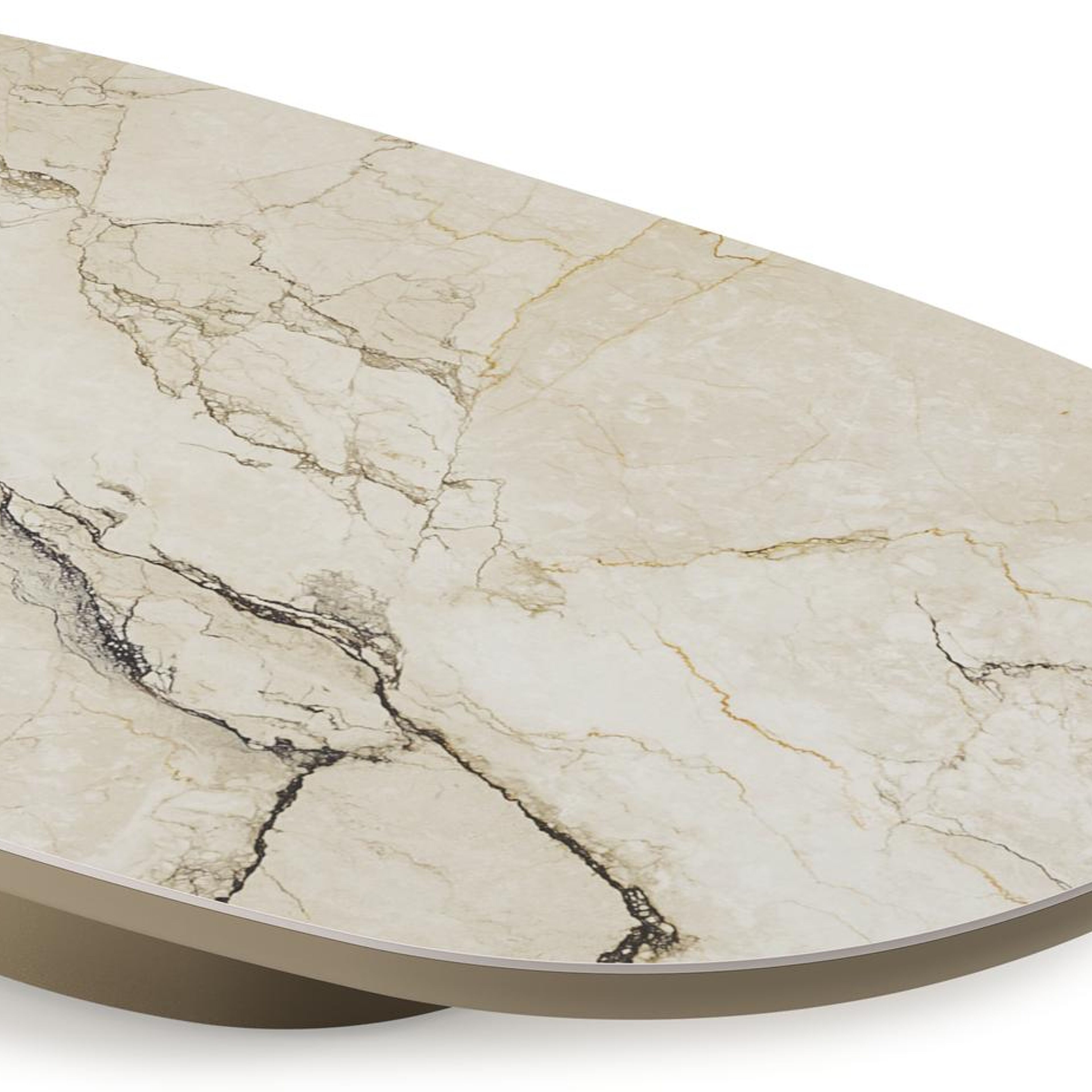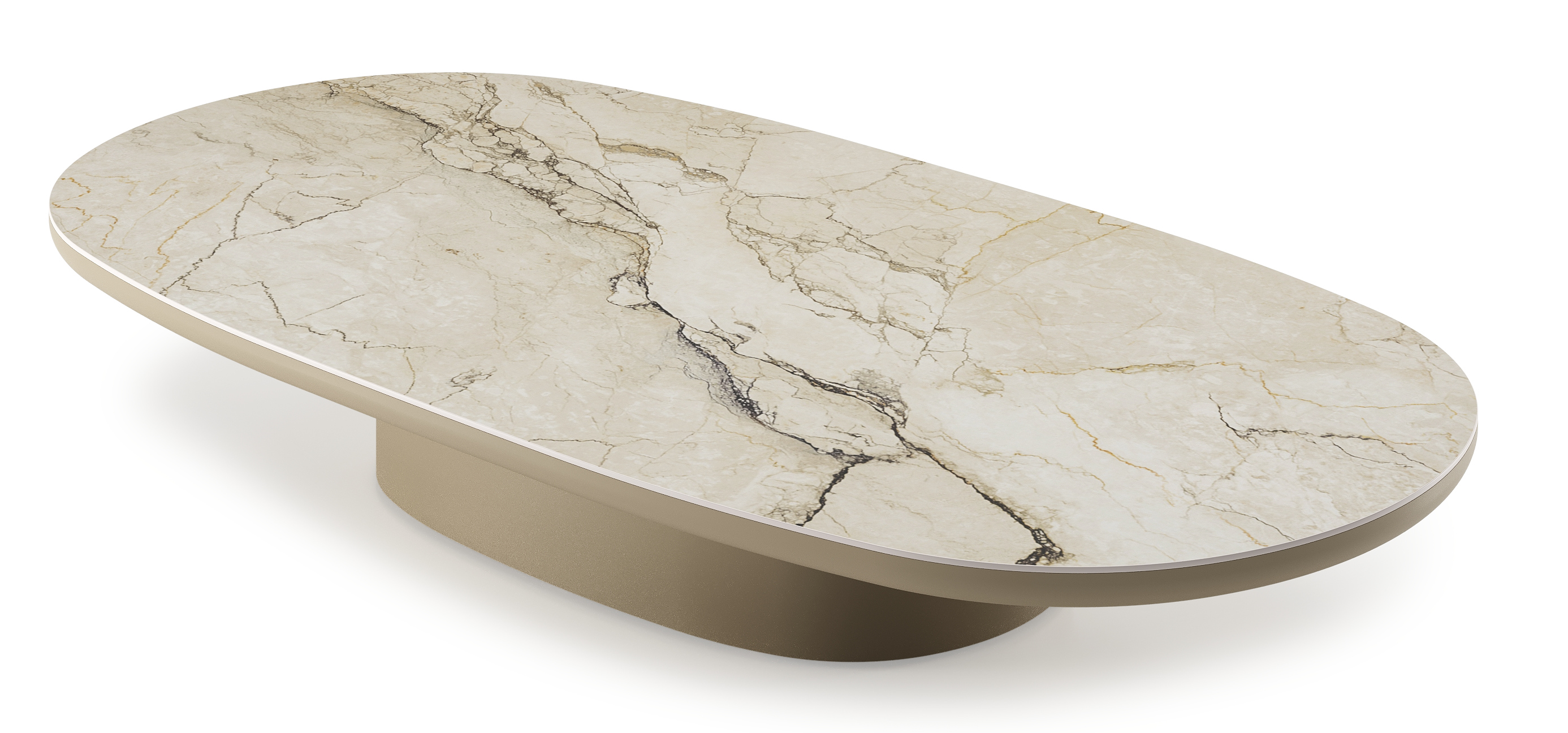 Table de basse Amico bombo en aluminium beige et céramique pleine Colorado Dunes - Lg. 171 x Lrg. 89 x Haut. 24 cm | Exterioo mobilier de jardin