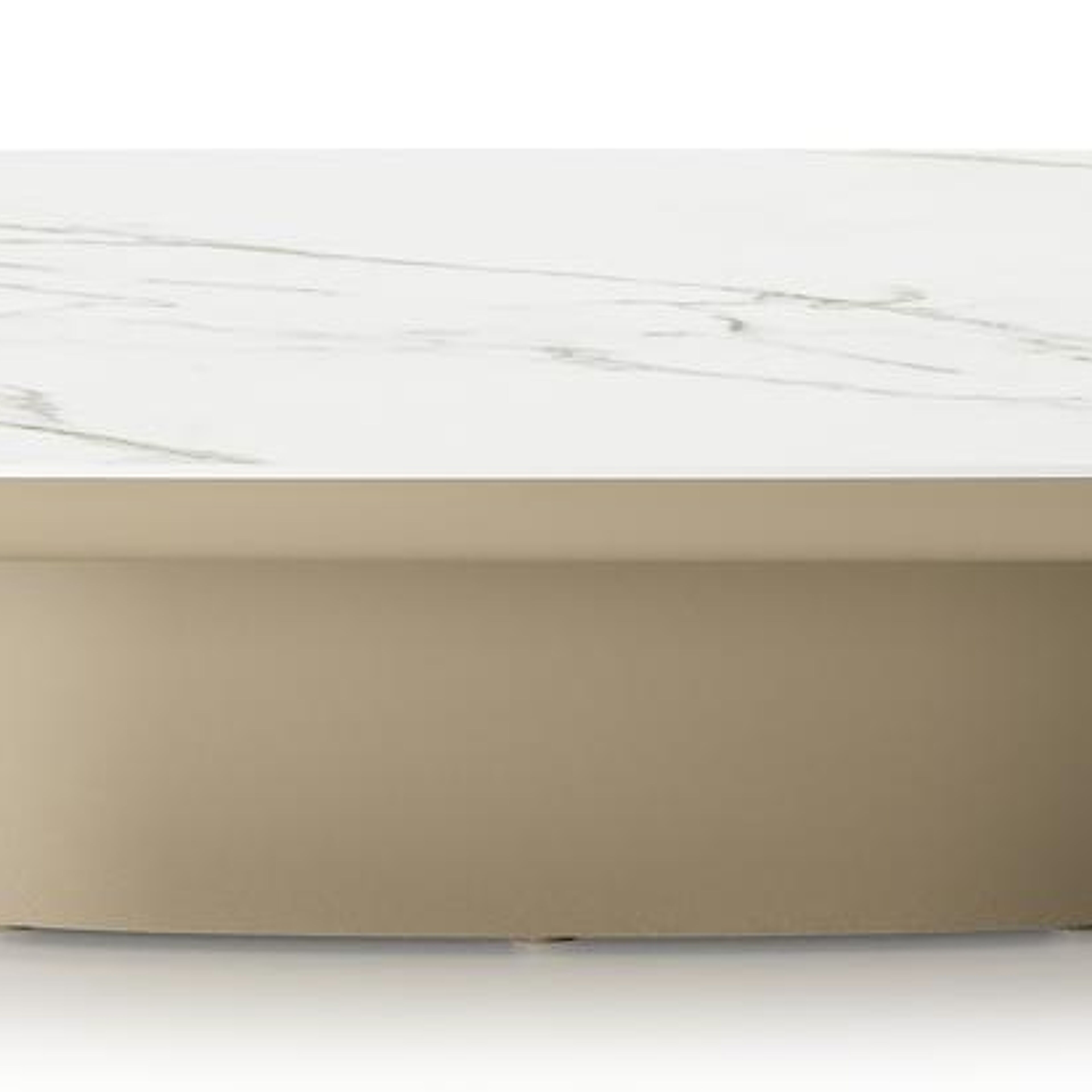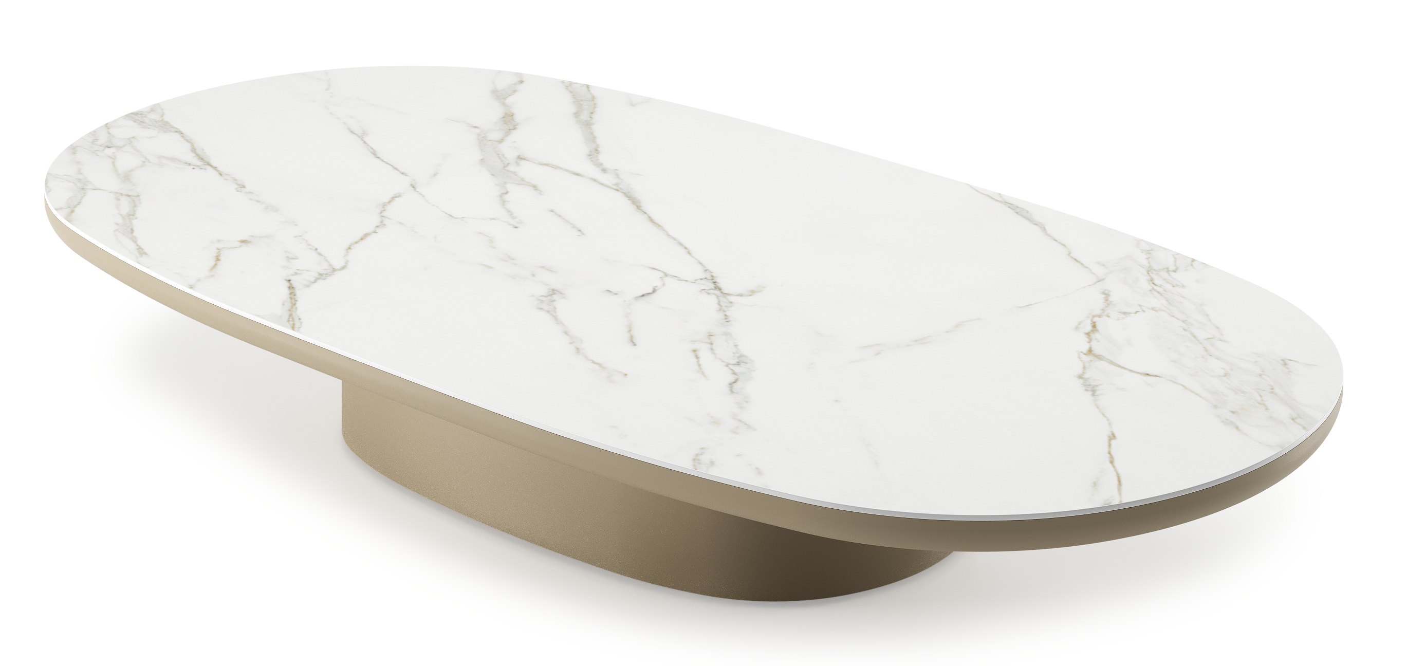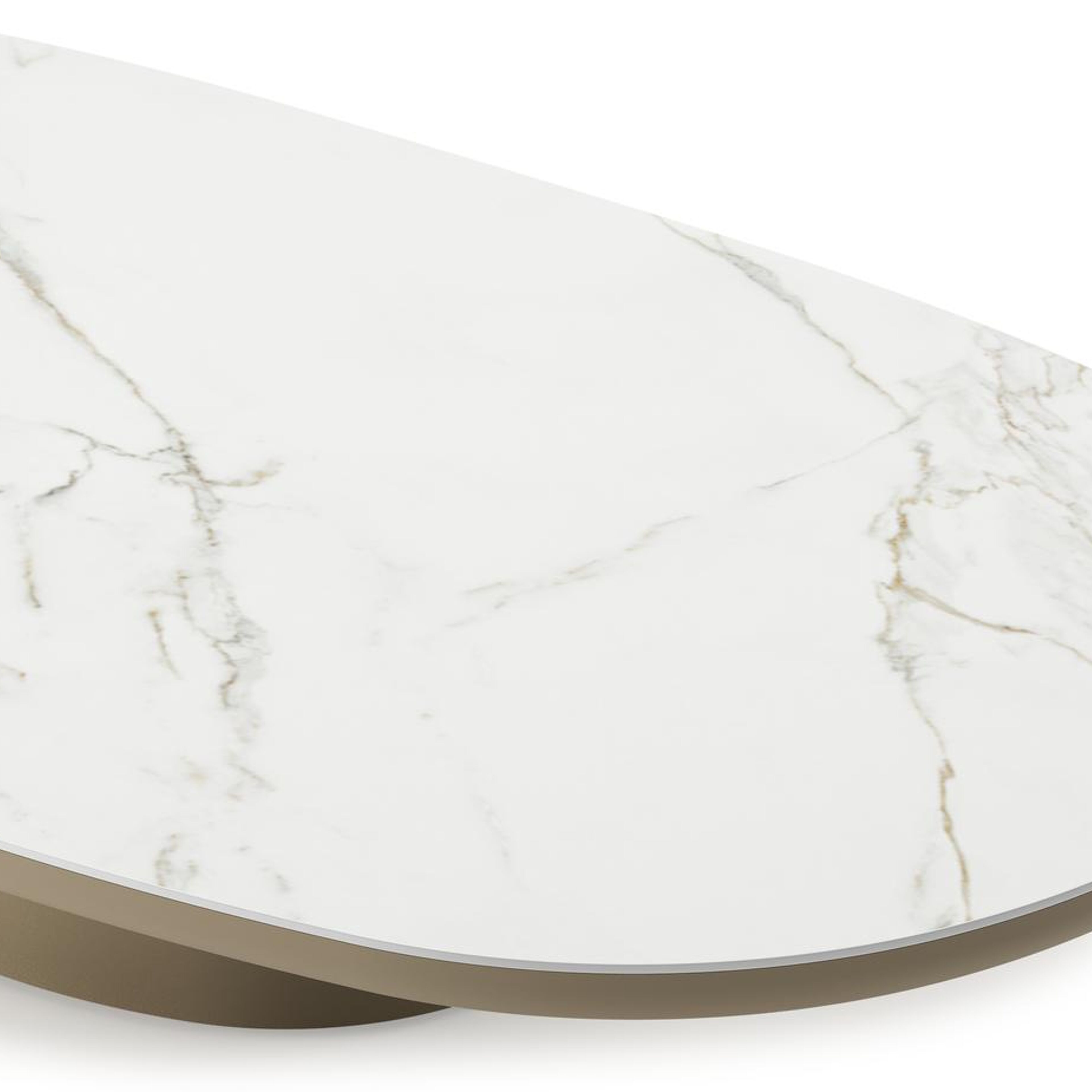 Table de basse Amico bombo en aluminium beige et céramique pleine Calacatta - Lg. 171 x Lrg. 89 x Haut. 24 cm | Exterioo mobilier de jardin