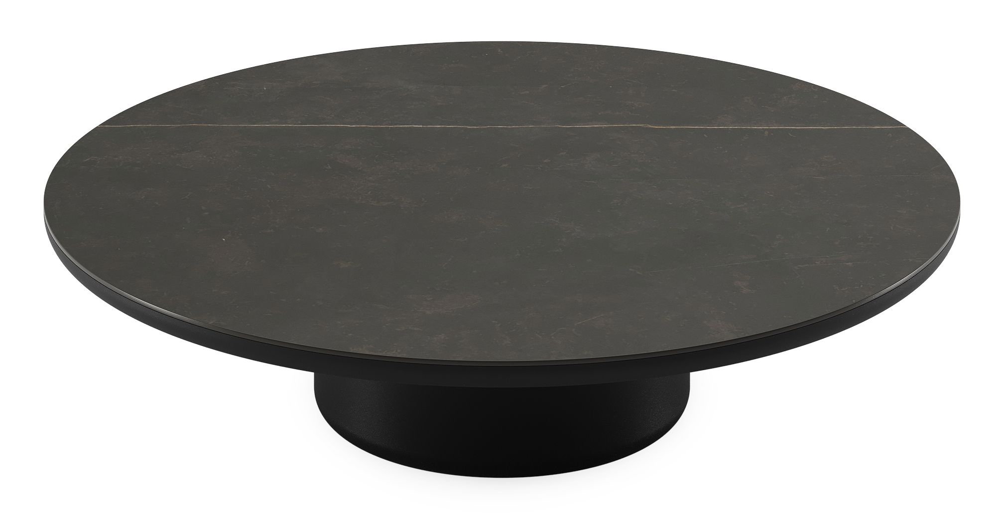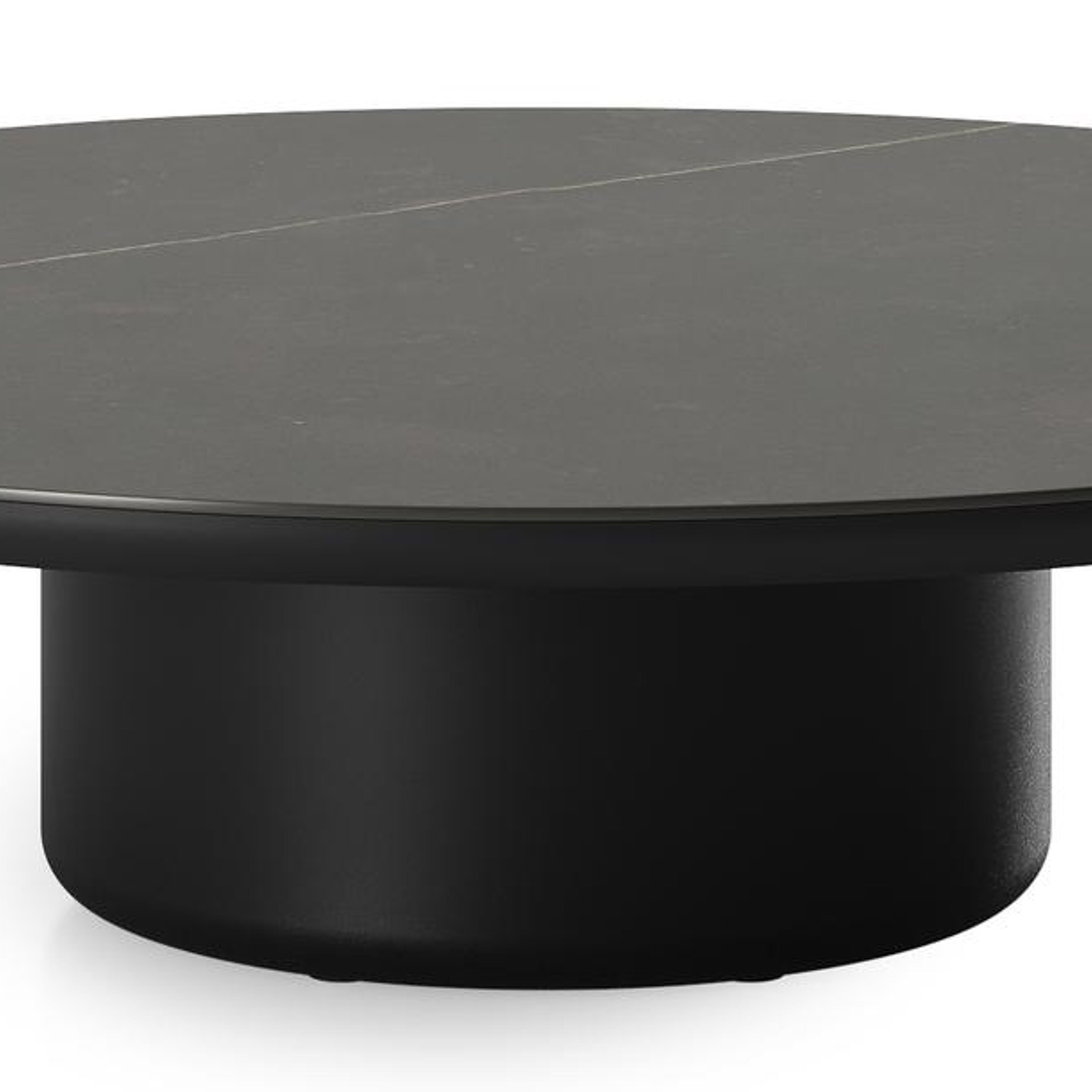 Table de basse Amico ronde en aluminium noir et céramique pleine Calatorao - Diam. 110 x Haut. 28 cm | Exterioo mobilier de jardin