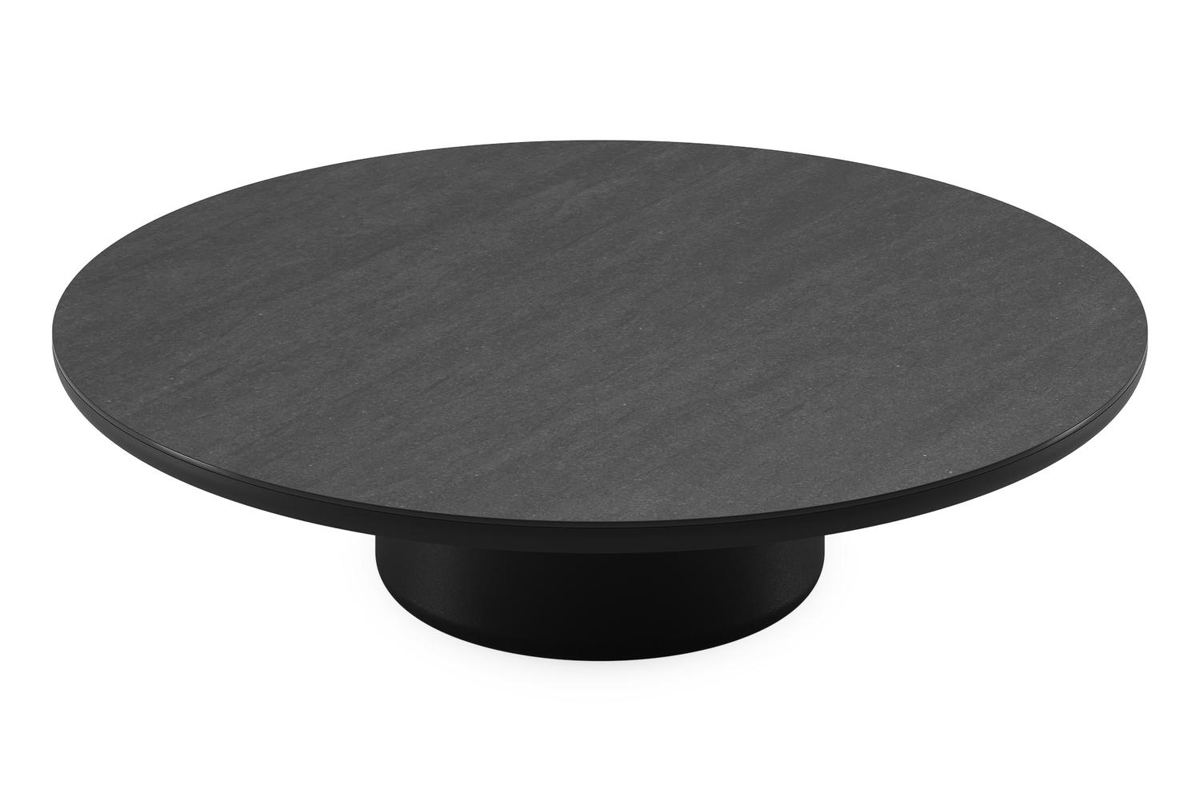 Table de basse Amico ronde en aluminium noir et céramique pleine Basalt Black - Diam. 110 x Haut. 28 cm | Exterioo