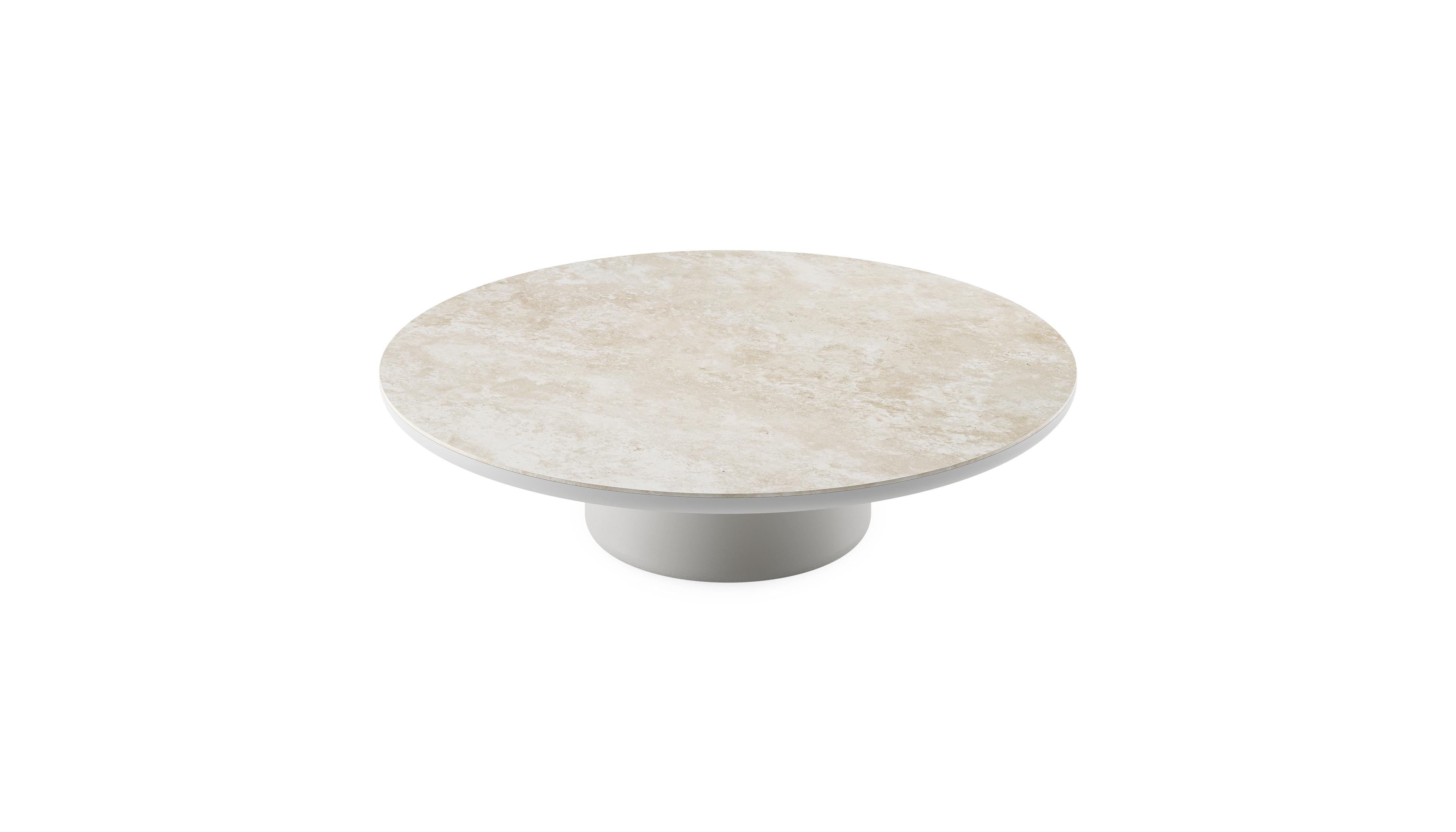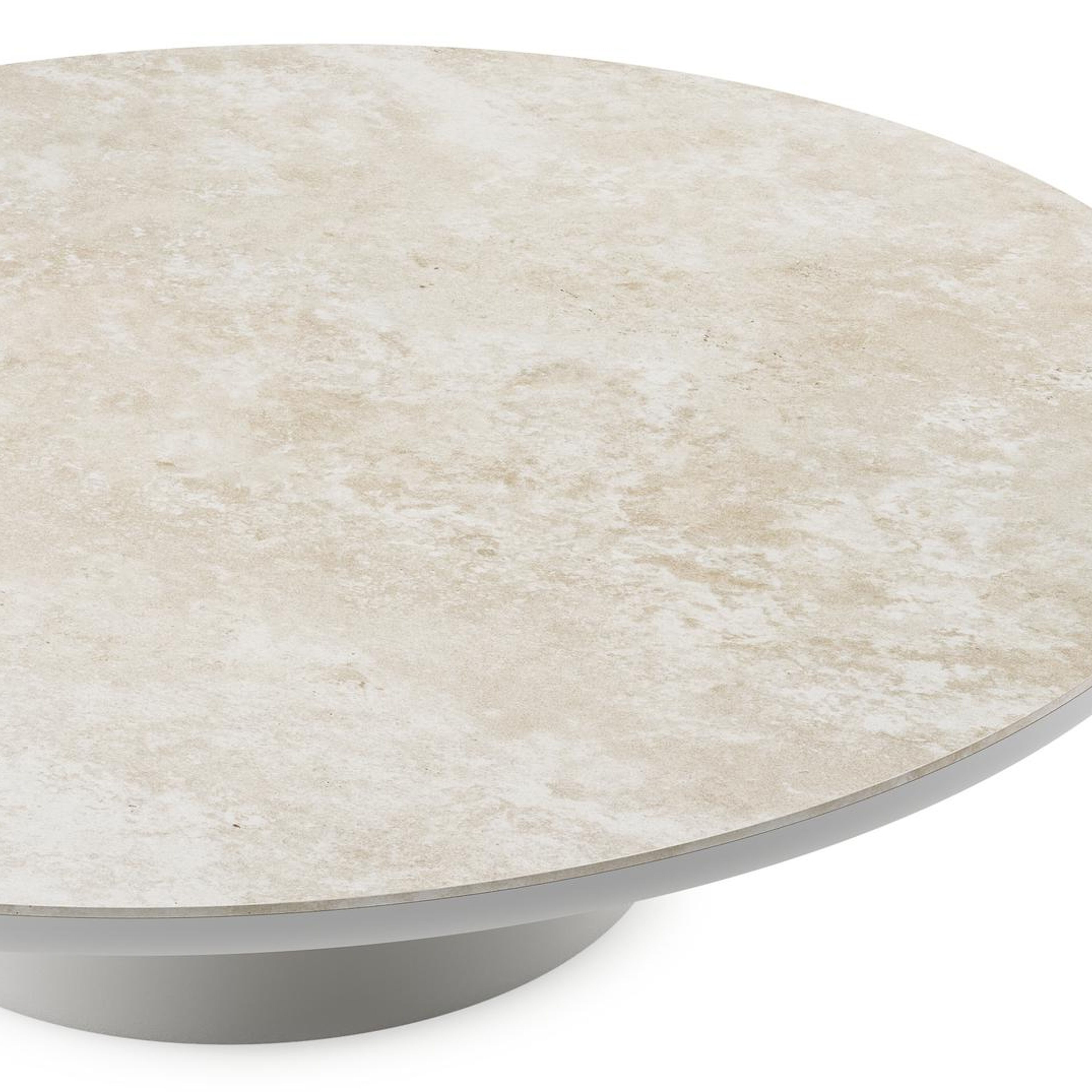 Table de basse Amico ronde en aluminium blanc et céramique pleine Rapolano - Diam. 110 x Haut. 28 cm | Exterioo mobilier de jardin