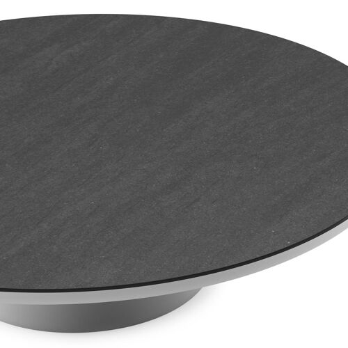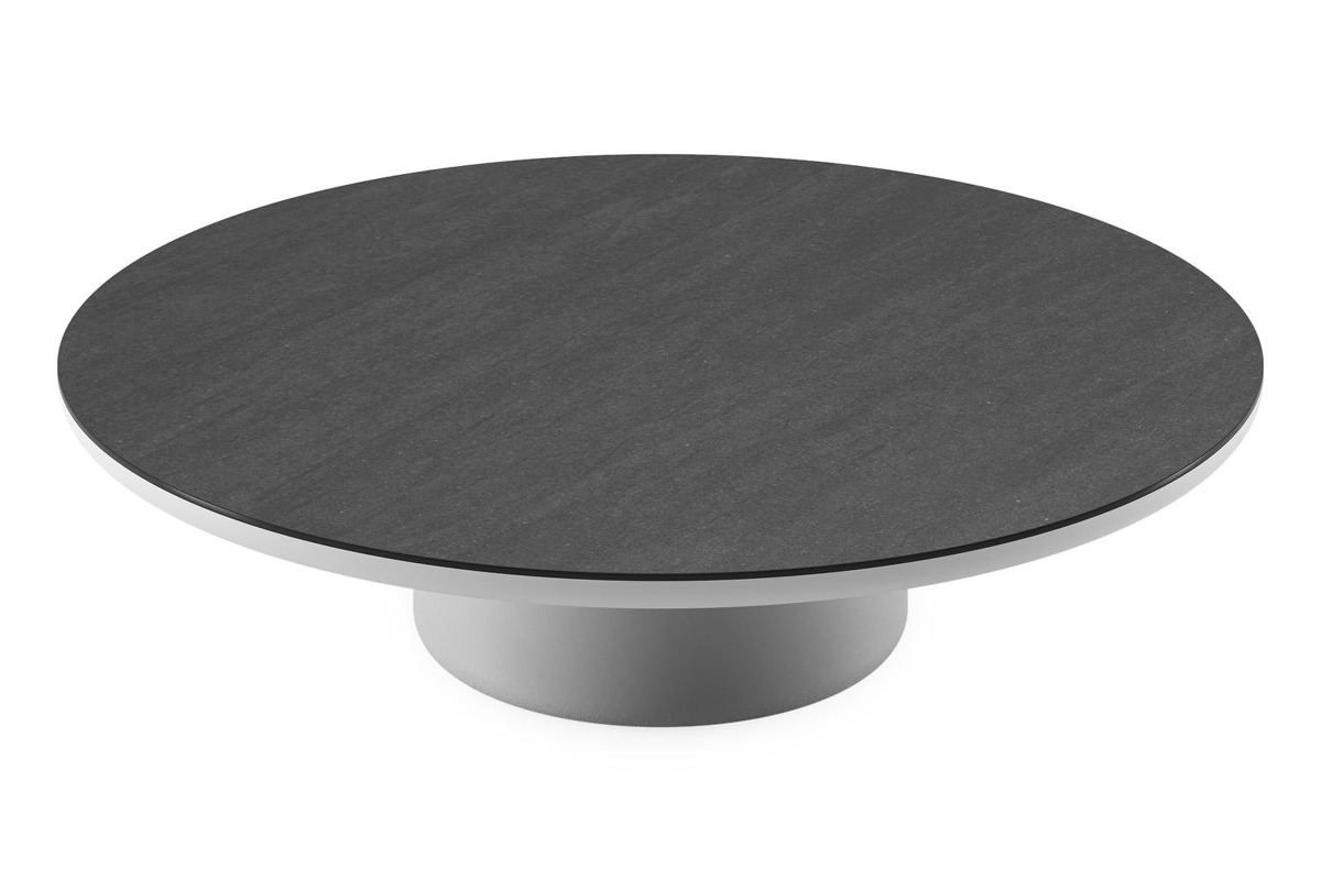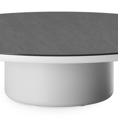 Table de basse Amico ronde en aluminium blanc et céramique pleine Basalt Black - Diam. 110 x Haut. 28 cm | Exterioo
