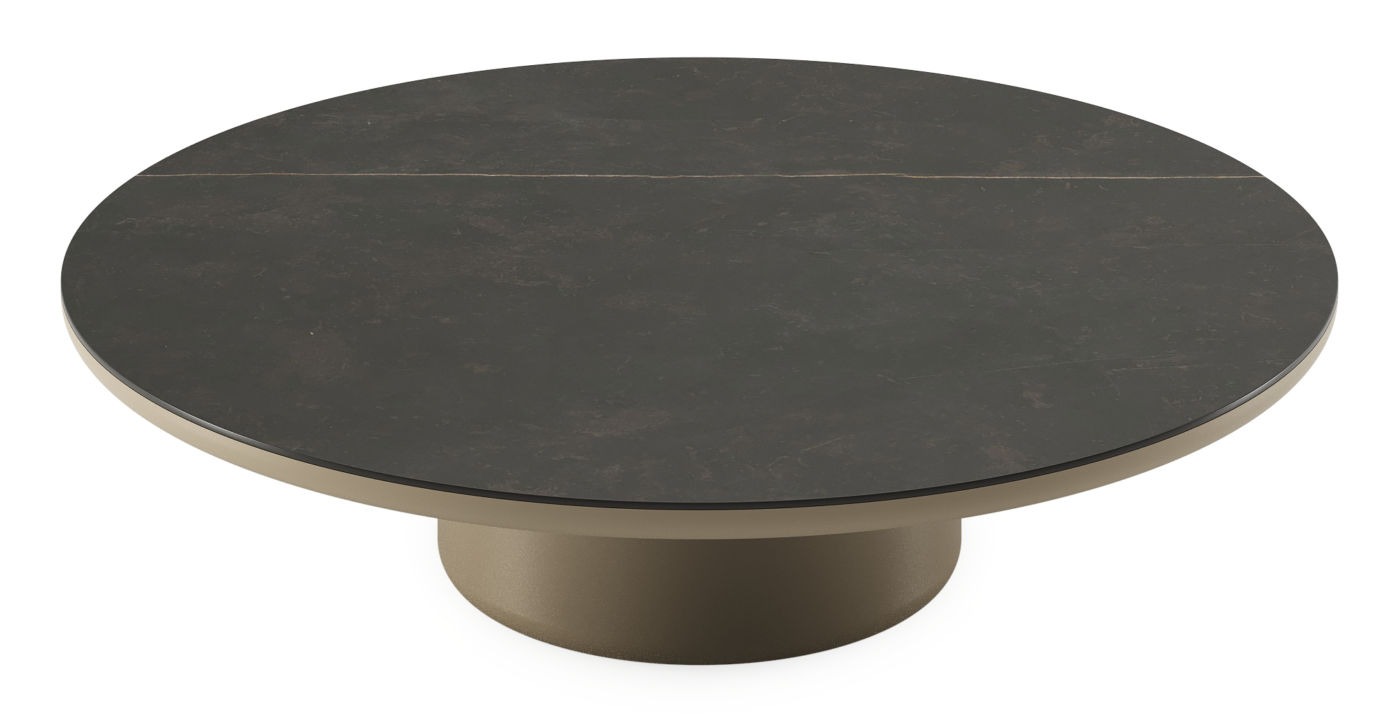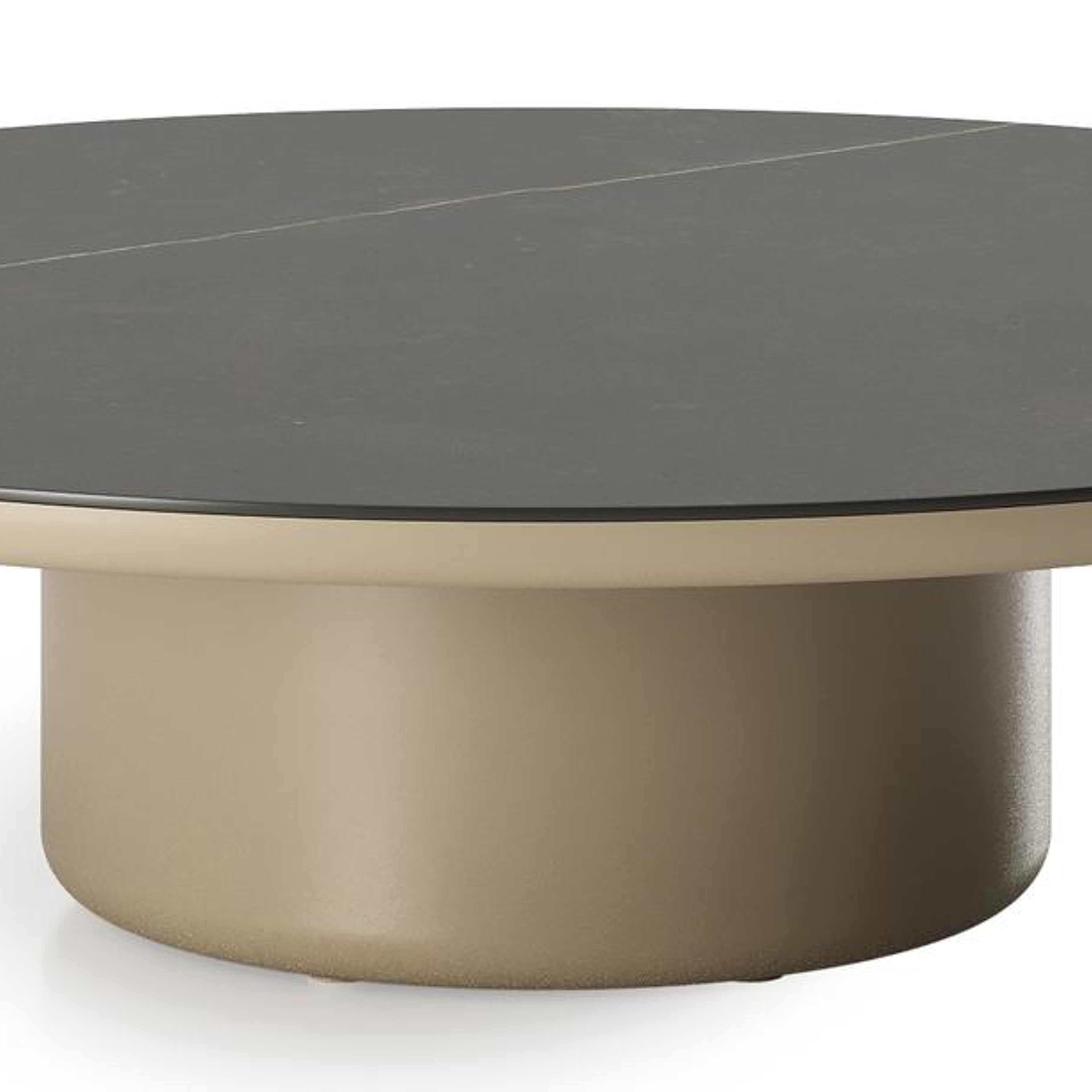 Table de basse Amico ronde en aluminium beige et céramique pleine Calatorao - Diam. 110 x Haut. 28 cm | Exterioo mobilier de jardin