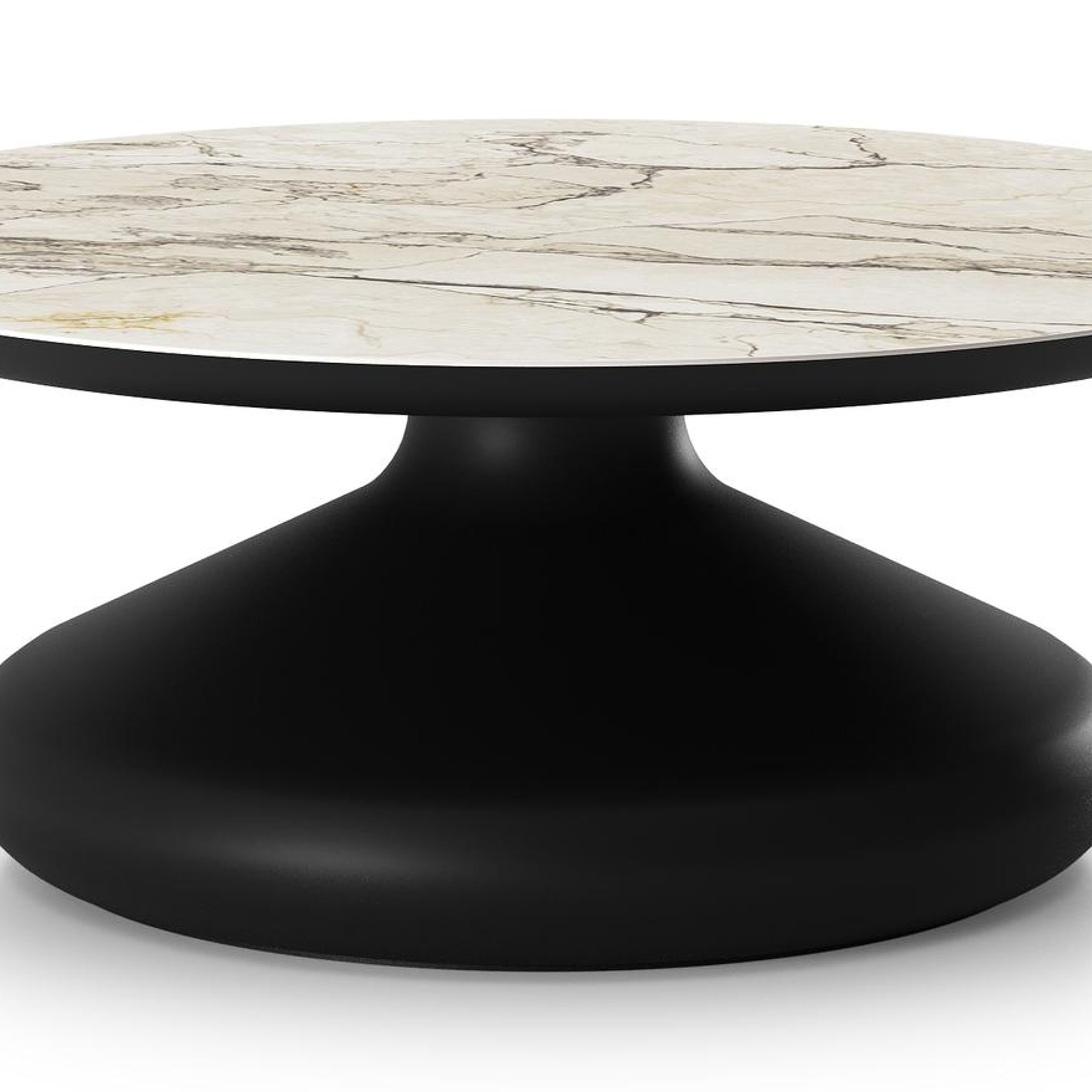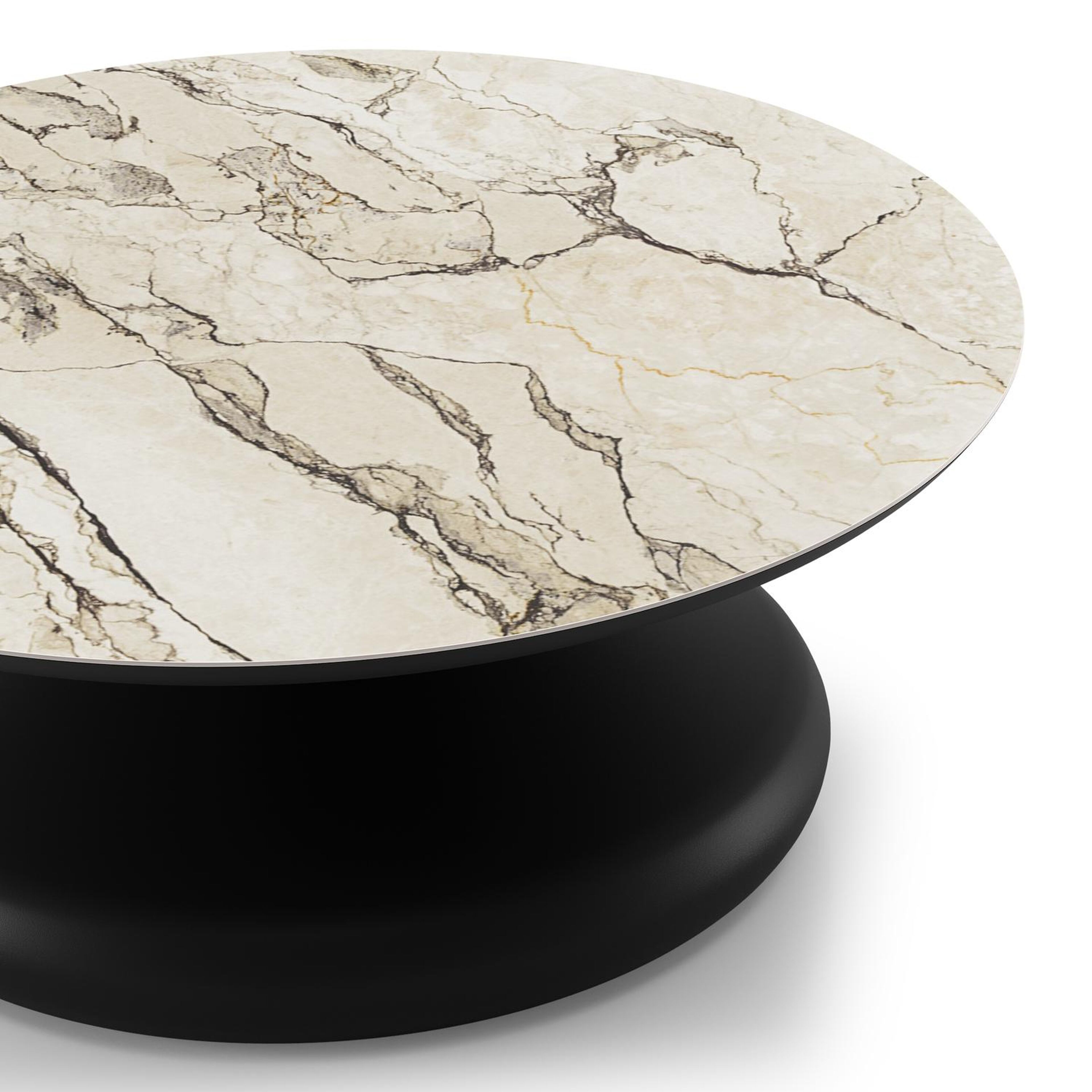 Table de basse Bomero ronde en aluminium noir et céramique pleine Colorado Dunes - Diam. 84 x Haut. 32.2 cm | Exterioo mobilier de jardin
