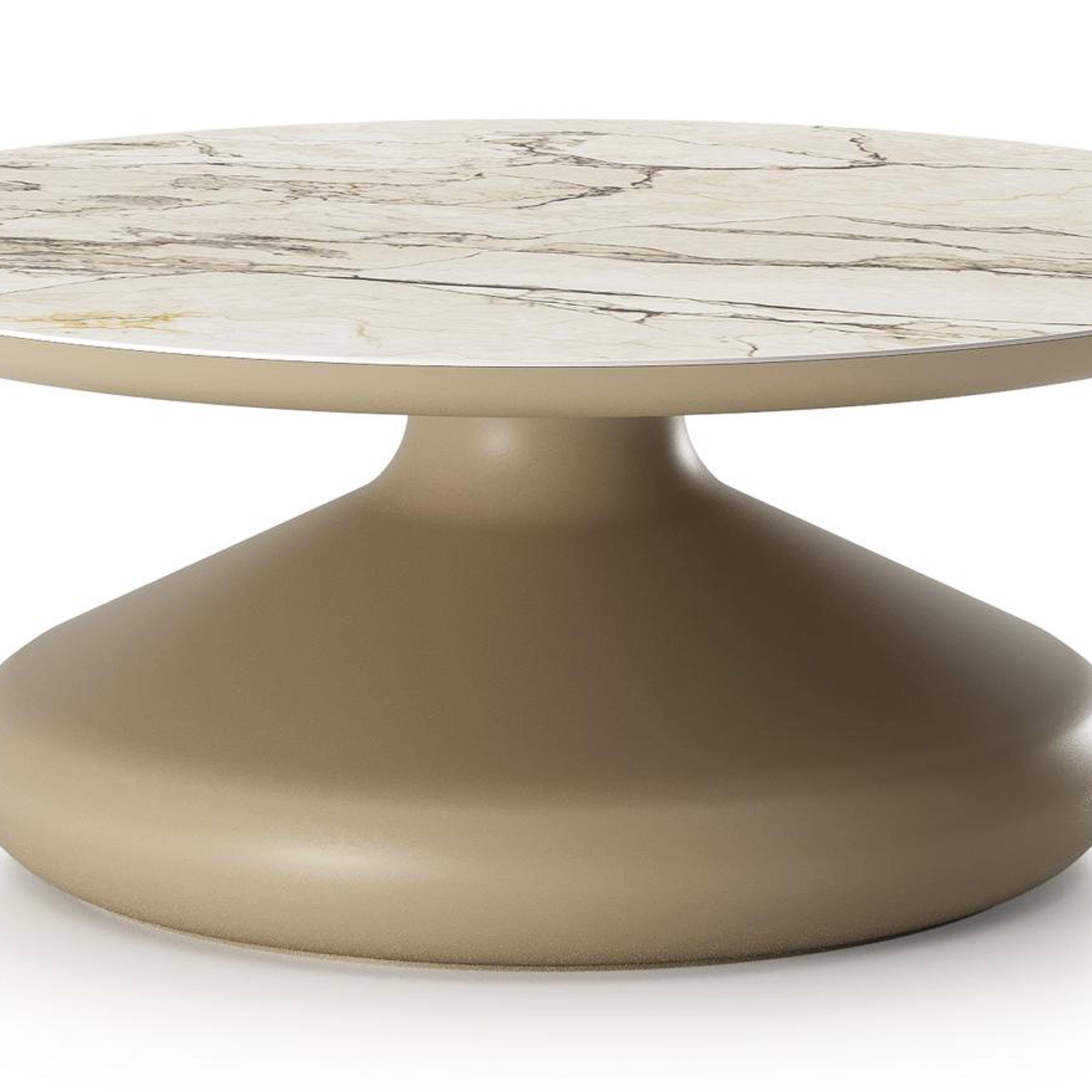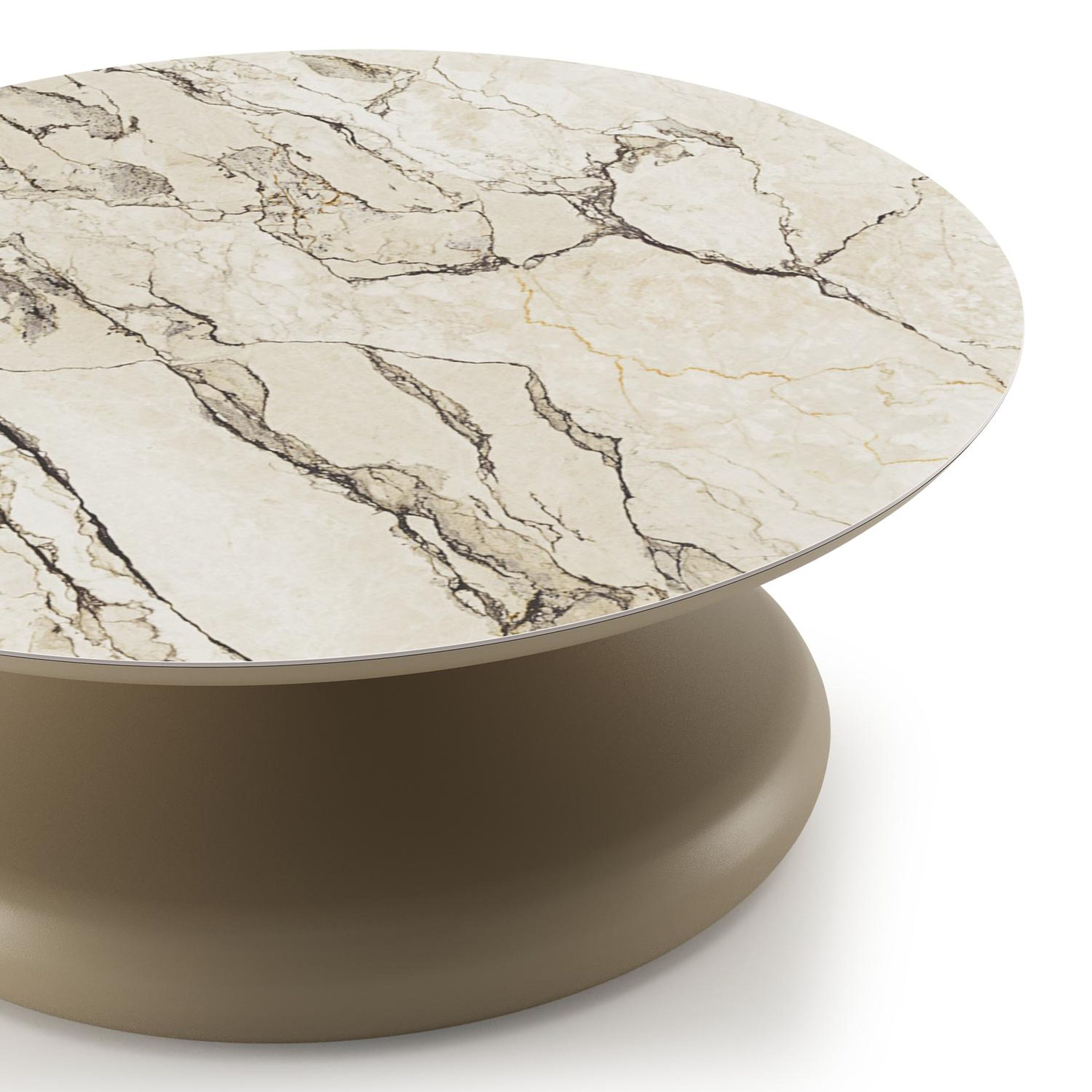 Table de basse Bomero ronde en aluminium beige et céramique pleine Colorado Dunes - Diam. 84 x Haut. 32.2 cm | Exterioo mobilier de jardin