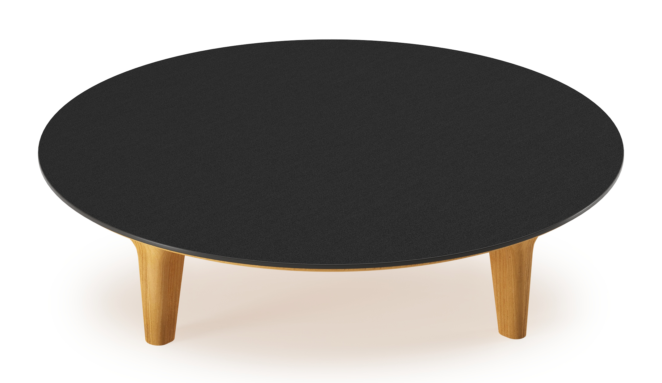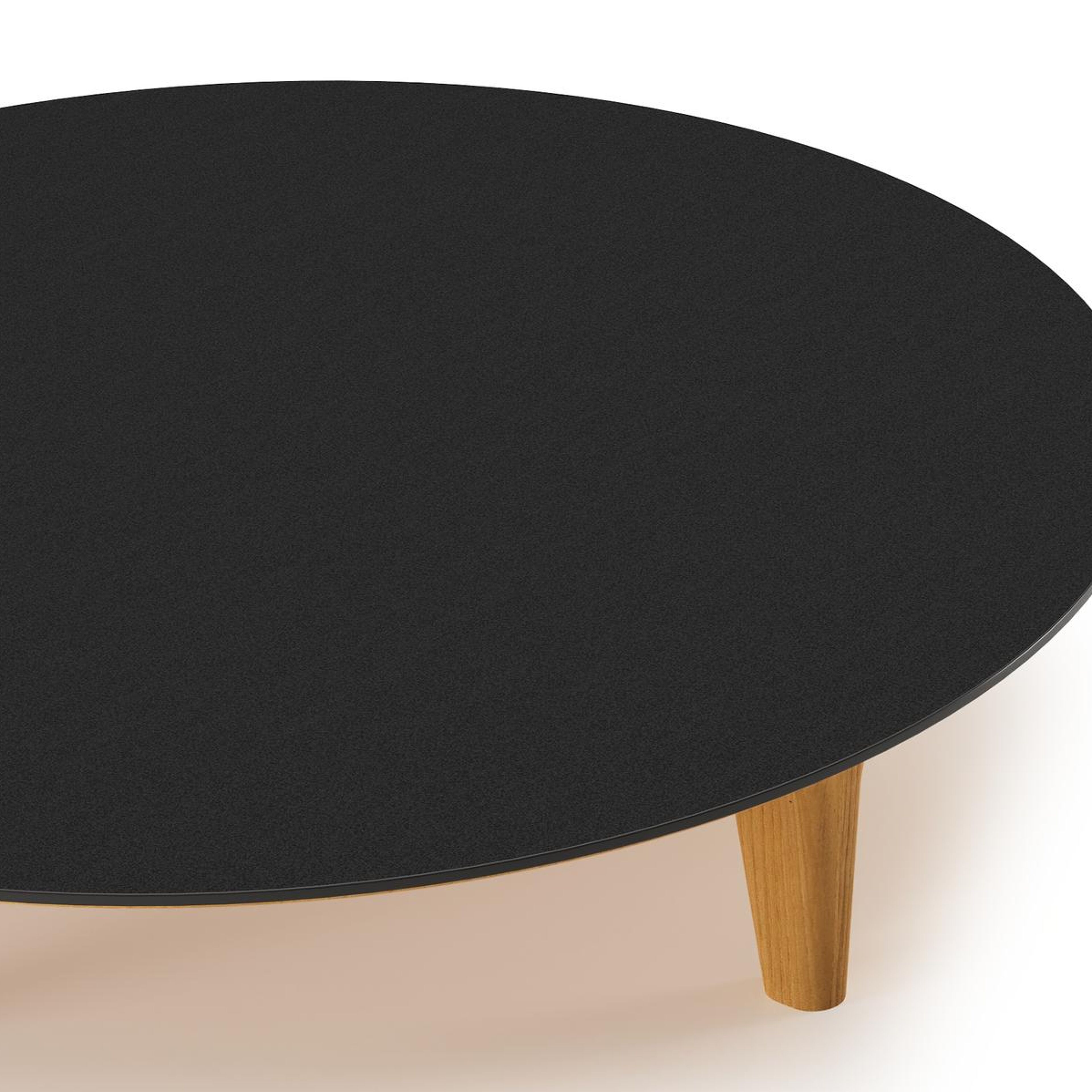 Table de basse Bomero ronde en teck et céramique pleine Nero Black - Diam. 85 x Haut. 20 cm | Exterioo mobilier de jardin