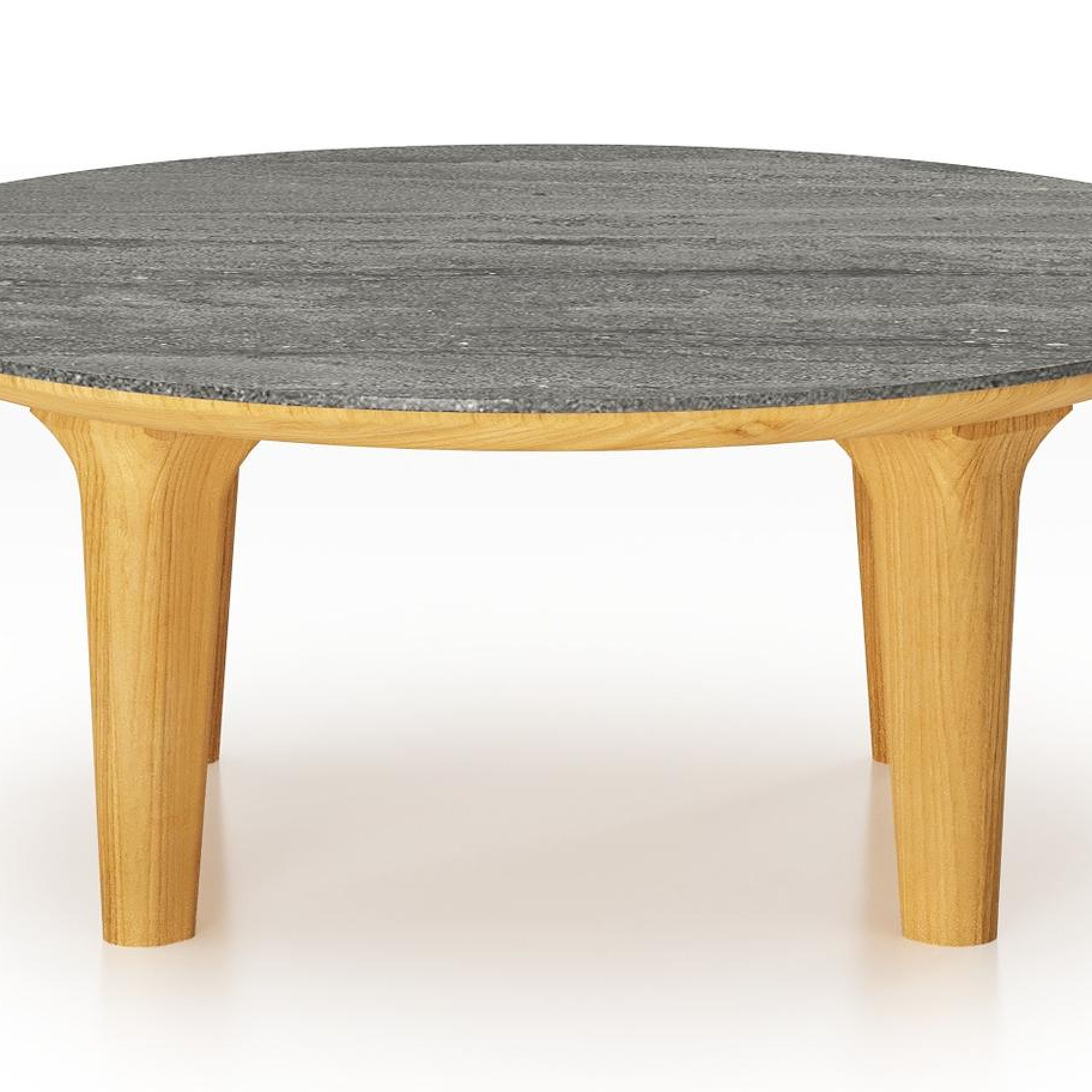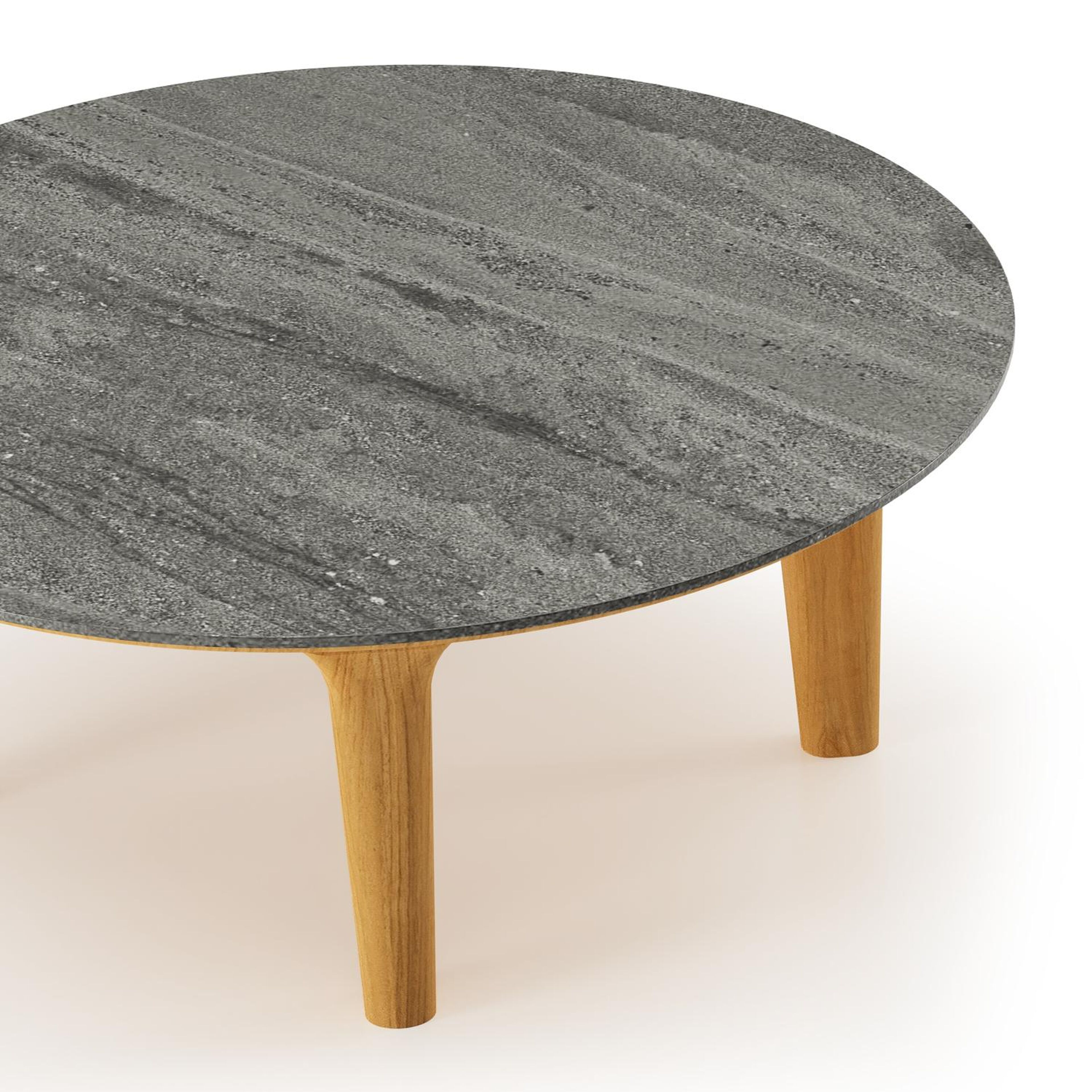Table de basse Bomero ronde en teck et céramique pleine Aspen Grey - Diam. 85 x Haut. 25 cm | Exterioo mobilier de jardin