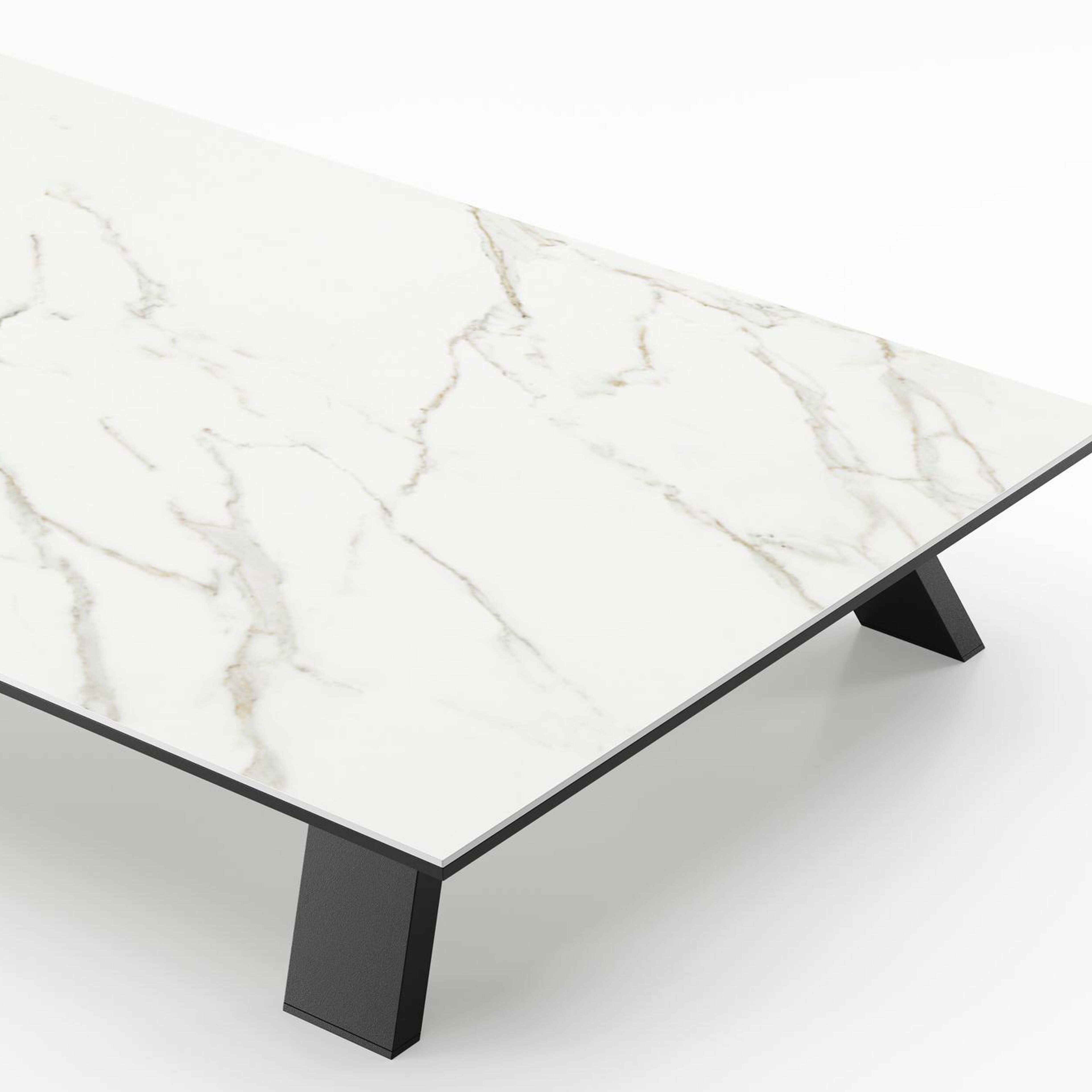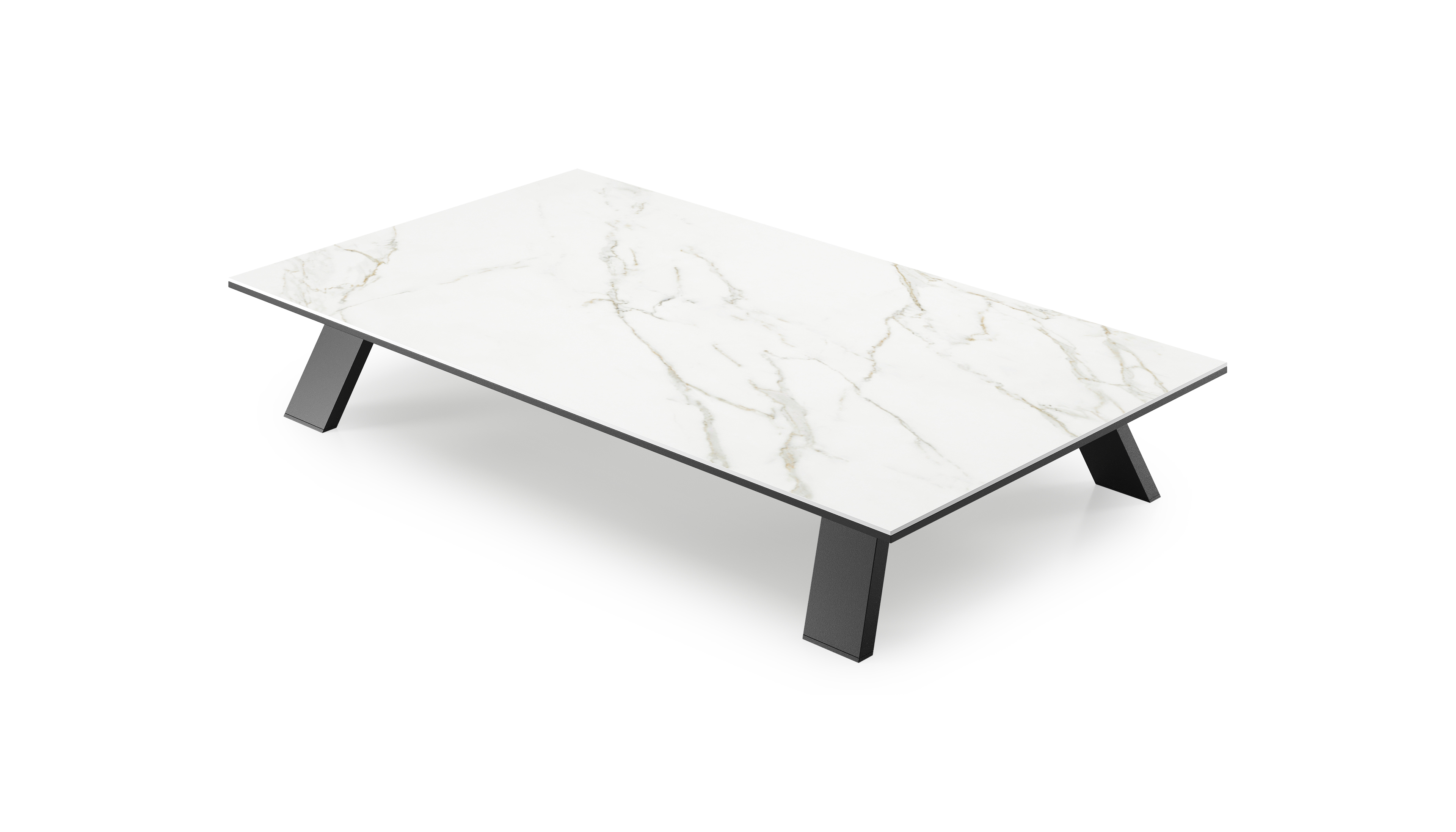 Table de basse Cesano rectangulaire en aluminium noir et céramique pleine Calacatta - Lg. 140 x Lrg. 80 x Haut. 24.2 cm | Exterioo mobilier de jardin