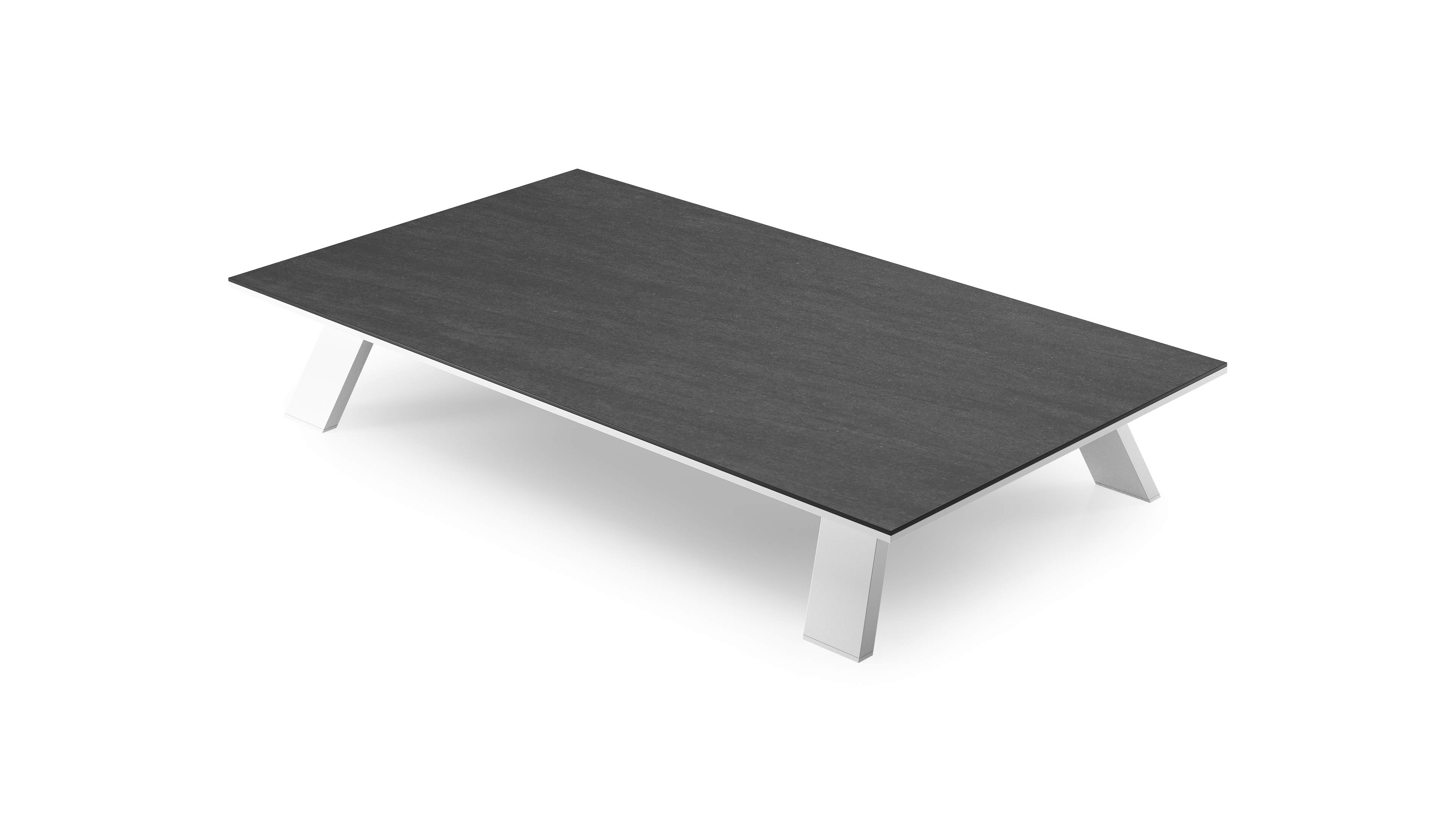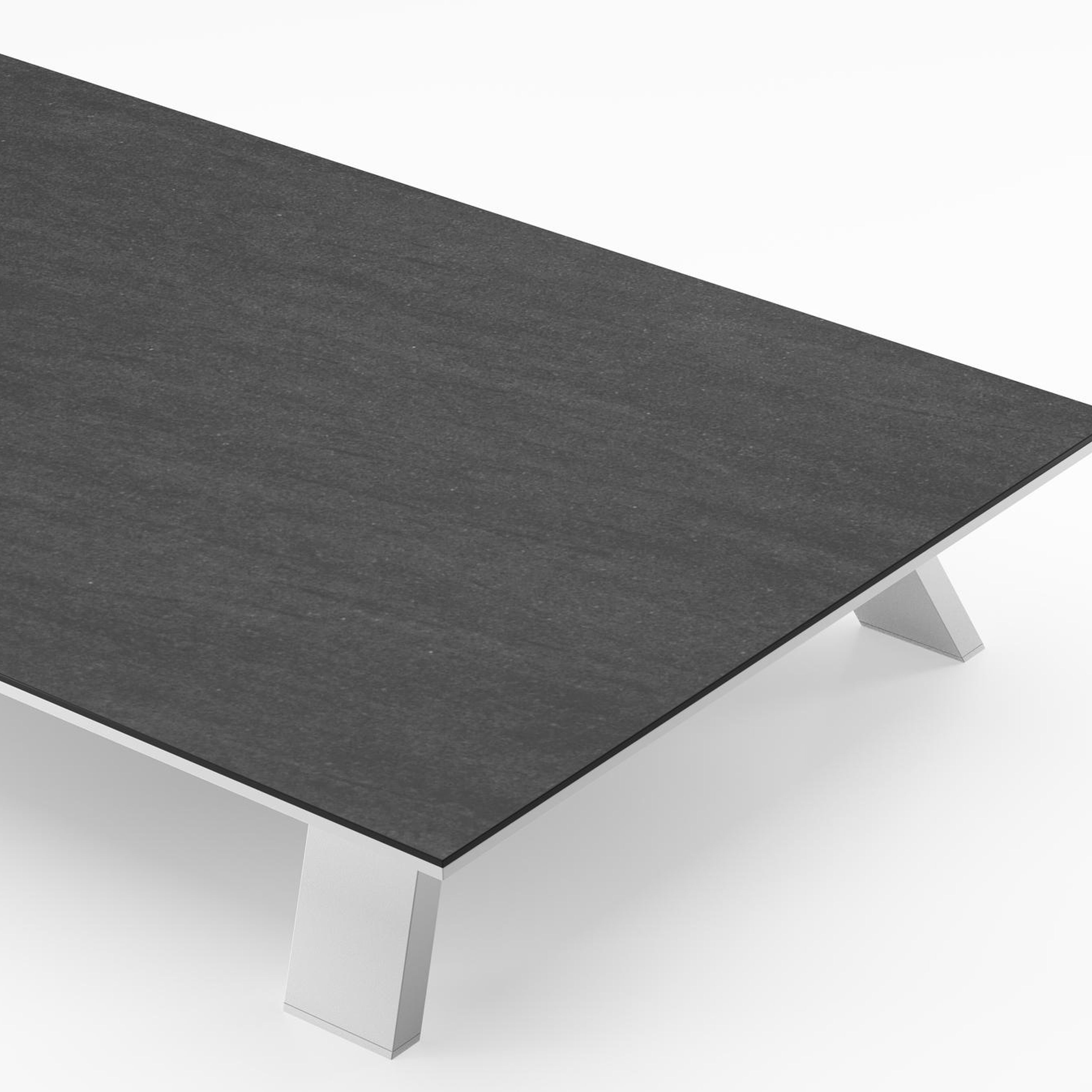 Table de basse Cesano rectangulaire en aluminium blanc et céramique pleine Basalt Black - Lg. 140 x Lrg. 80 x Haut. 24.2 cm | Exterioo mobilier de jardin