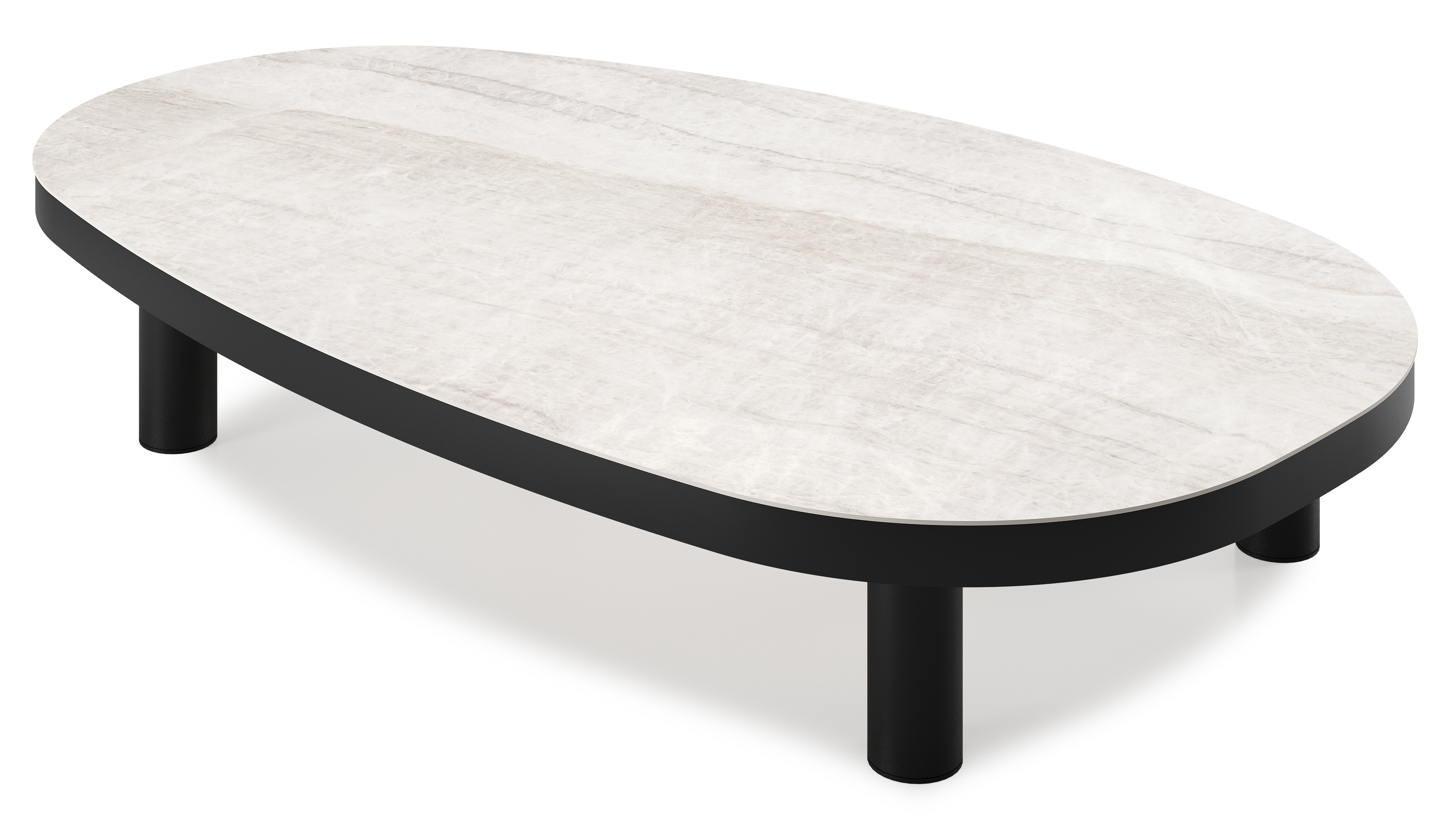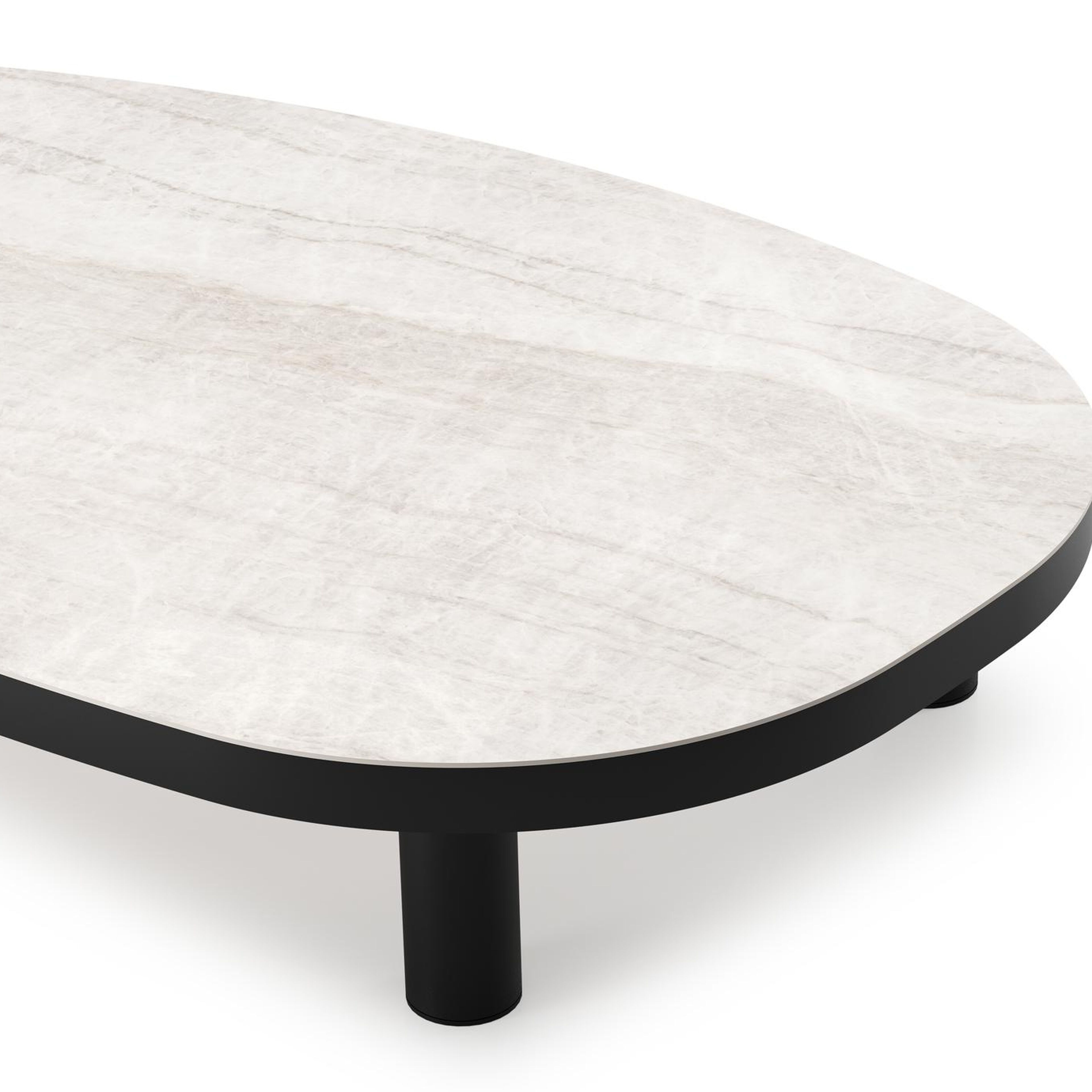 Table de basse Donato organique en aluminium noir et céramique pleine Taj Mahal - Lg. 151 x Lrg. 90 x Haut. 25 cm | Exterioo mobilier de jardin