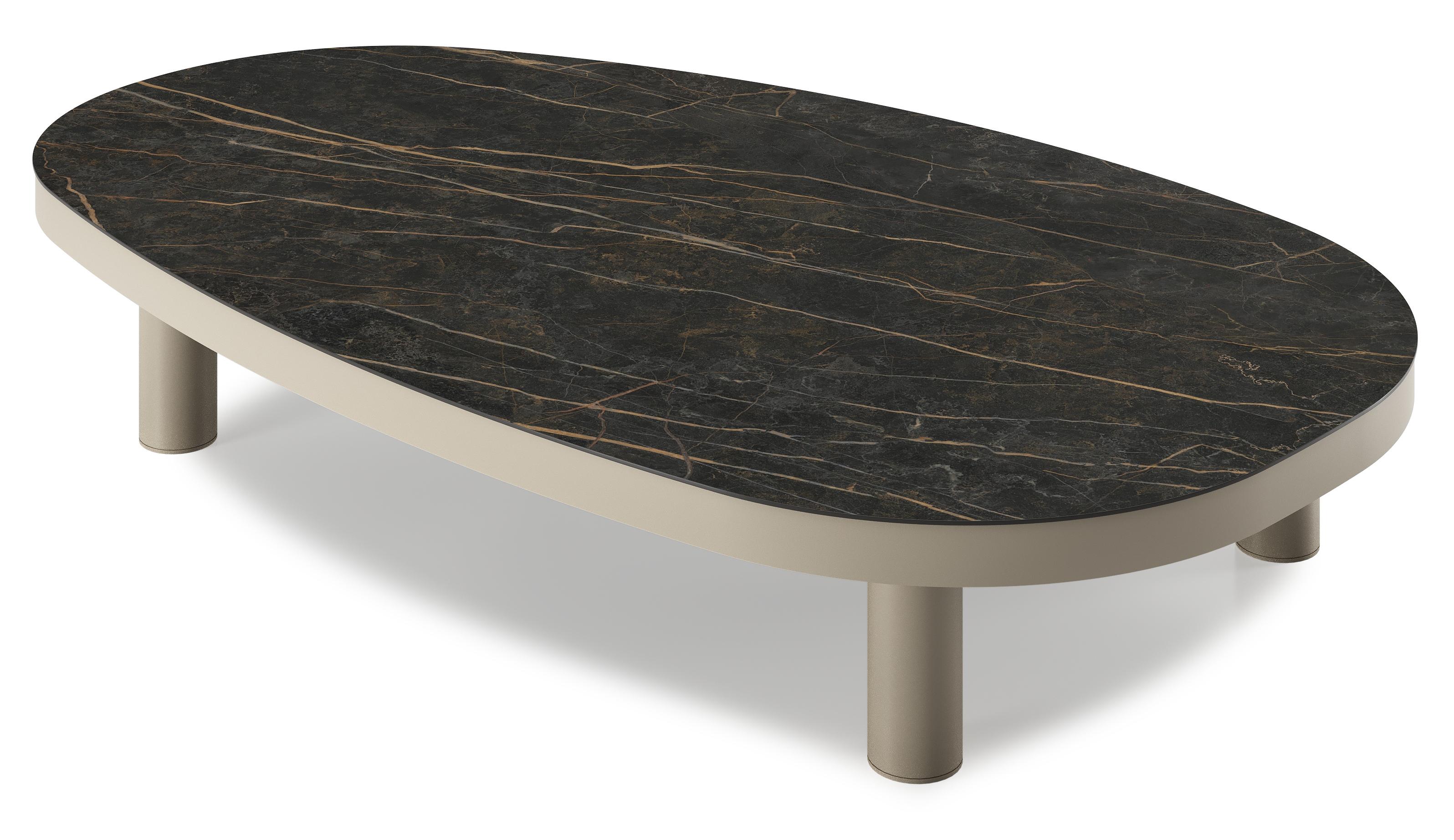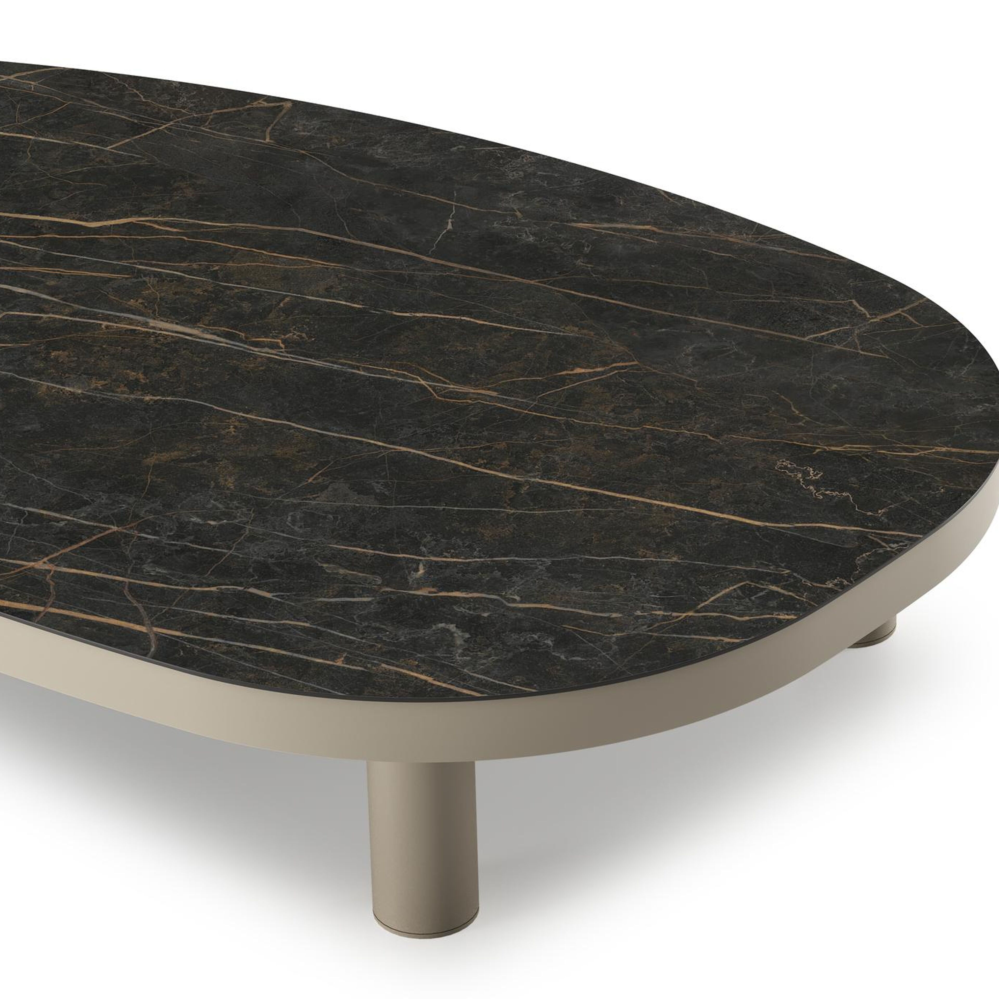 Table de basse Donato organique en aluminium beige et céramique pleine Black Obsession - Lg. 151 x Lrg. 90 x Haut. 24.5 cm | Exterioo mobilier de jardin