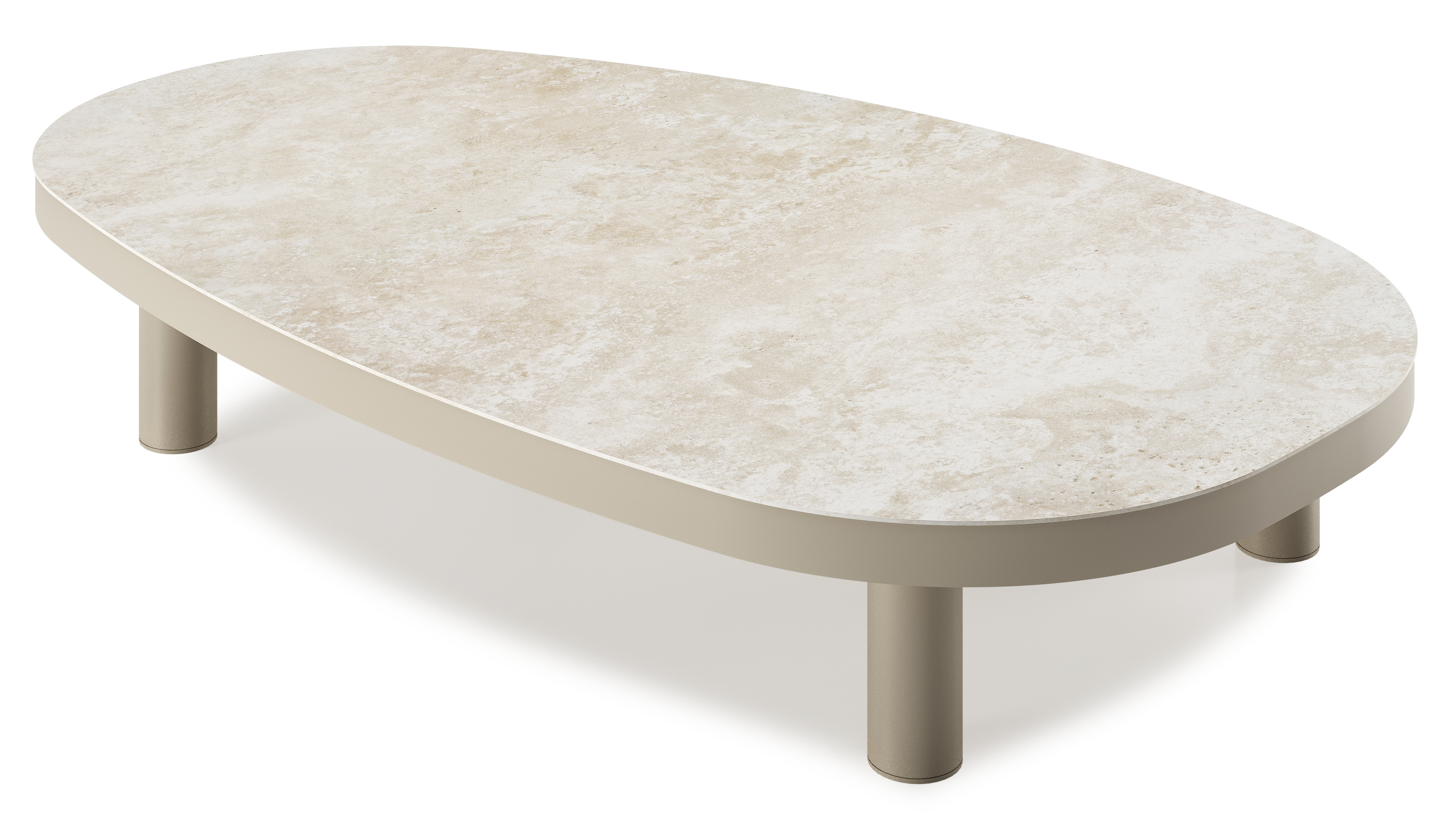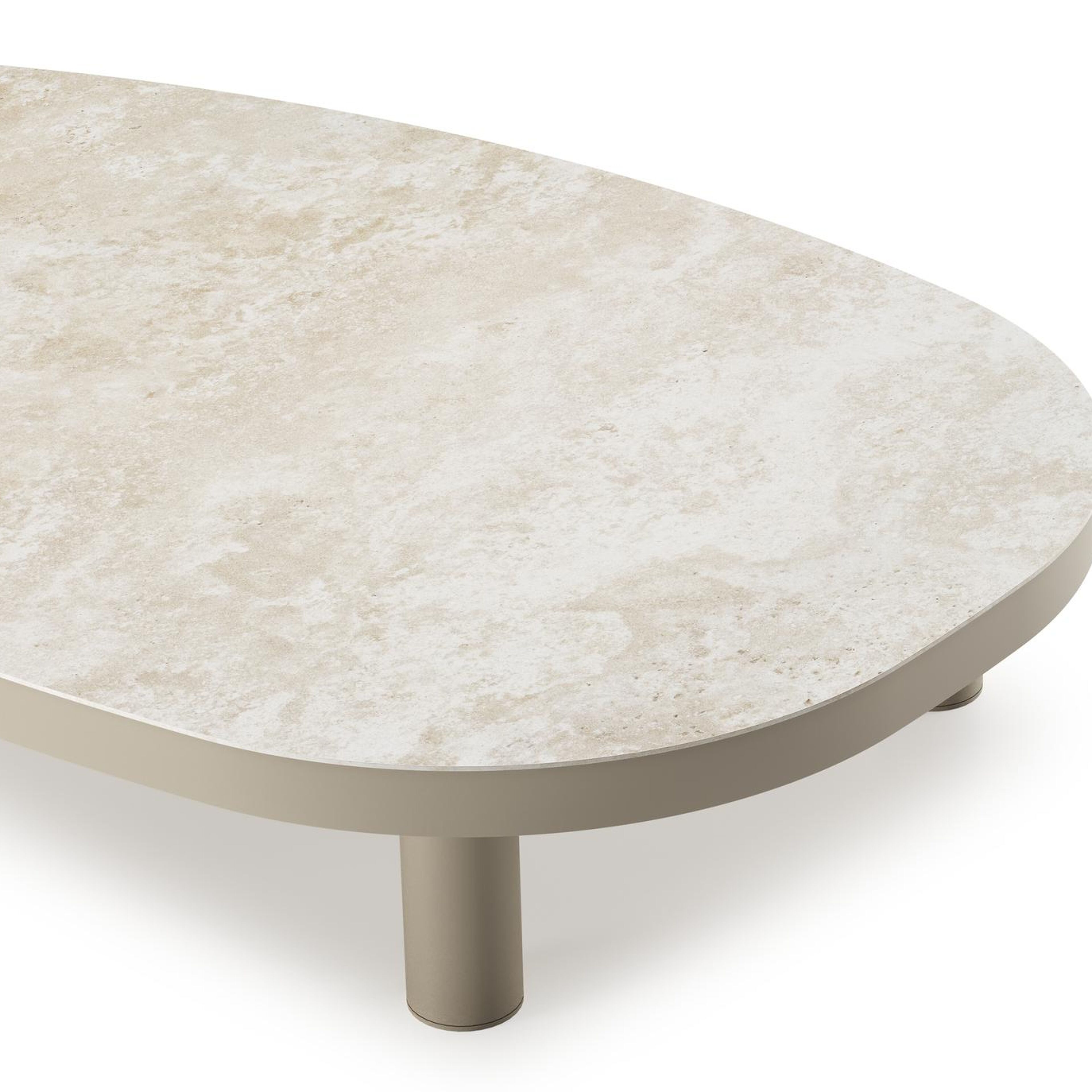 Table de basse Donato organique en aluminium beige et céramique pleine Rapolano - Lg. 151 x Lrg. 90 x Haut. 24.5 cm | Exterioo mobilier de jardin