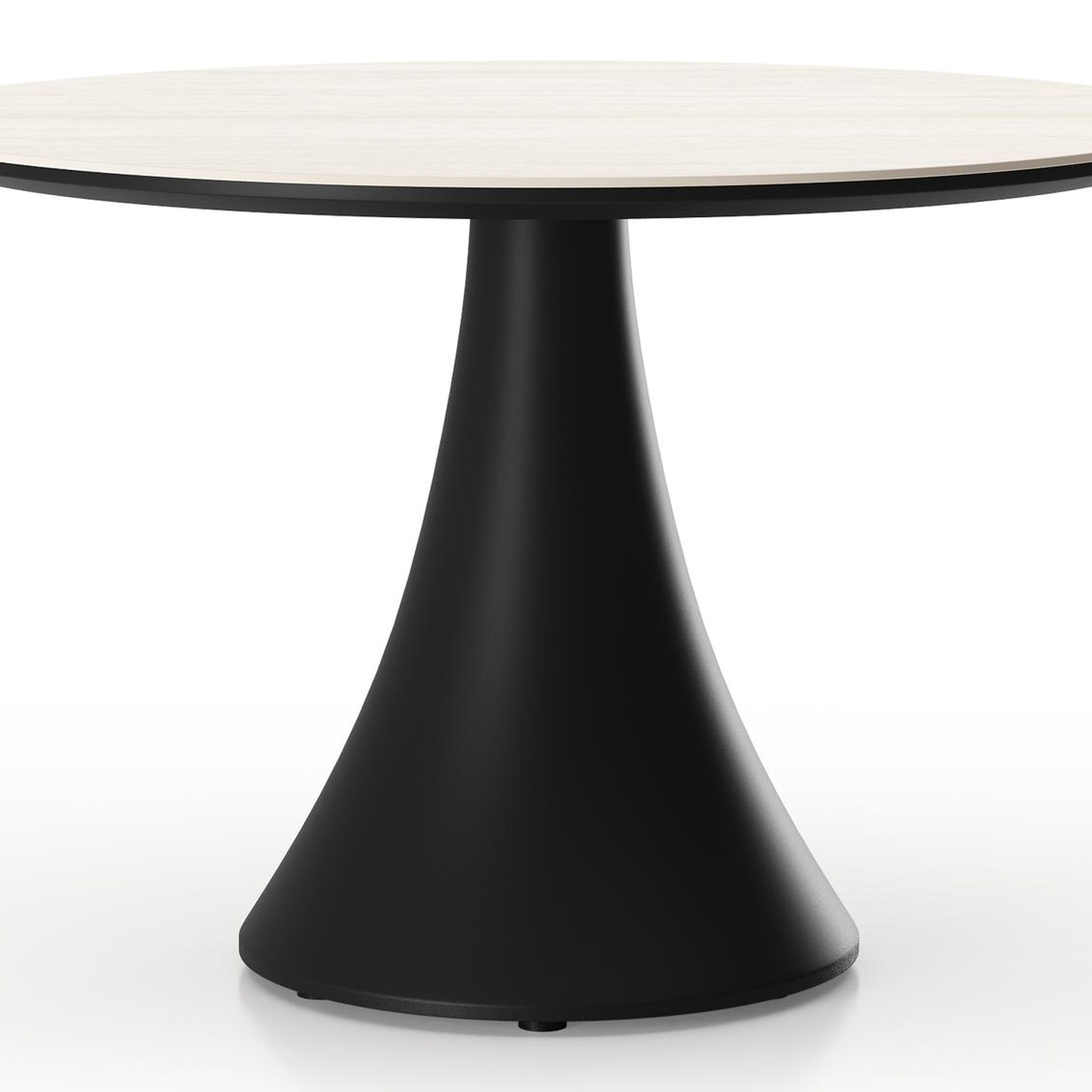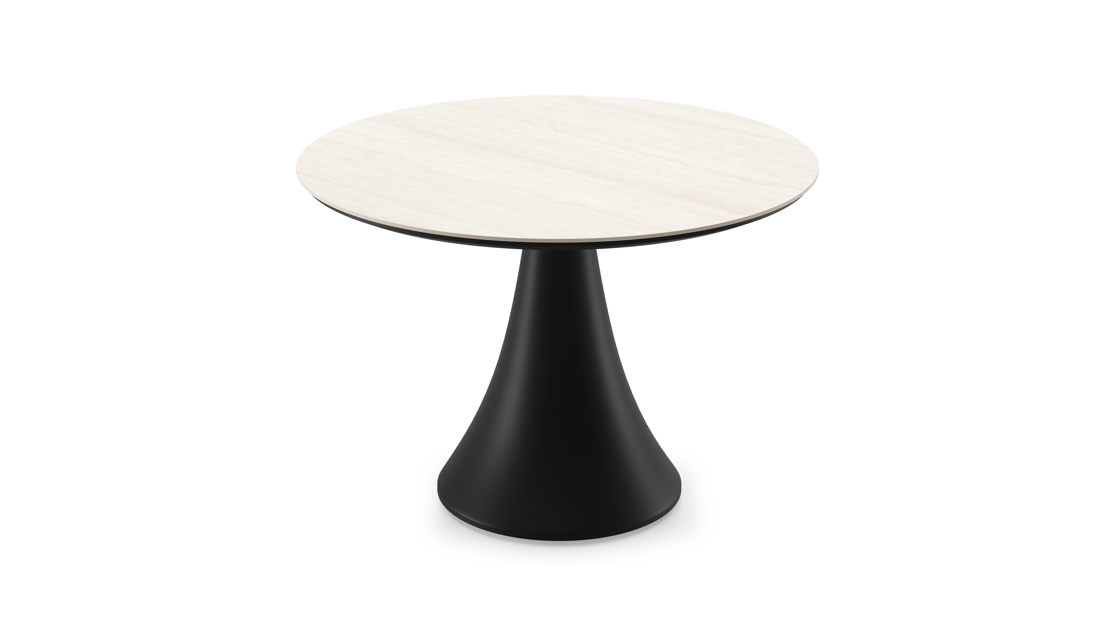 Table de basse low dining Fano ronde en aluminium noir et céramique pleine Travertino Bianco - Diam. 85 x Haut. 55 cm | Exterioo mobilier de jardin