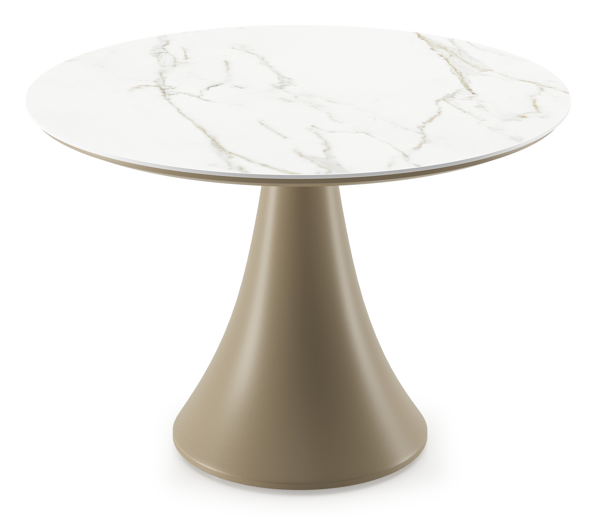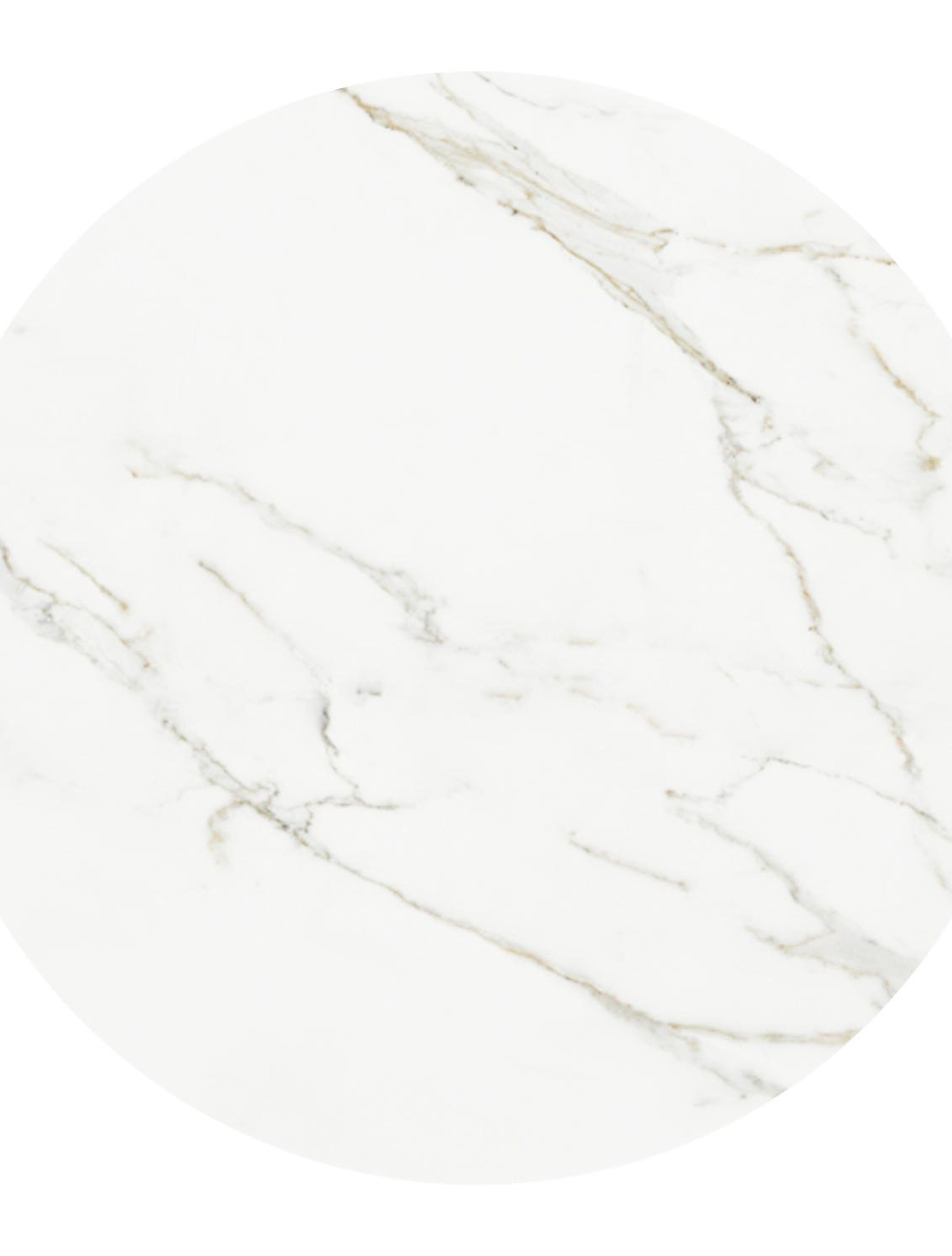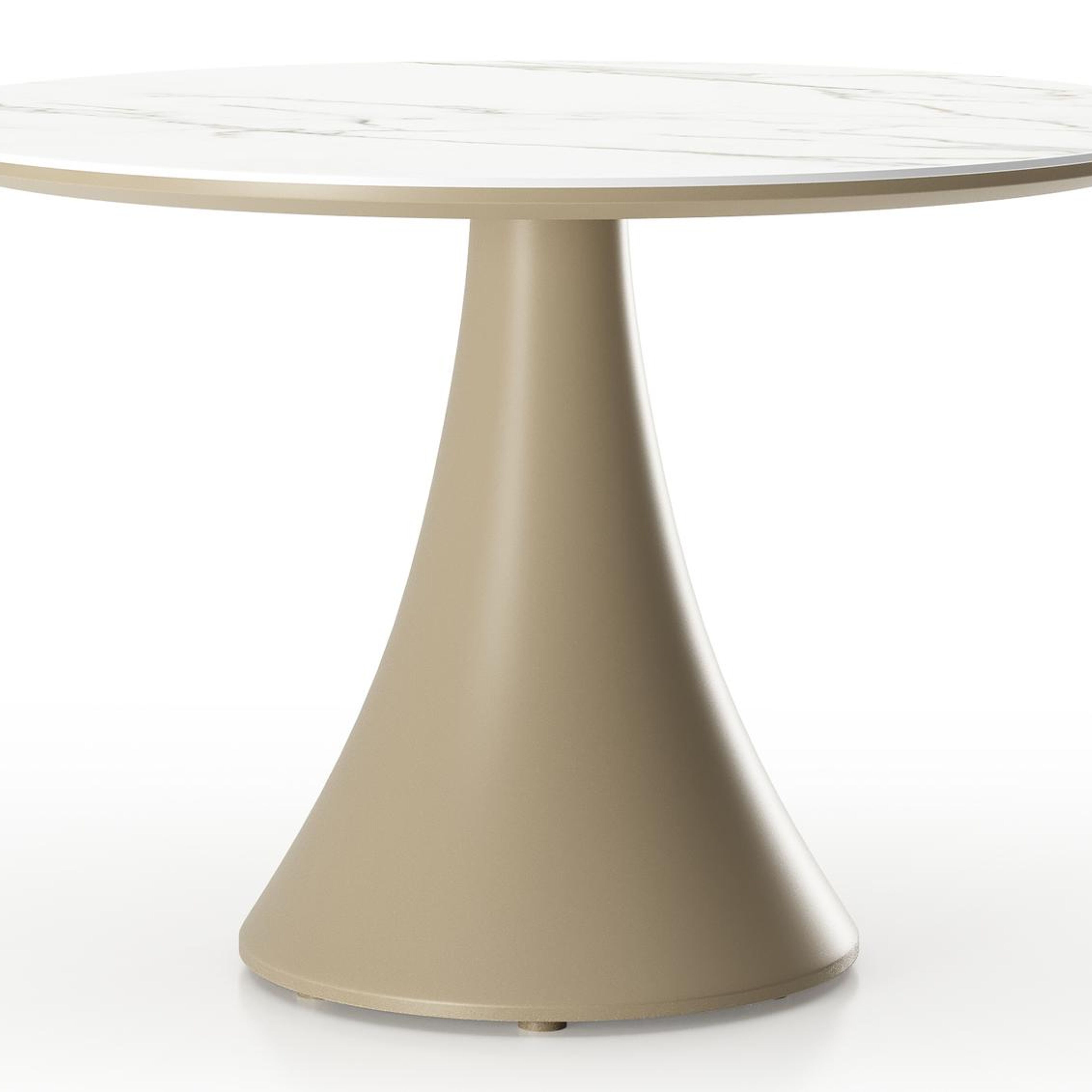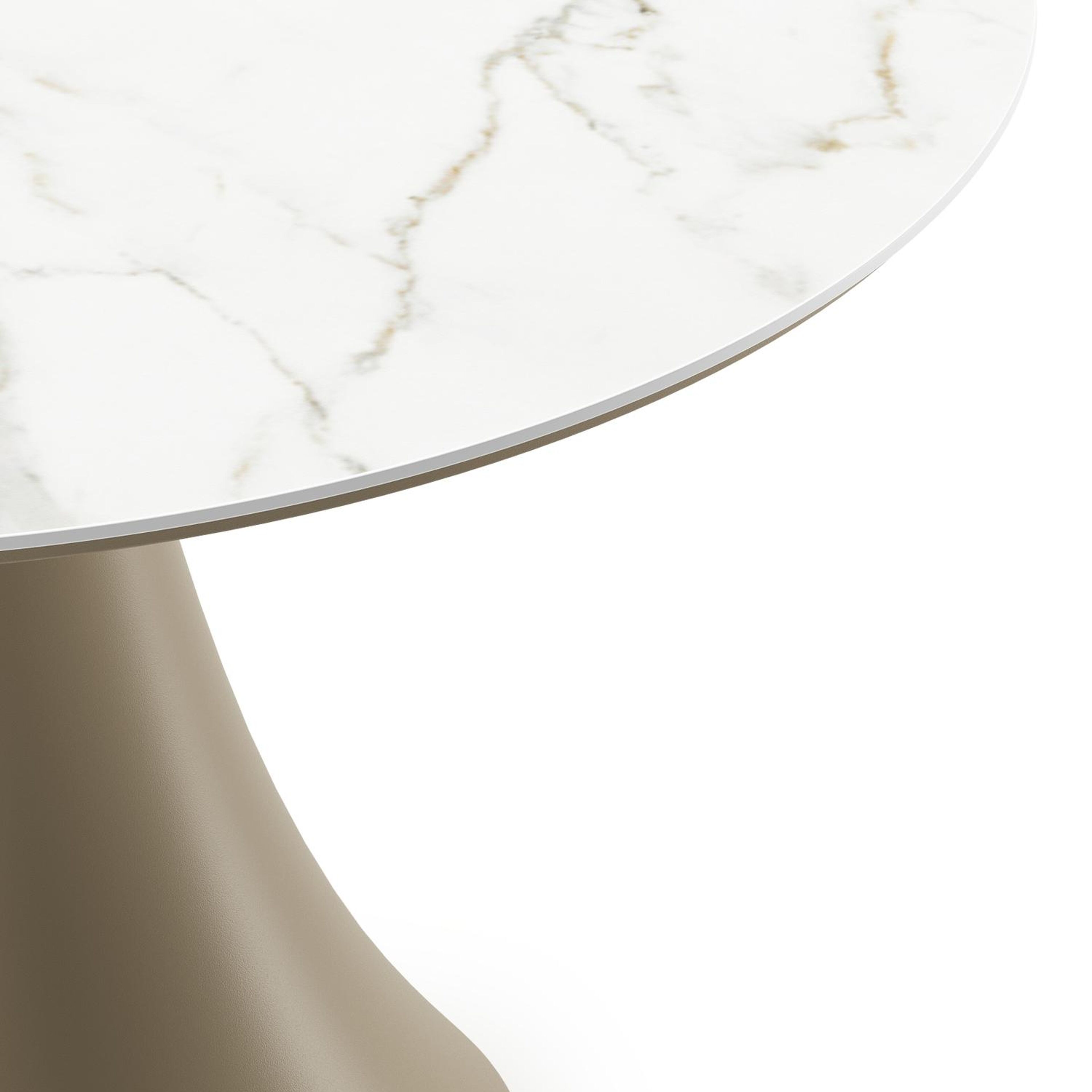 Table de basse low dining Fano ronde en aluminium beige et céramique pleine Calacatta - Diam. 85 x Haut. 55 cm | Exterioo mobilier de jardin