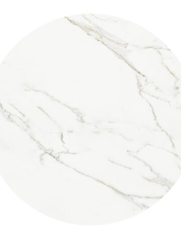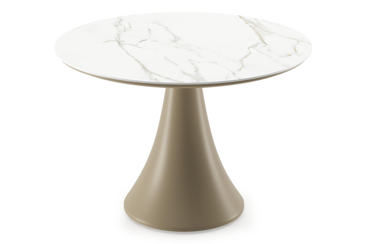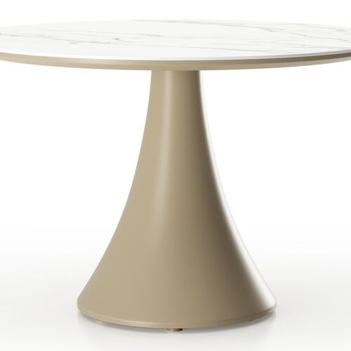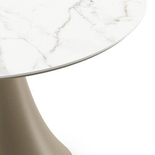 Table de basse low dining Fano ronde en aluminium beige et céramique pleine Calacatta - Diam. 85 x Haut. 55 cm | Exterioo