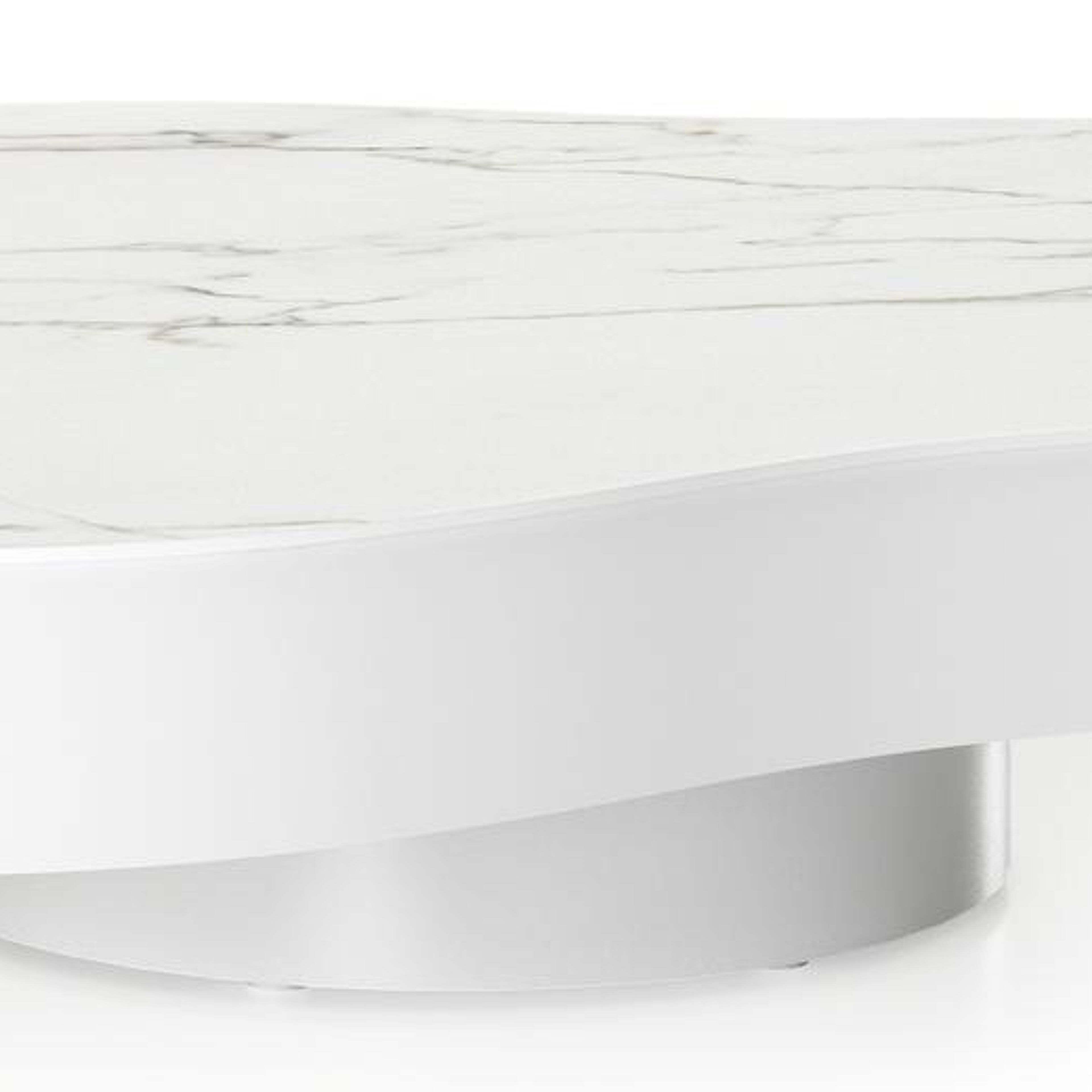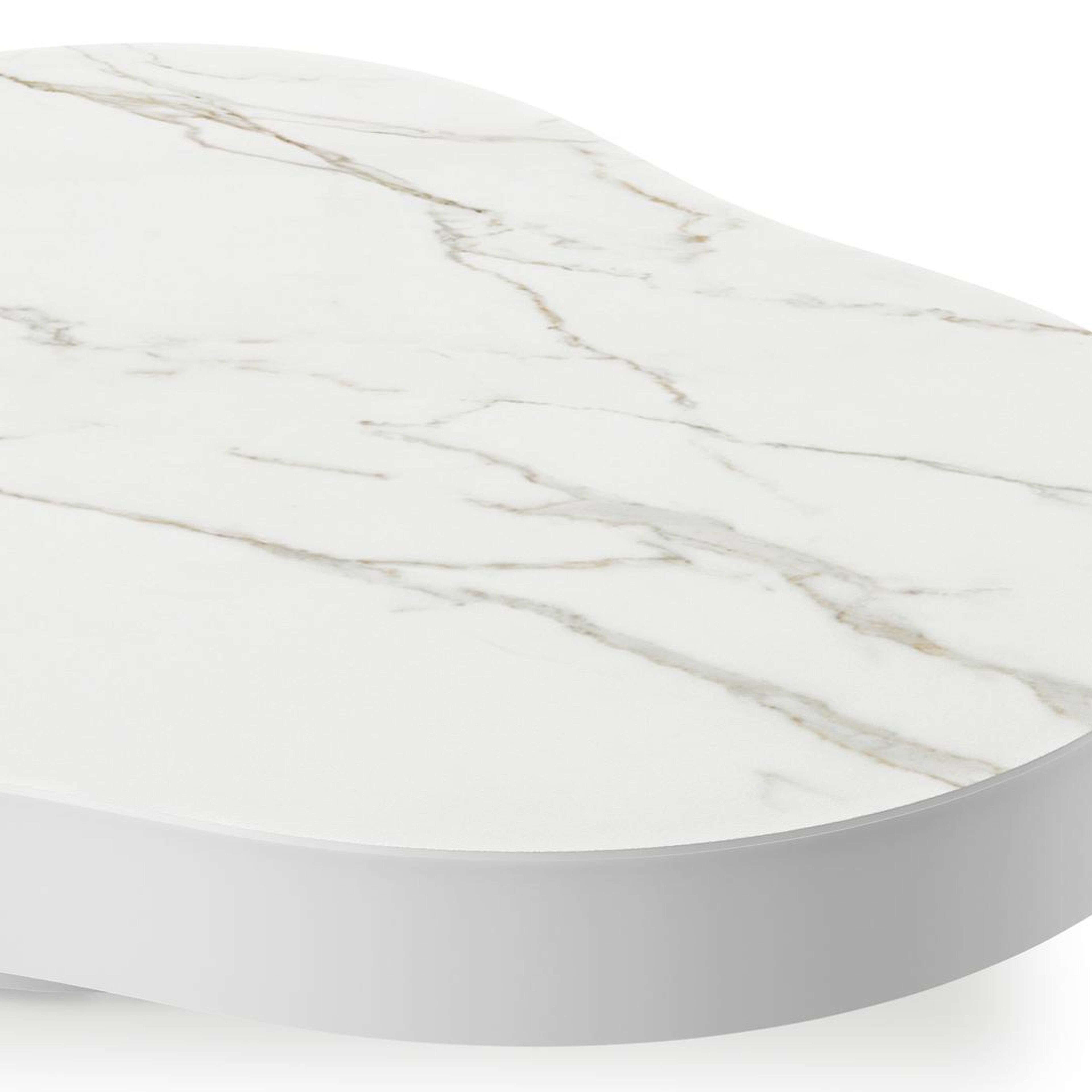 Table de basse Lomano en aluminium blanc et céramique pleine Calacatta - Lg. 131 x Lrg. 108 x Haut. 8 cm | Exterioo mobilier de jardin