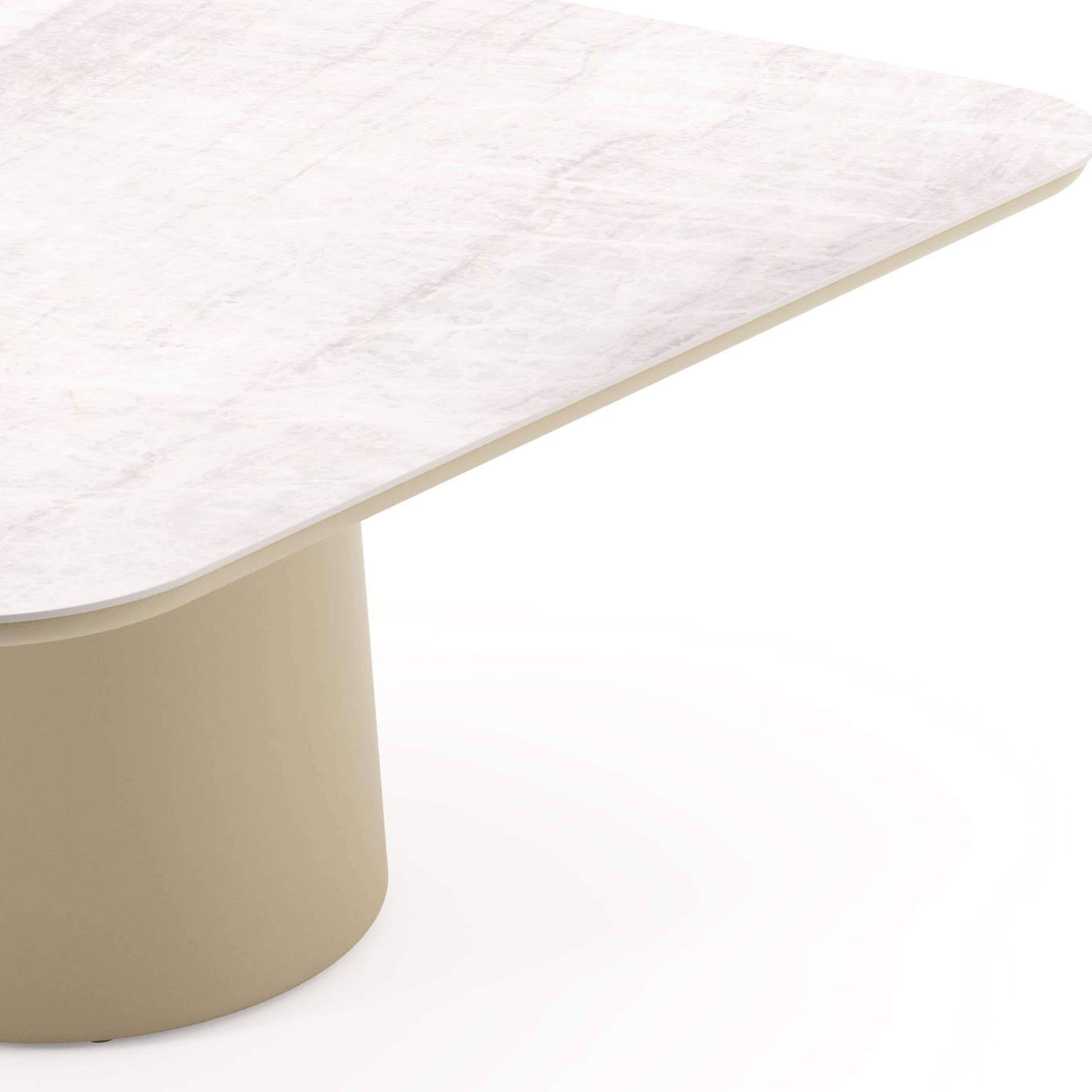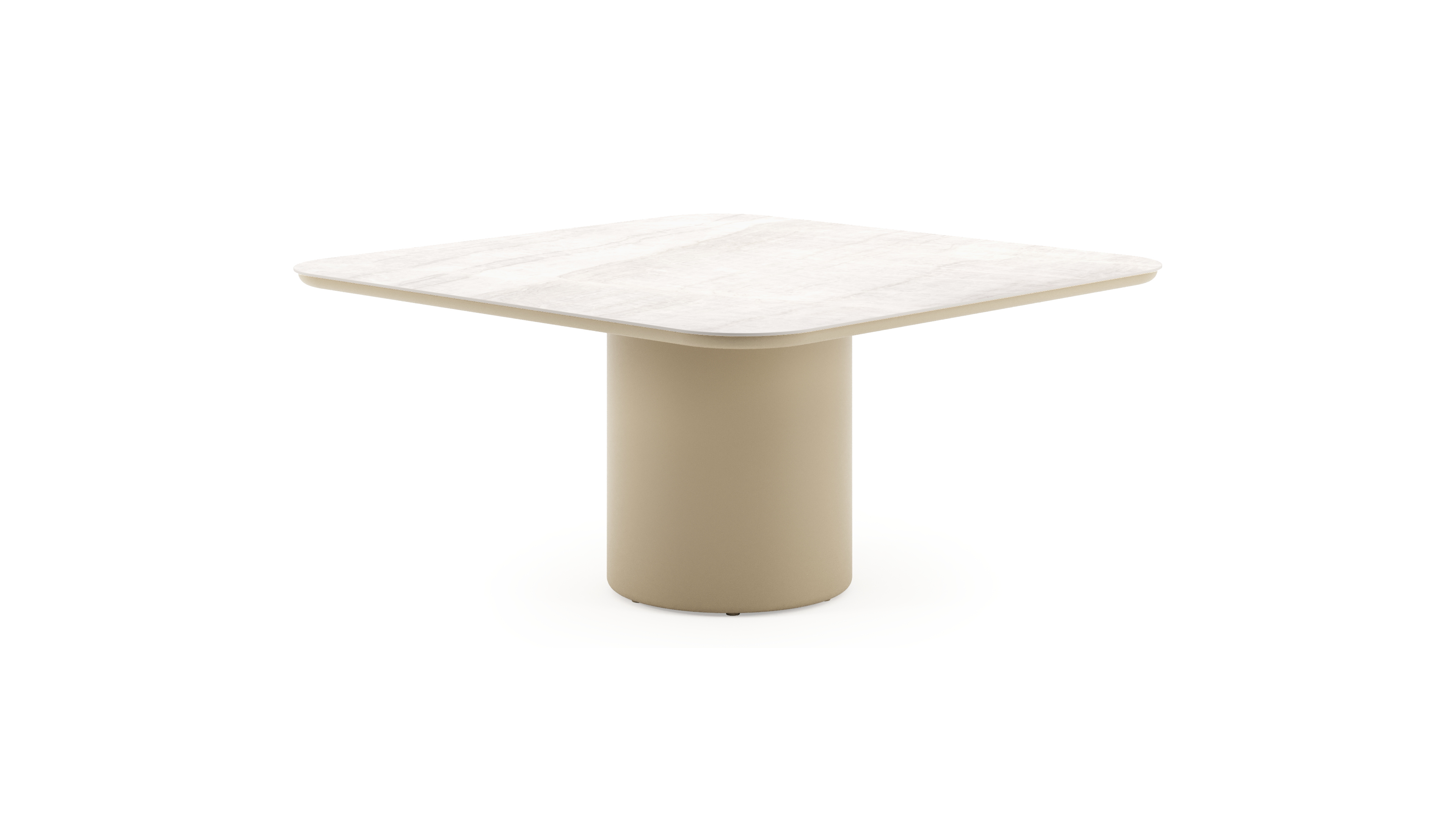 Table de jardin Amico carré arrondi en aluminium beige et céramique pleine Taj Mahal - Lg. 148 x Lrg. 148 x Haut. 73.5 cm | Exterioo mobilier de jardin