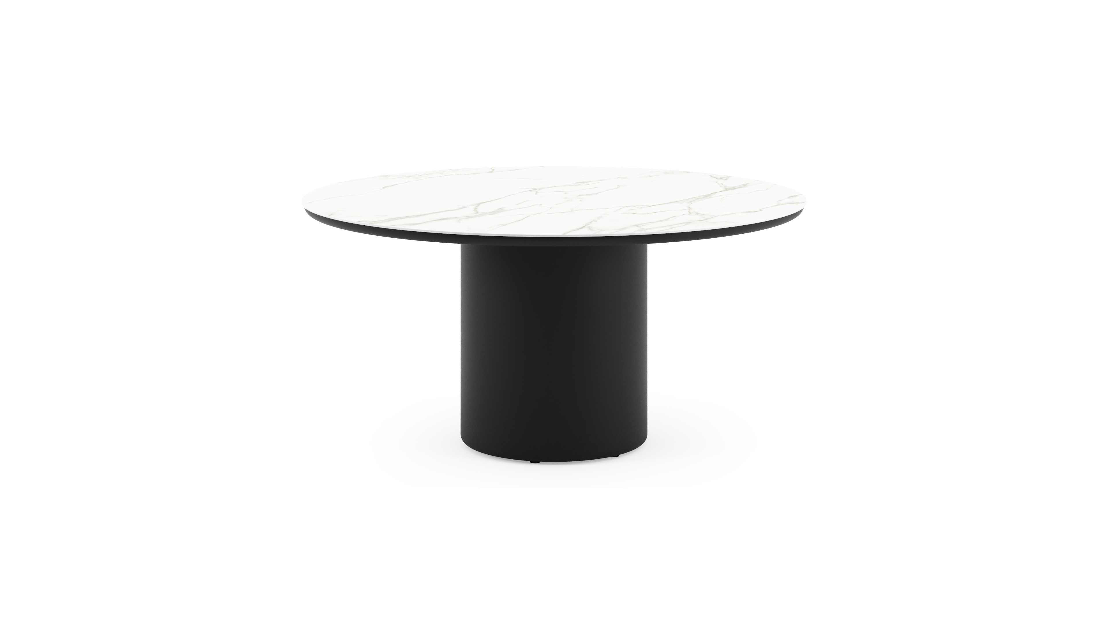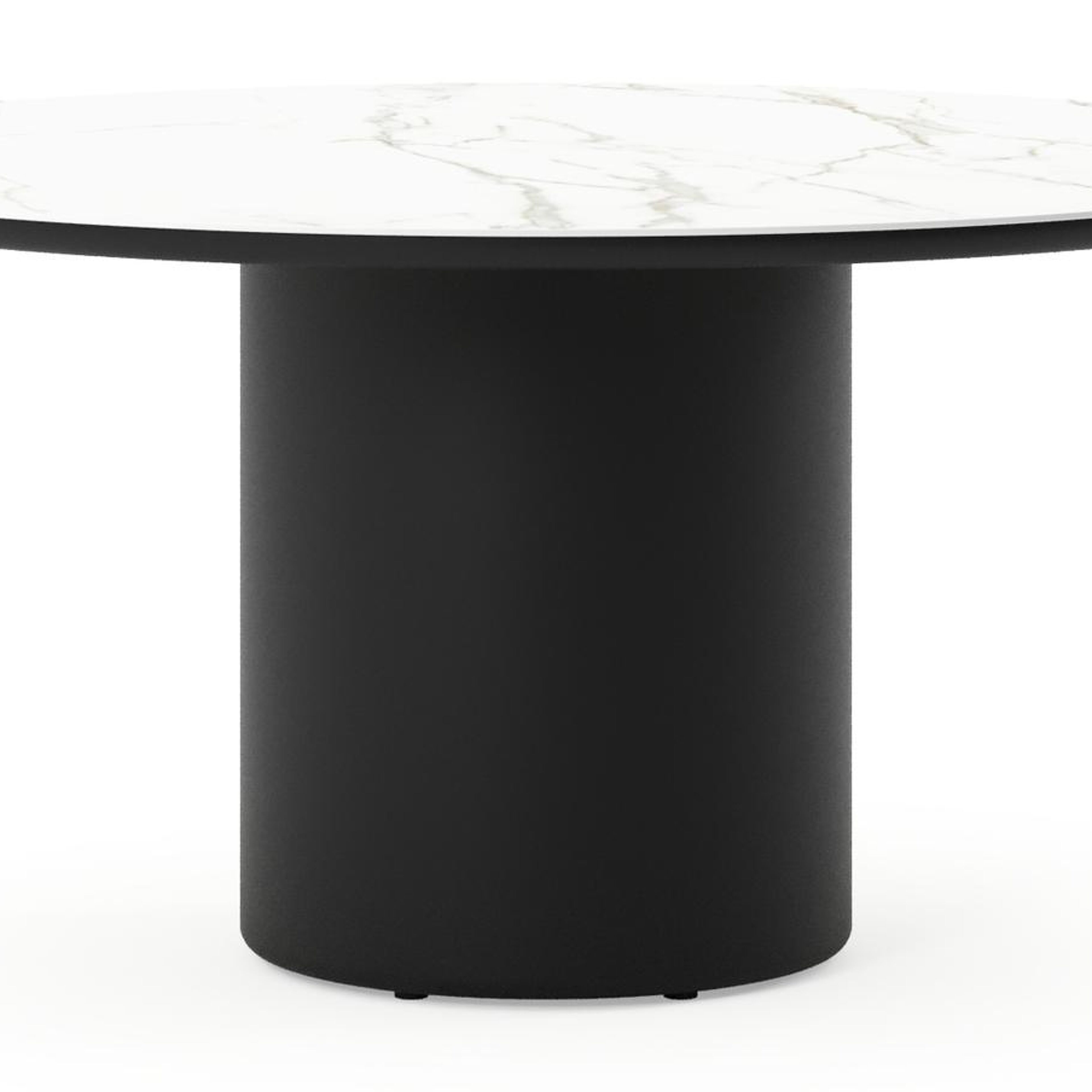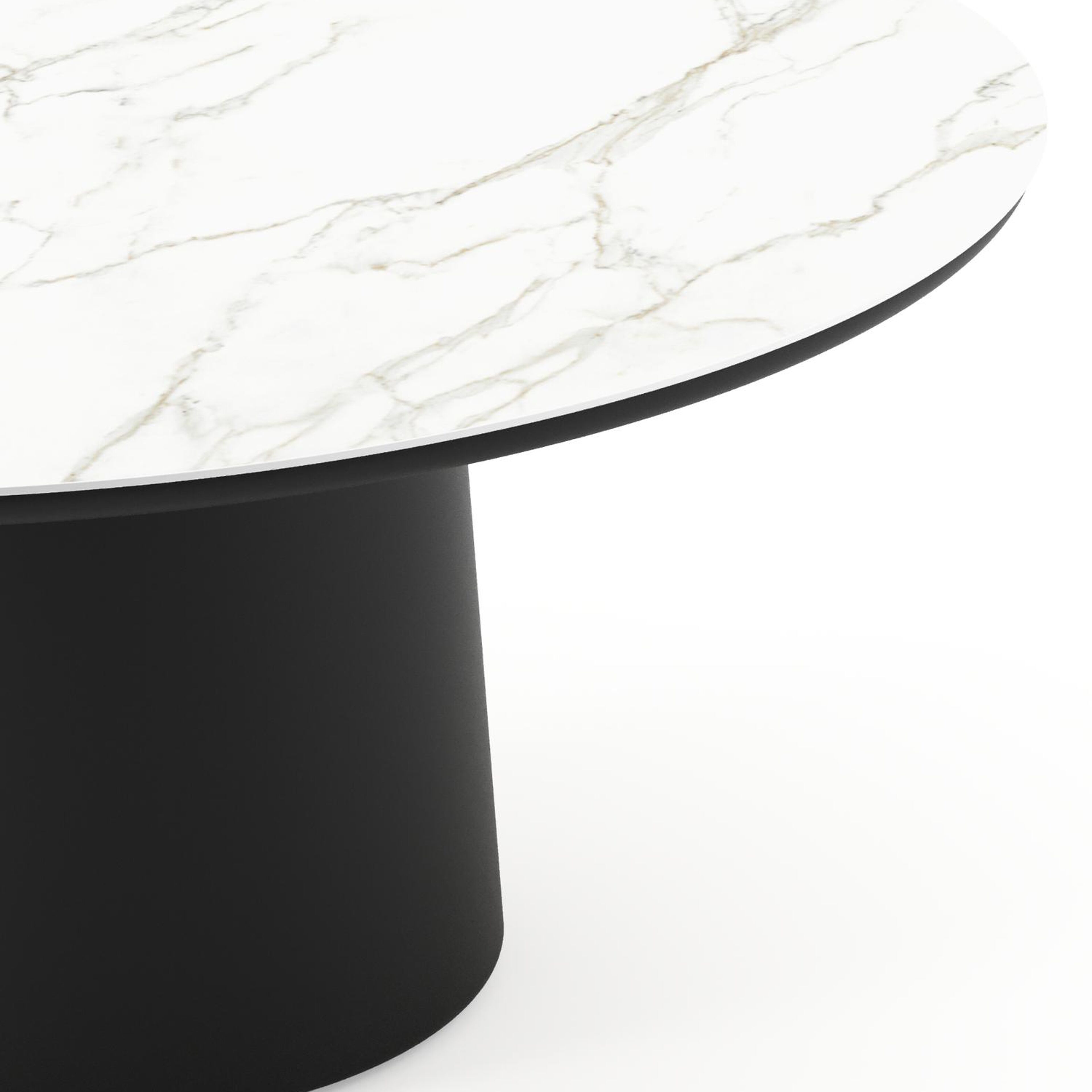 Table de jardin Amico rond en aluminium noir et céramique pleine Calacatta - Diam. 148 x Haut. 73.5 cm | Exterioo mobilier de jardin