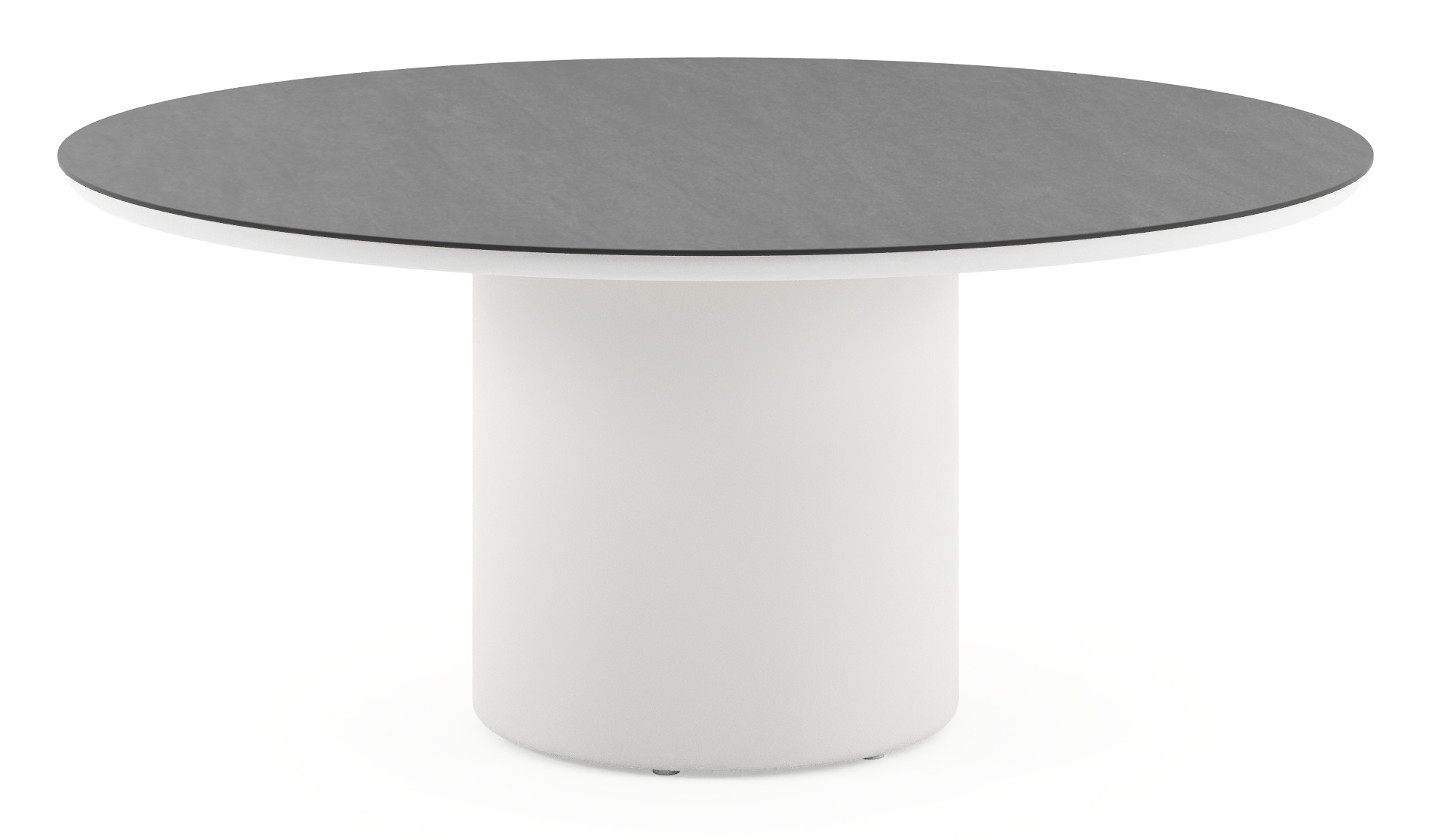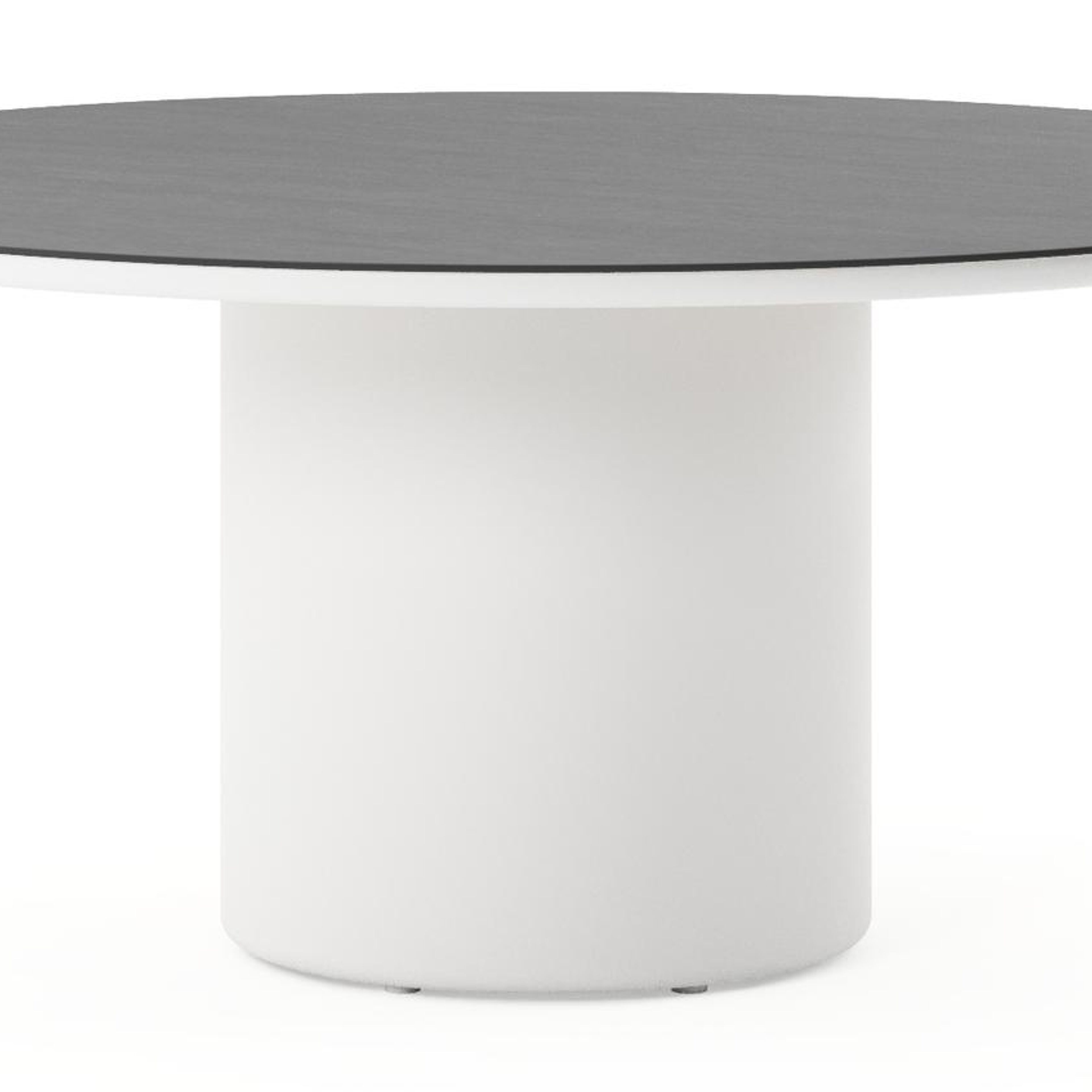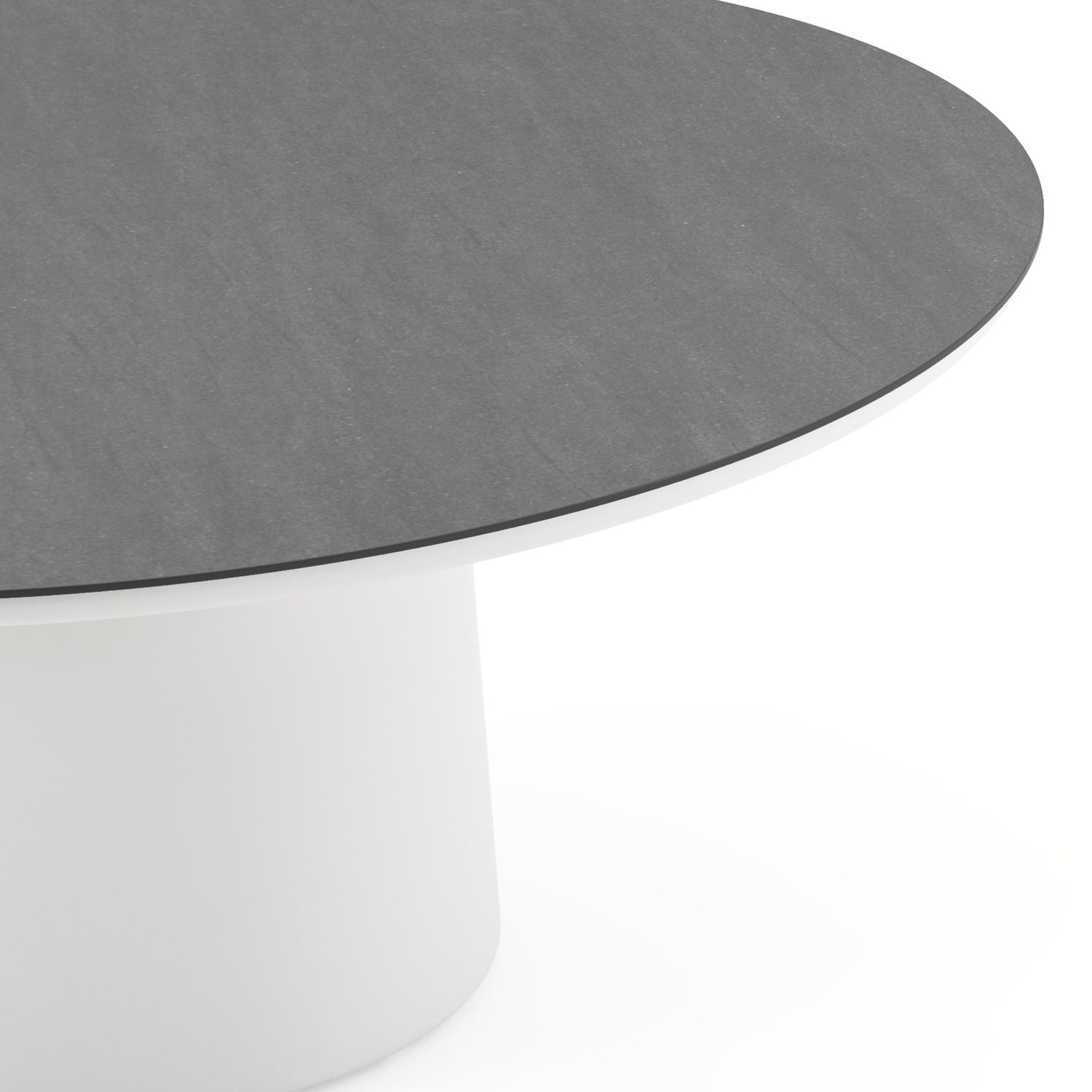 Table de jardin low dining Amico rond en aluminium blanc et céramique pleine Basalt Black - Diam. 148 x Haut. 61 cm | Exterioo mobilier de jardin
