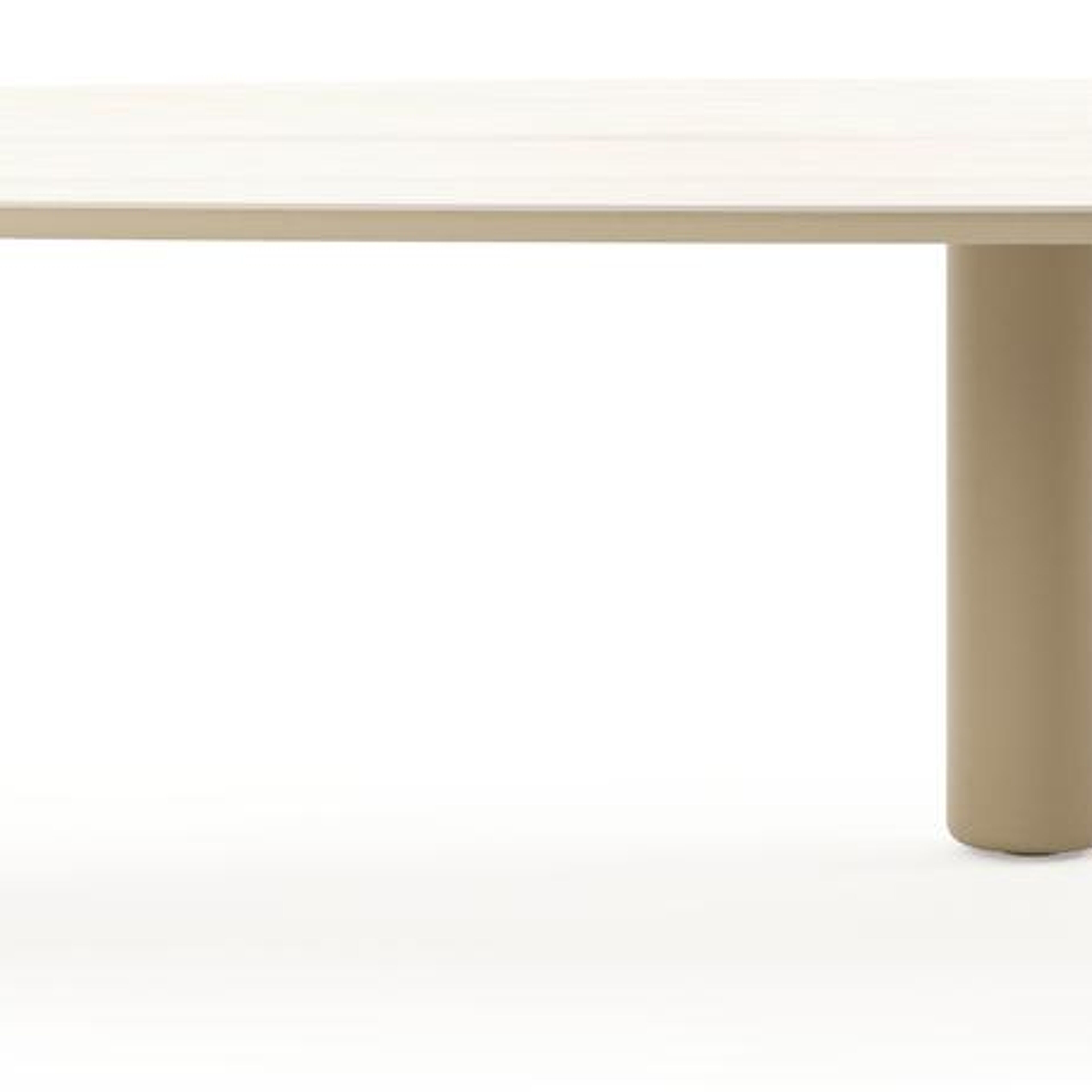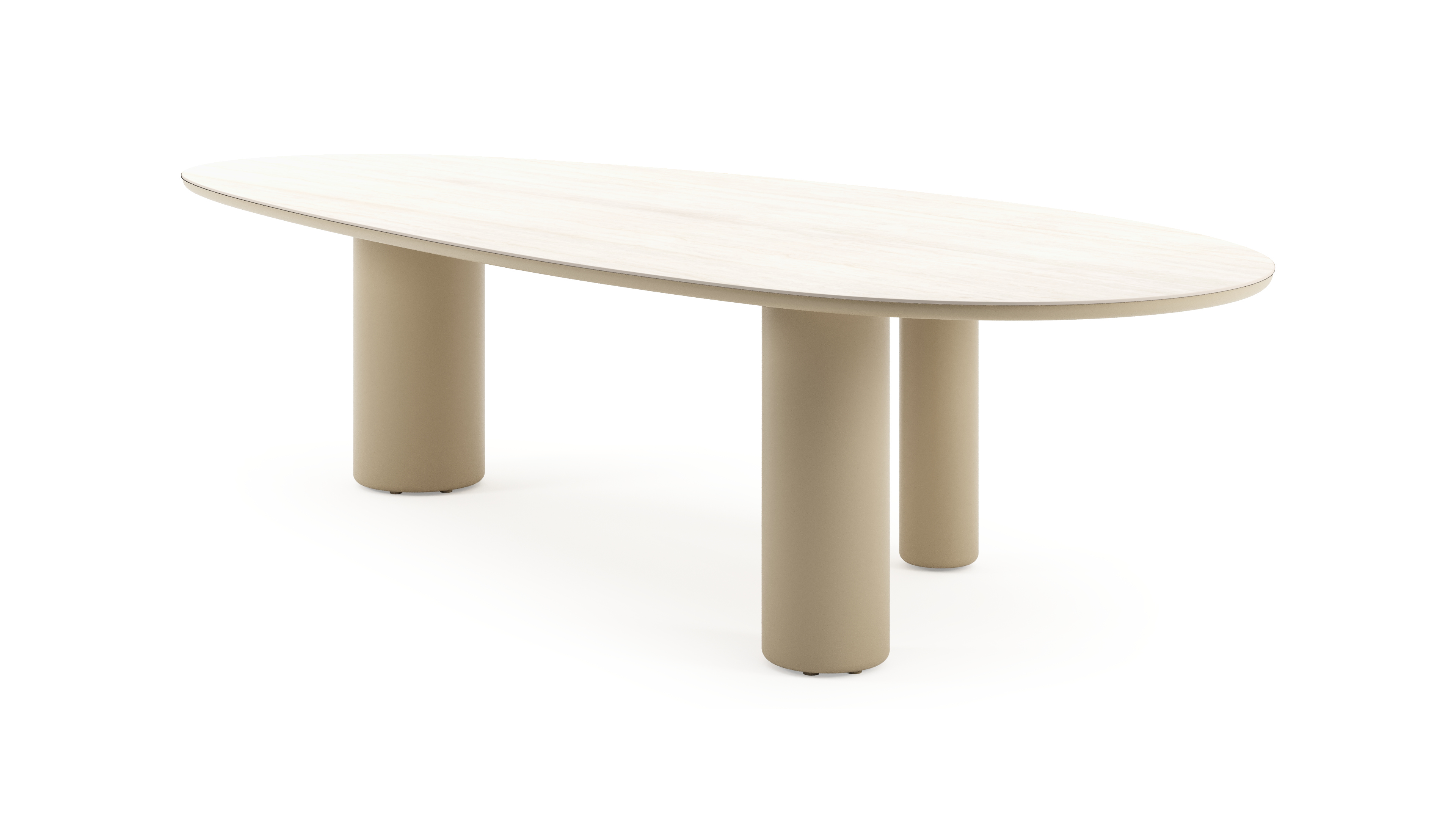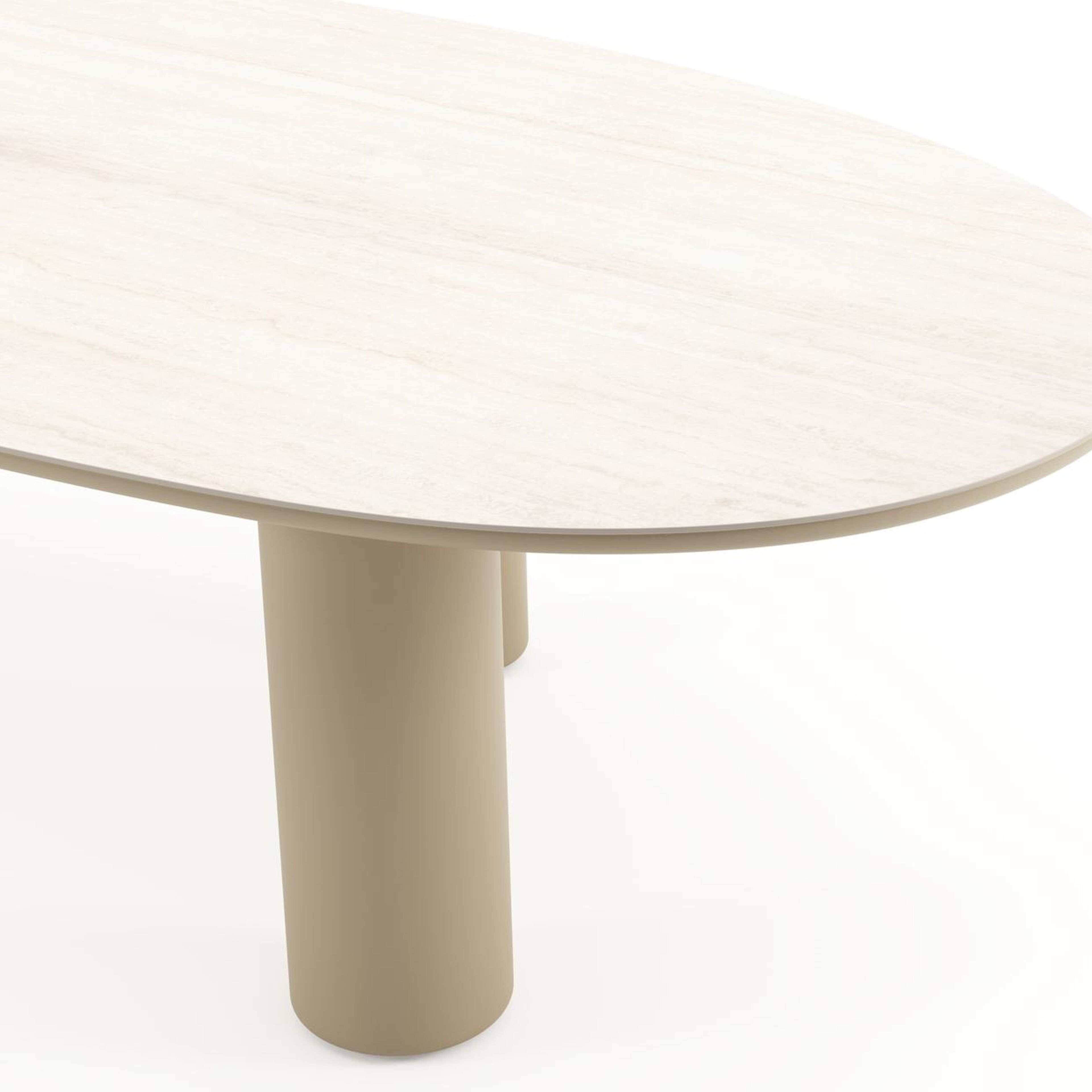 Table de jardin Amico mangue en aluminium beige et céramique pleine Travertino Bianco - Lg. 320 x Lrg. 140 x Haut. 73.5 cm | Exterioo mobilier de jardin