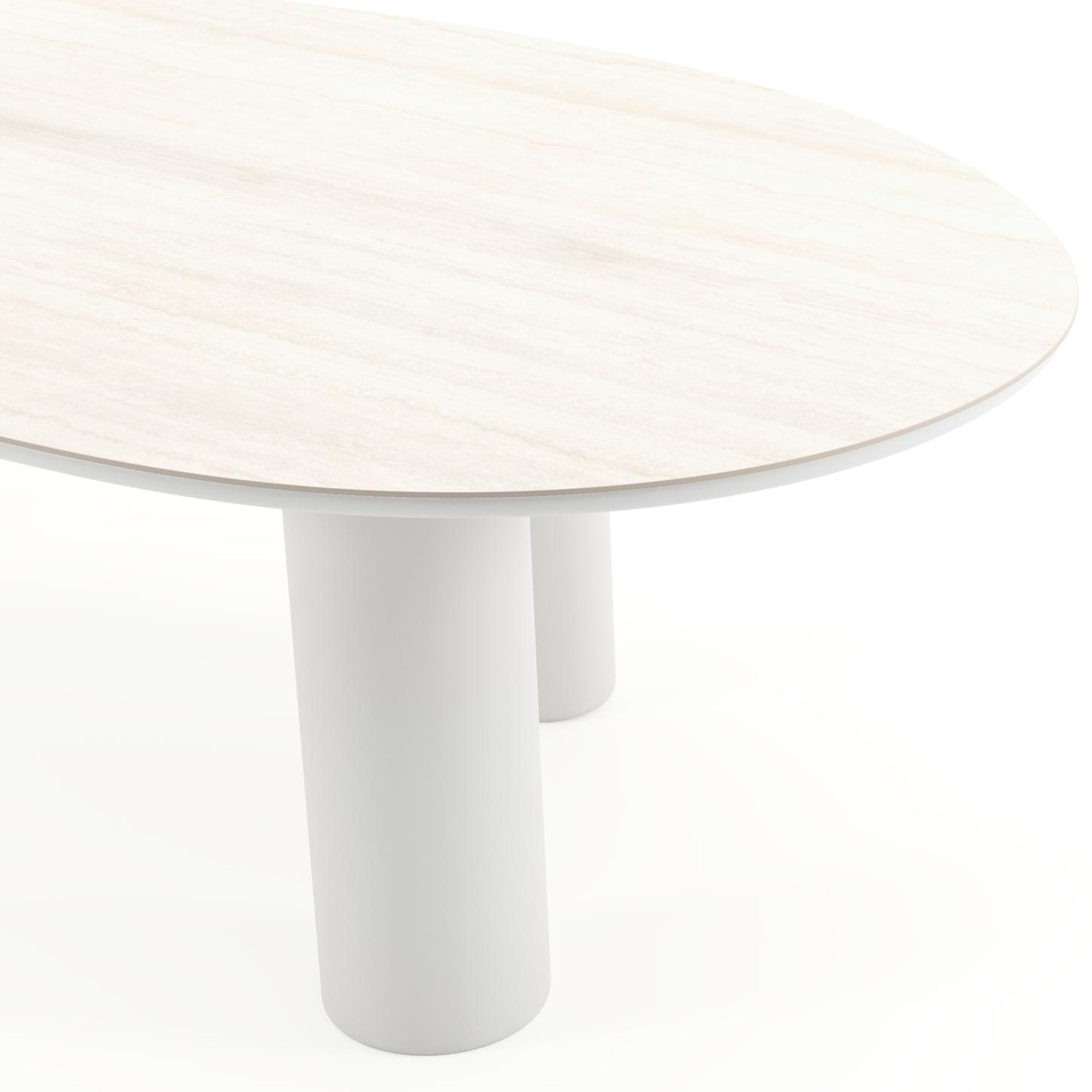 Table de jardin Amico mangue en aluminium blanc et céramique pleine Travertino Bianco - Lg. 260 x Lrg. 130 x Haut. 73.5 cm | Exterioo mobilier de jardin