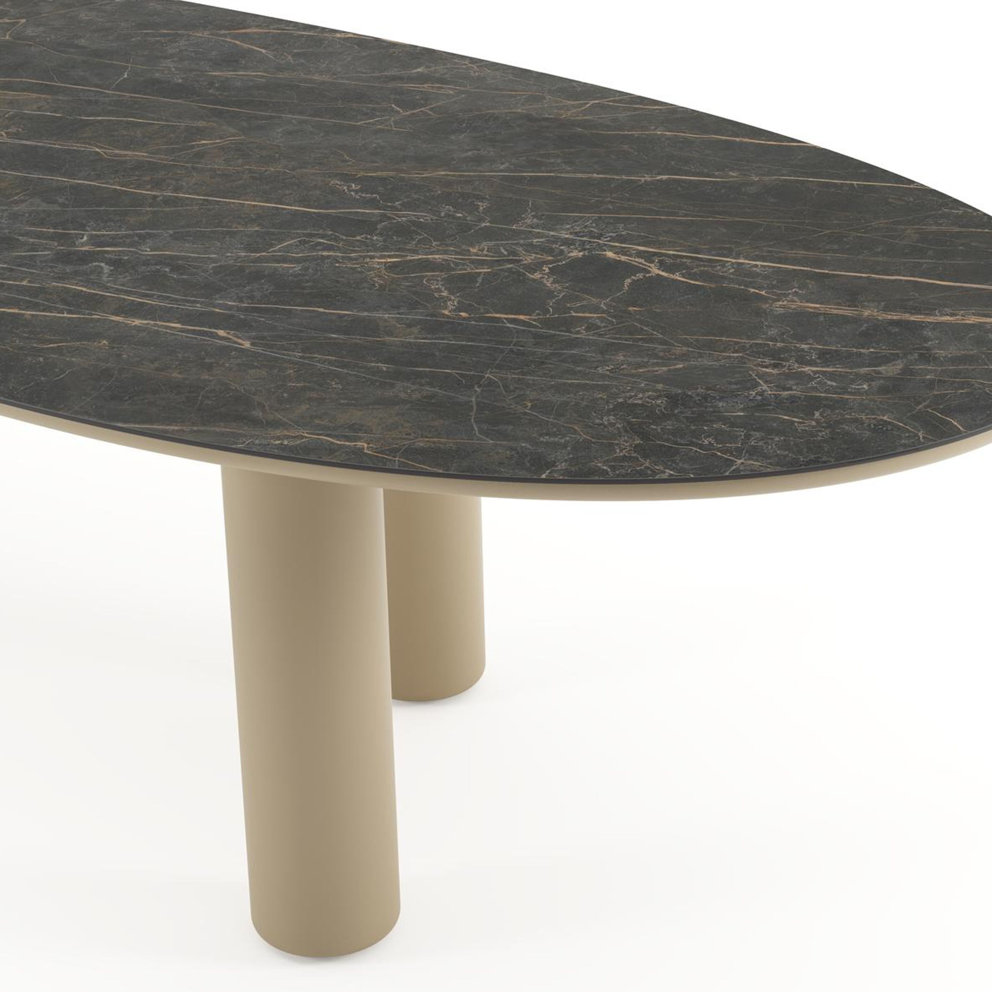 Table de jardin Amico organique en aluminium beige et céramique pleine Black Obsession - Lg. 320 x Lrg. 120 x Haut. 73.5 cm | Exterioo mobilier de jardin