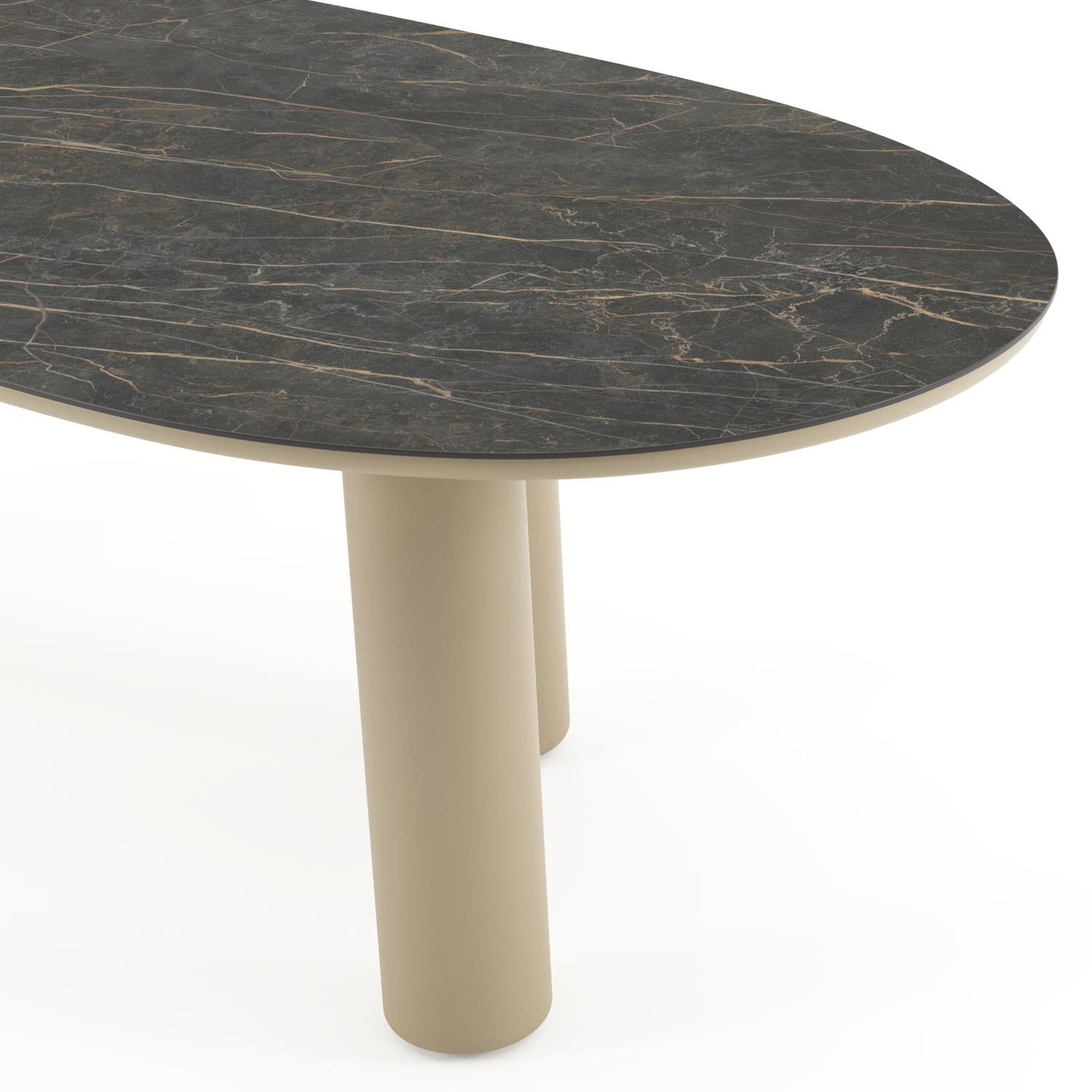 Table de jardin Amico organique en aluminium beige et céramique pleine Black Obsession - Lg. 240 x Lrg. 110 x Haut. 73.5 cm | Exterioo mobilier de jardin