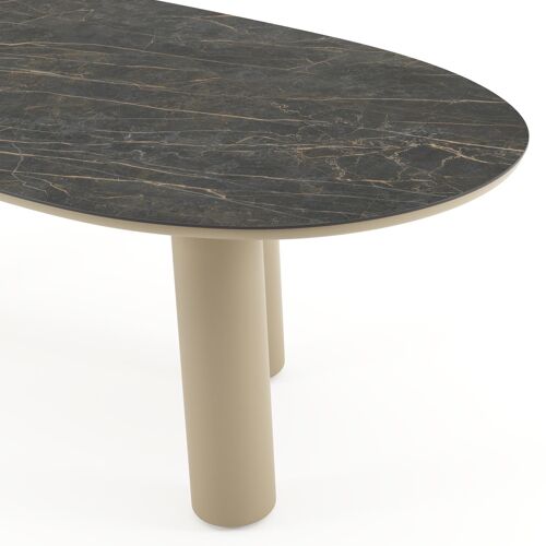 Table de jardin Amico organique en aluminium beige et céramique pleine Black Obsession - Lg. 240 x Lrg. 110 x Haut. 73.5 cm | Exterioo