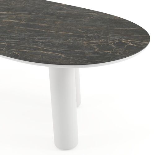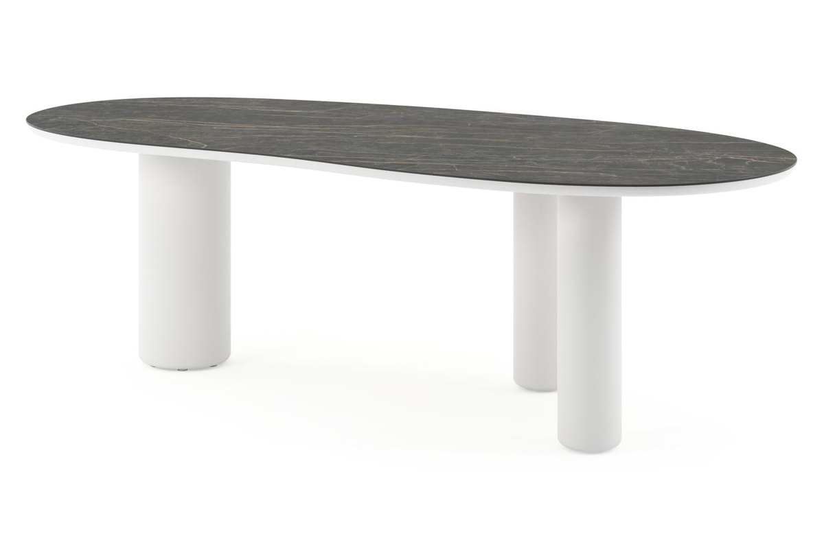 Table de jardin Amico organique en aluminium blanc et céramique pleine Black Obsession - Lg. 240 x Lrg. 110 x Haut. 73.5 cm | Exterioo