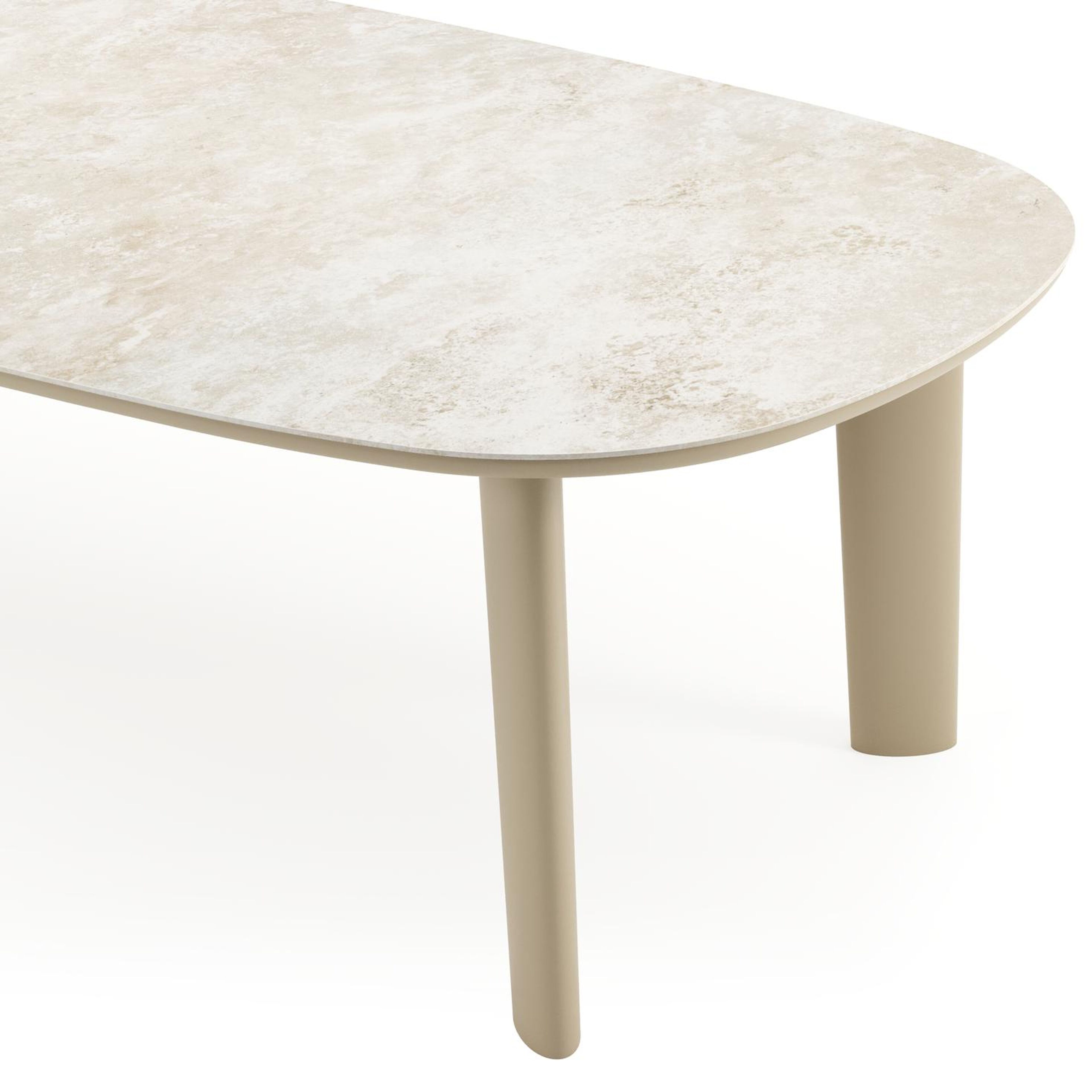 Table de jardin Amico bombo en aluminium beige et céramique pleine Rapolano - Lg. 270 x Lrg. 125 x Haut. 73.5 cm | Exterioo mobilier de jardin