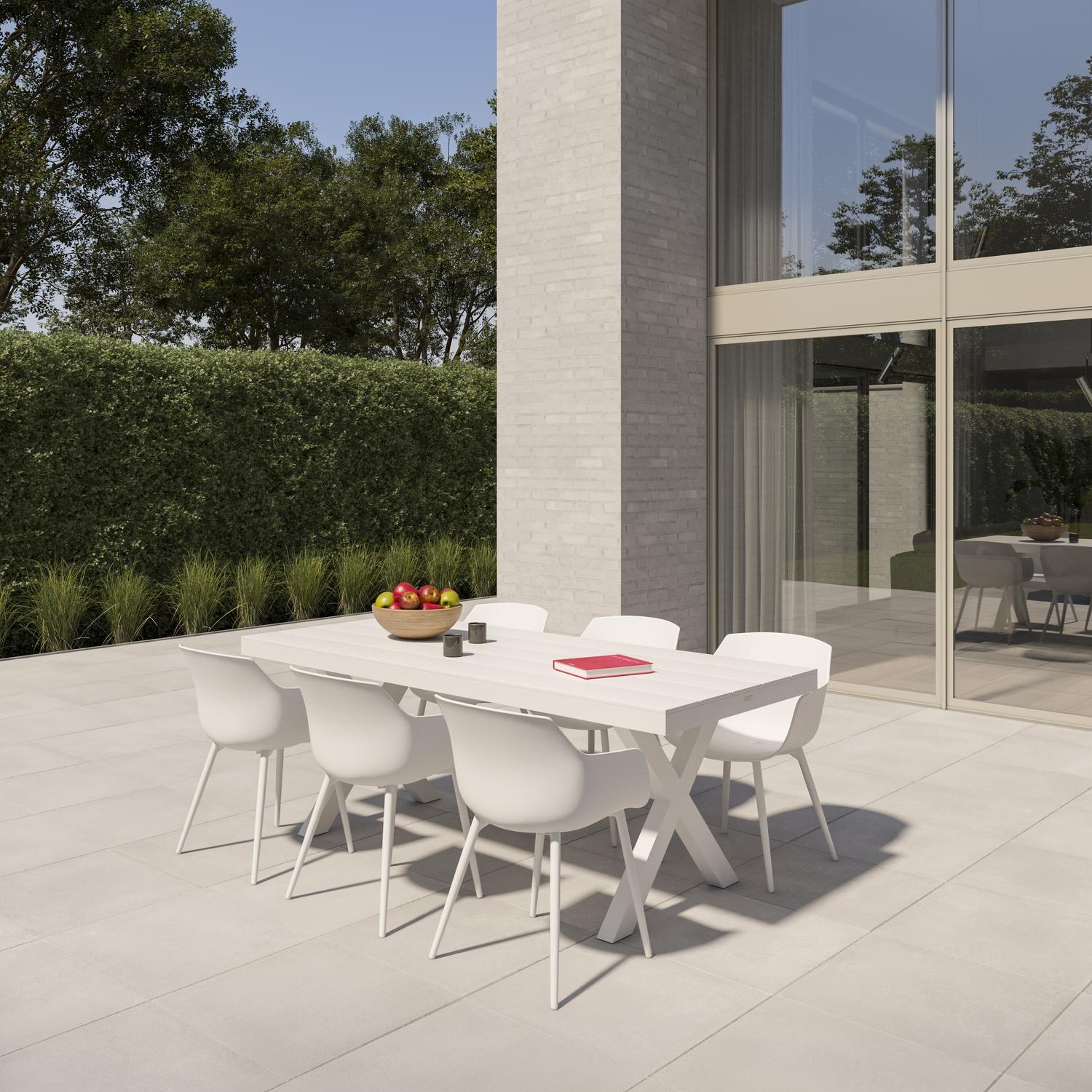 L’armature de la table est en aluminium inoxydable, un matériau robuste mais léger, qui est facile à déplacer. La surface présente une finition lisse, de sorte qu’elle n’attire pas la saleté et est facile à entretenir. Le revêtement poudré garantit la résistance aux UV et aux intempéries de votre meuble.