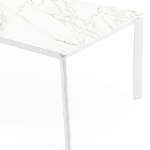 Le Calacatta est un plateau de table dont la couleur de base est le blanc, doté de veines grises produisant un effet de marbre caractéristique.