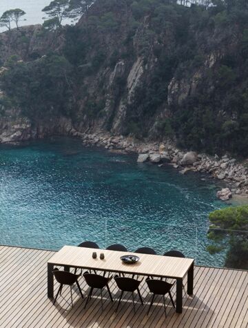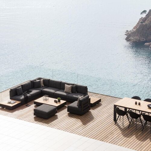 Table de jardin Como en aluminium noir avec plateau de table en teck - L 280 x l 110 cm | Exterioo