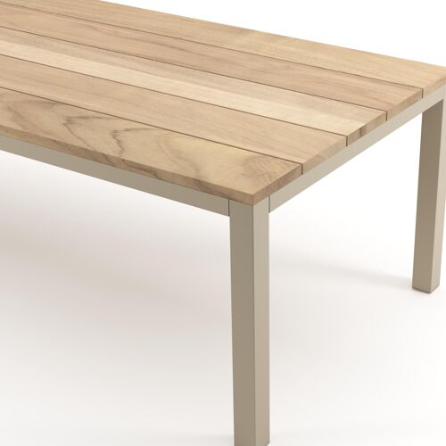 Table de jardin Como rectangulaire en aluminium beige et teck - Lg. 280 x Lrg. 110 x Haut. 73 cm | Exterioo