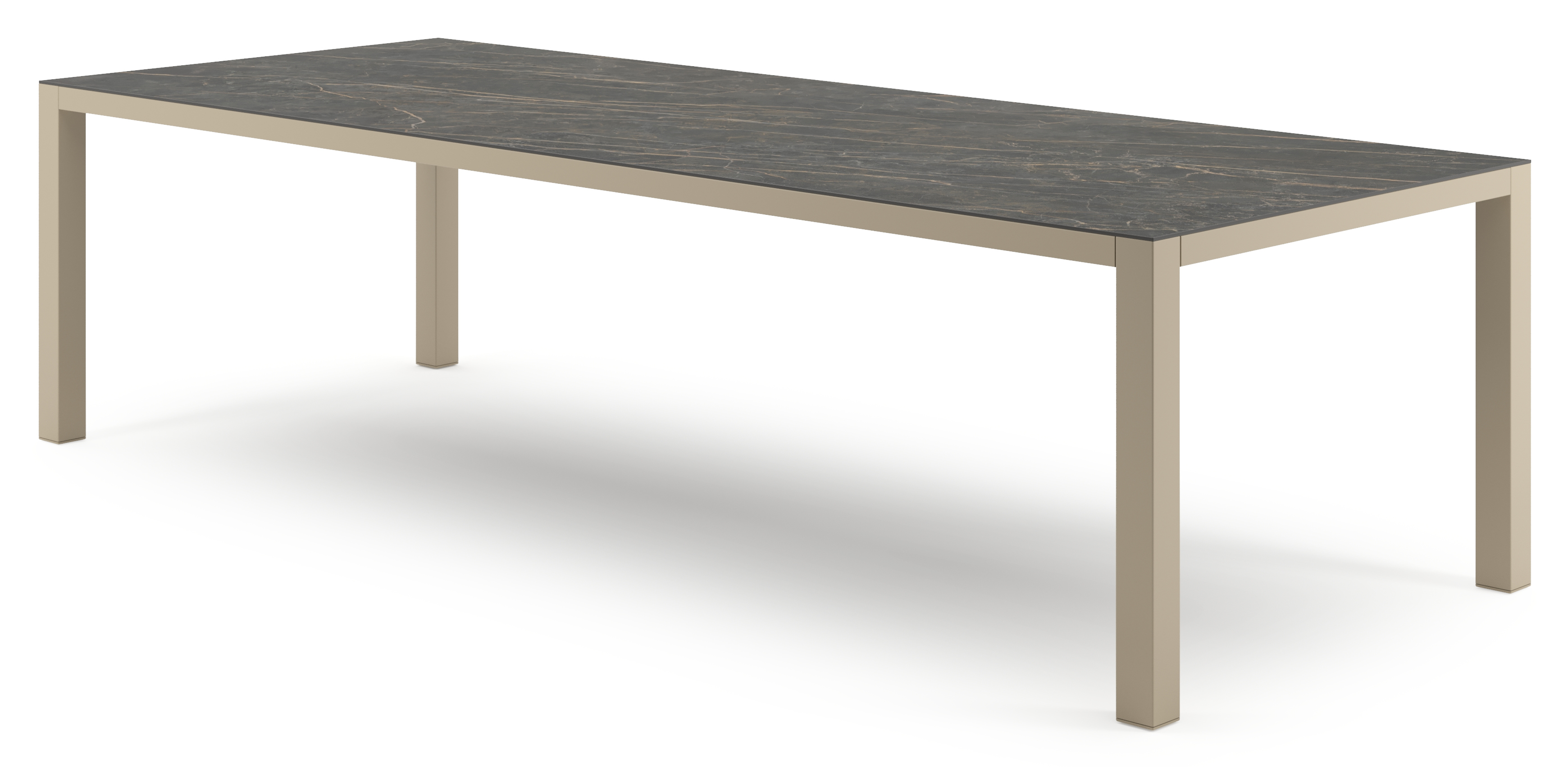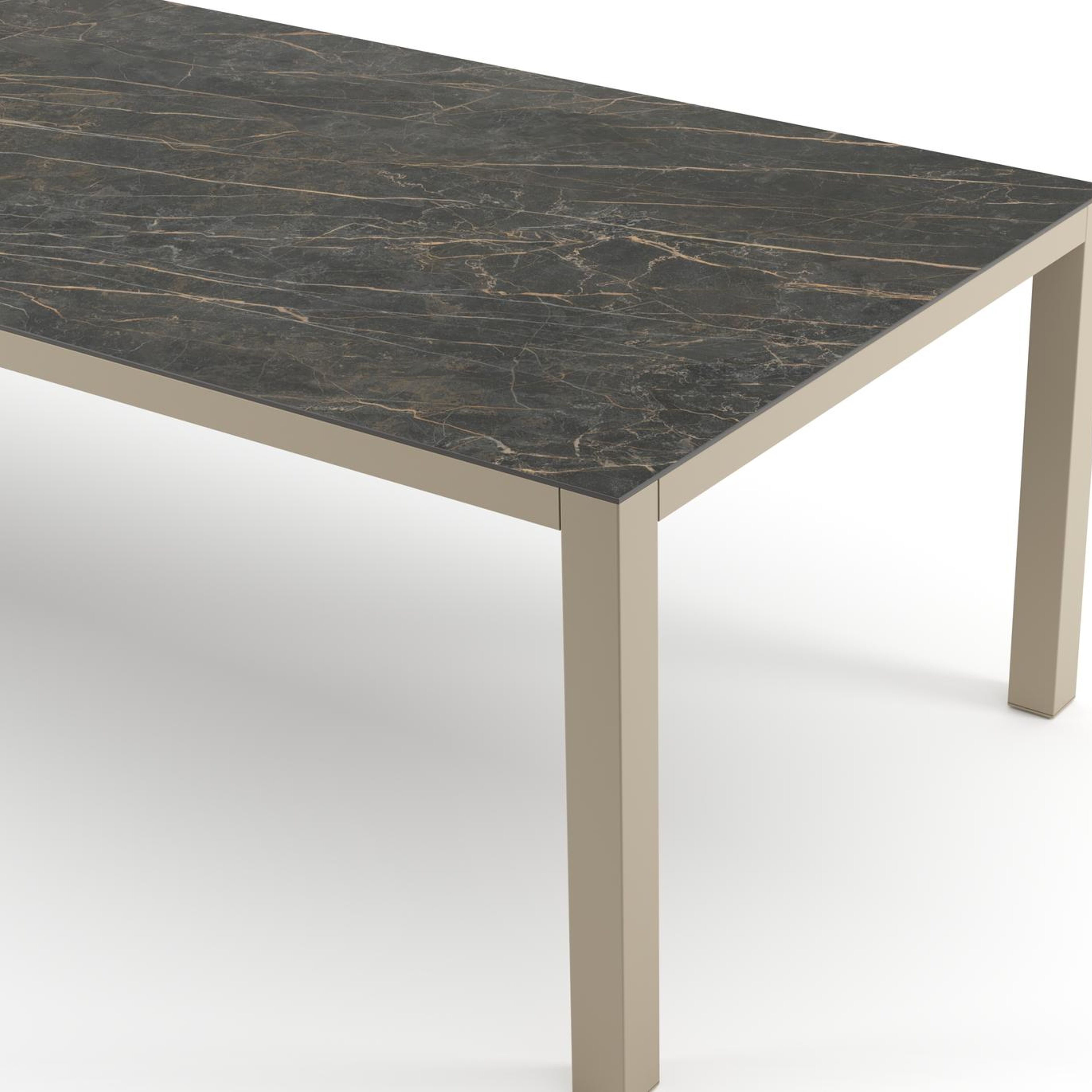 Table de jardin Como rectangulaire en aluminium beige et céramique pleine Black Obsession - Lg. 280 x Lrg. 110 x Haut. 73 cm | Exterioo mobilier de jardin