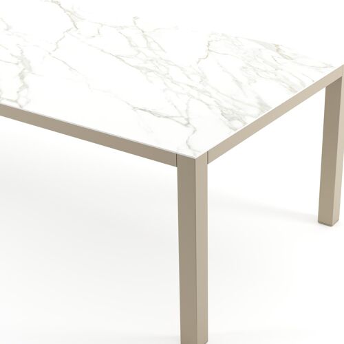 Table de jardin Como rectangulaire en aluminium beige et céramique pleine Calacatta - Lg. 280 x Lrg. 110 x Haut. 73 cm | Exterioo