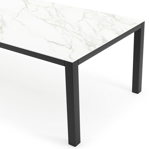 Table de jardin Como en aluminium noir et céramique pleine Calacatta - Lg. 280 x Lrg. 110 x Haut. 75 cm | Exterioo