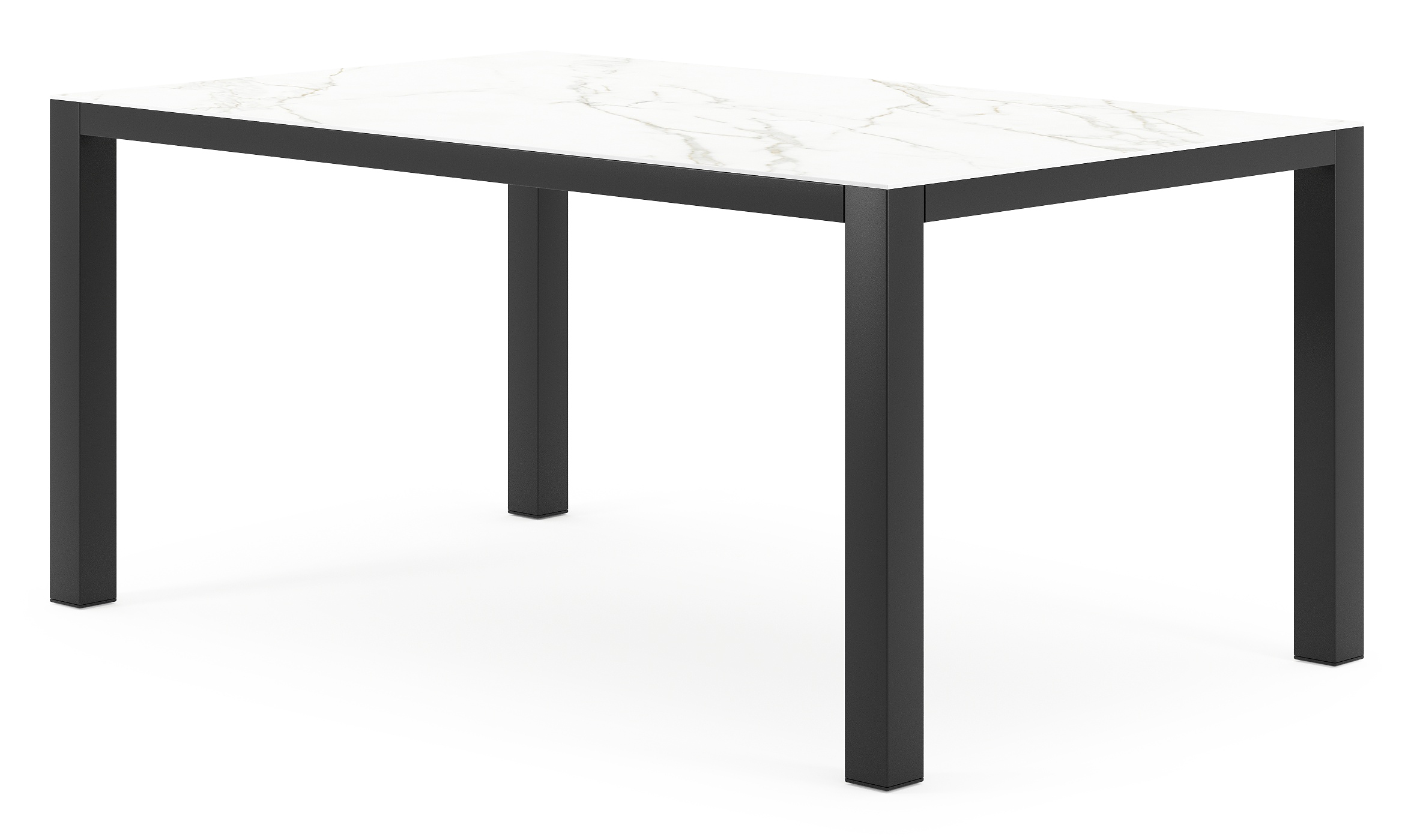 Table de jardin Como rectangulaire en aluminium noir et céramique pleine Calacatta - Lg. 160 x Lrg. 100 x Haut. 75 cm | Exterioo mobilier de jardin